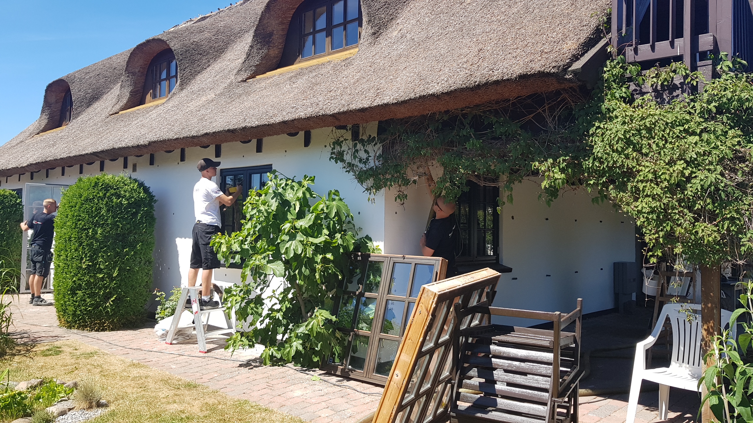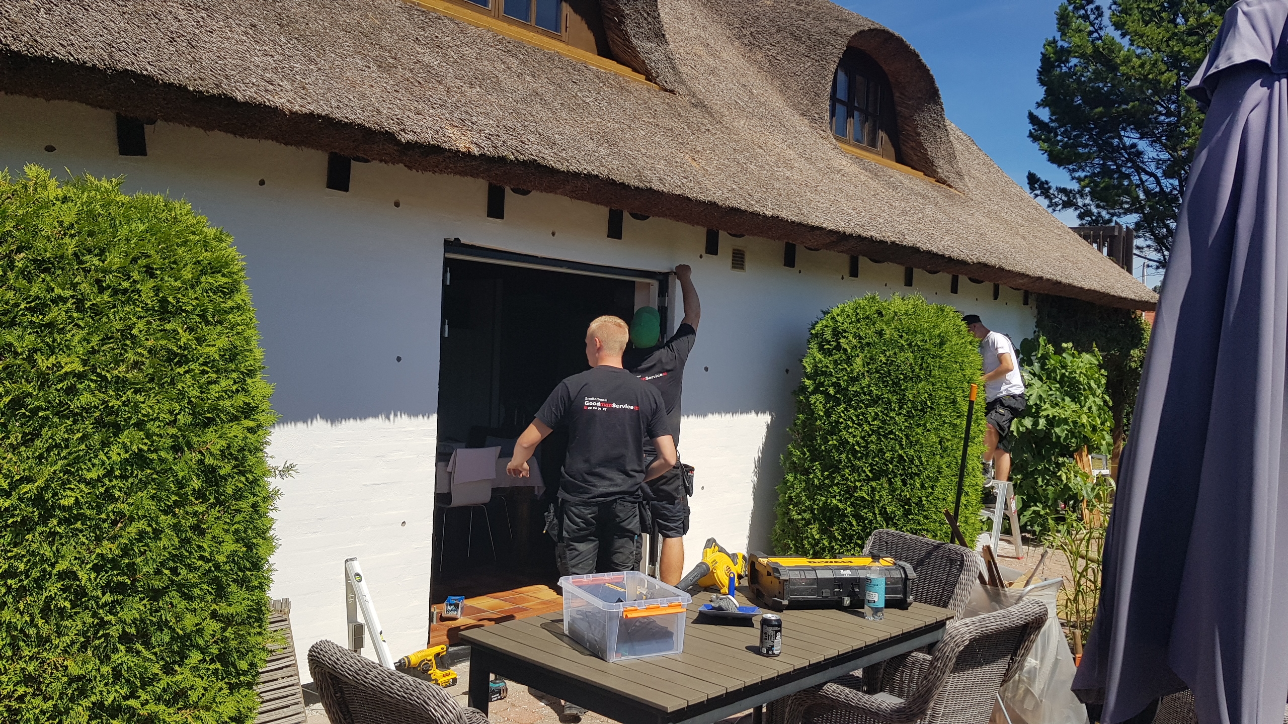 Vi søgte et tømrer-/snedkerfirma af en vis størrelse da vi tidsmæssigt var lidt presset ift afslutningstidspunkt. Goodman Service har mellem 10 - 15 medarbejdere og da firmaet er storkunde hos KPK vinduer/døre er man istand til at levere noget hurtigere end normalt. I dette tilfælde på bare 3 uger - og vi taler om mere end 30 døre-/vinduesfag!