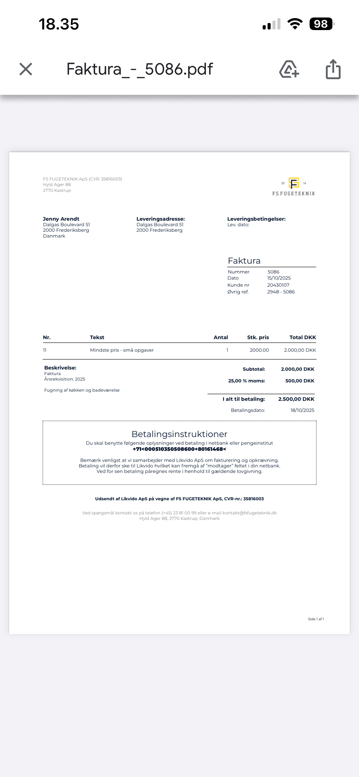 God dialog om opgaven, som bestod af at der skulle laves en cementfuge under 2 hoveddøre og en dobbelt terrassedør.