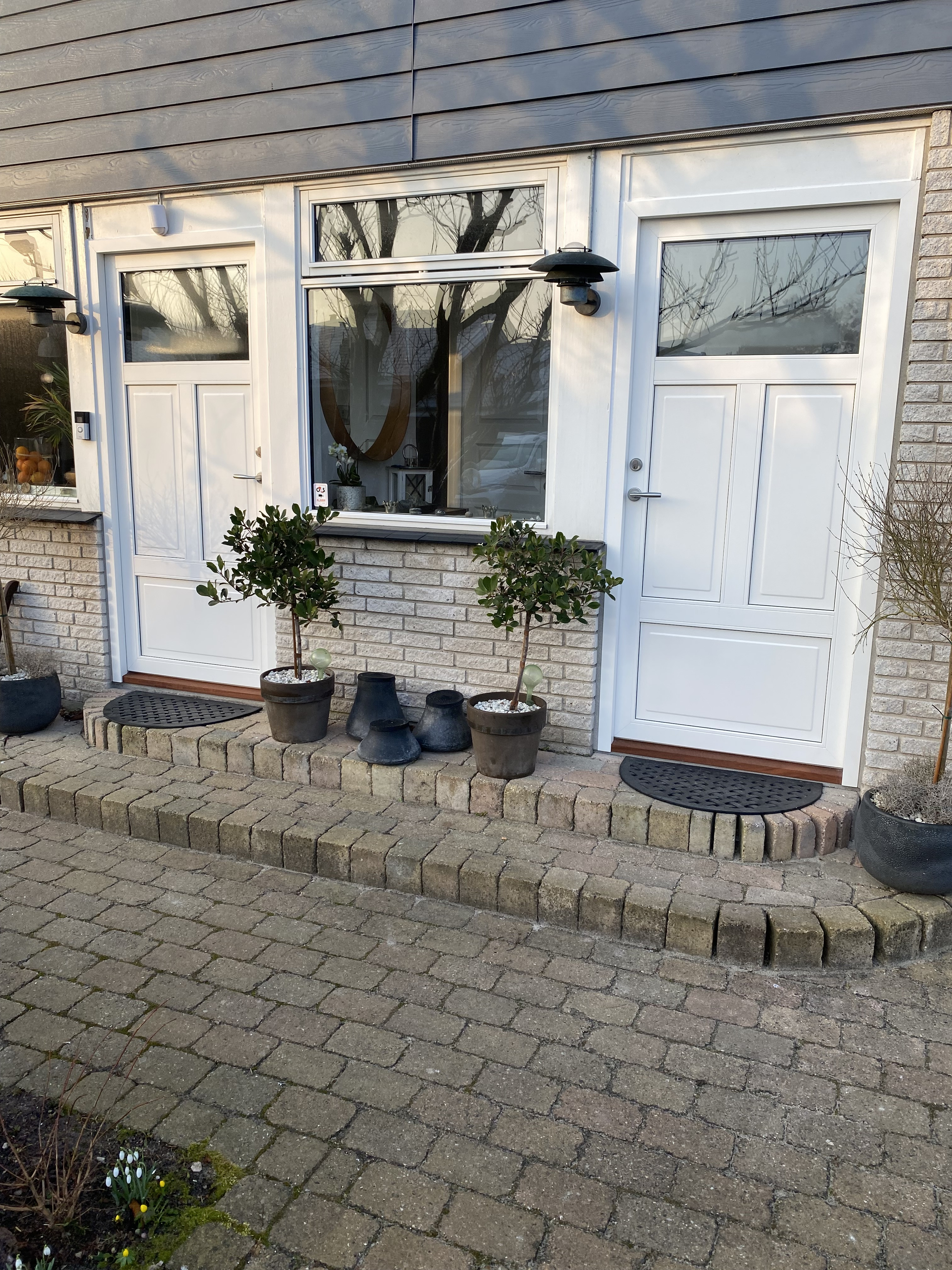Der skulle fuges omkring to nye hoveddøre, havde forskellige farve prøver med, valgte dem som passede bedst til omgivelserne.