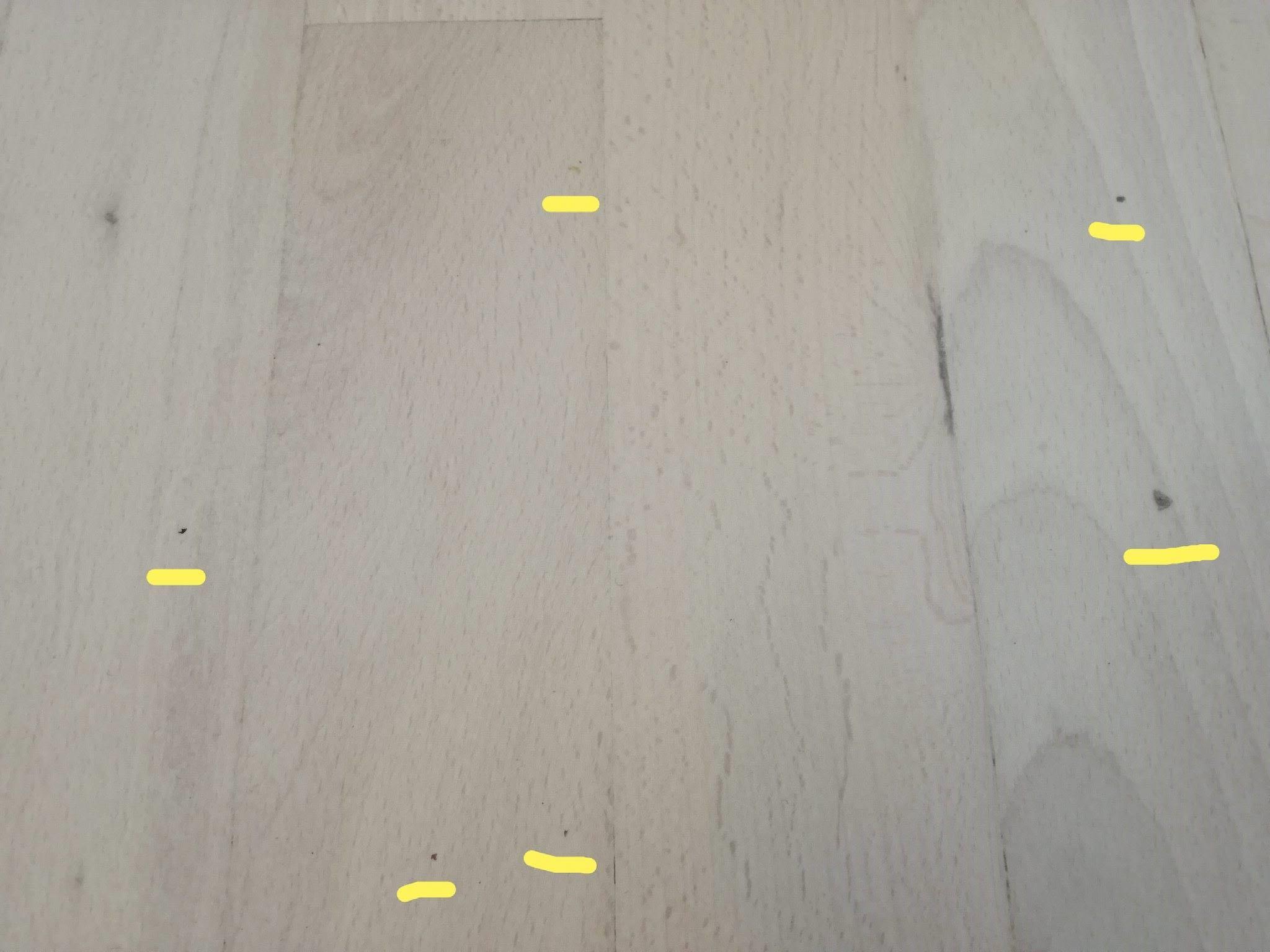 Da vi mærker på gulvet er det meget ru og hvis man kommer en dråbe vand på gulvet siger træet hurtigt vandet til sig, hvilket vi ikke kan forstå hvis det har fået lak.