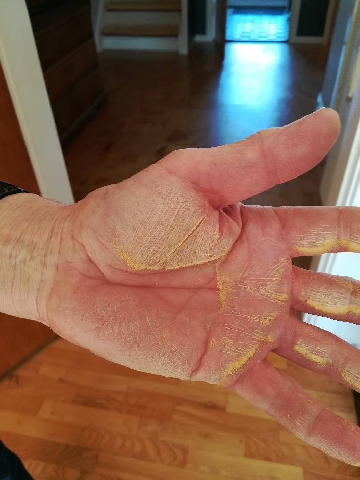 Ved afslibning støver det, det kan man ikke komme uden om, forhæng var hængt op der hvor han skulle arbejde og han kunne ikke komme til for det.