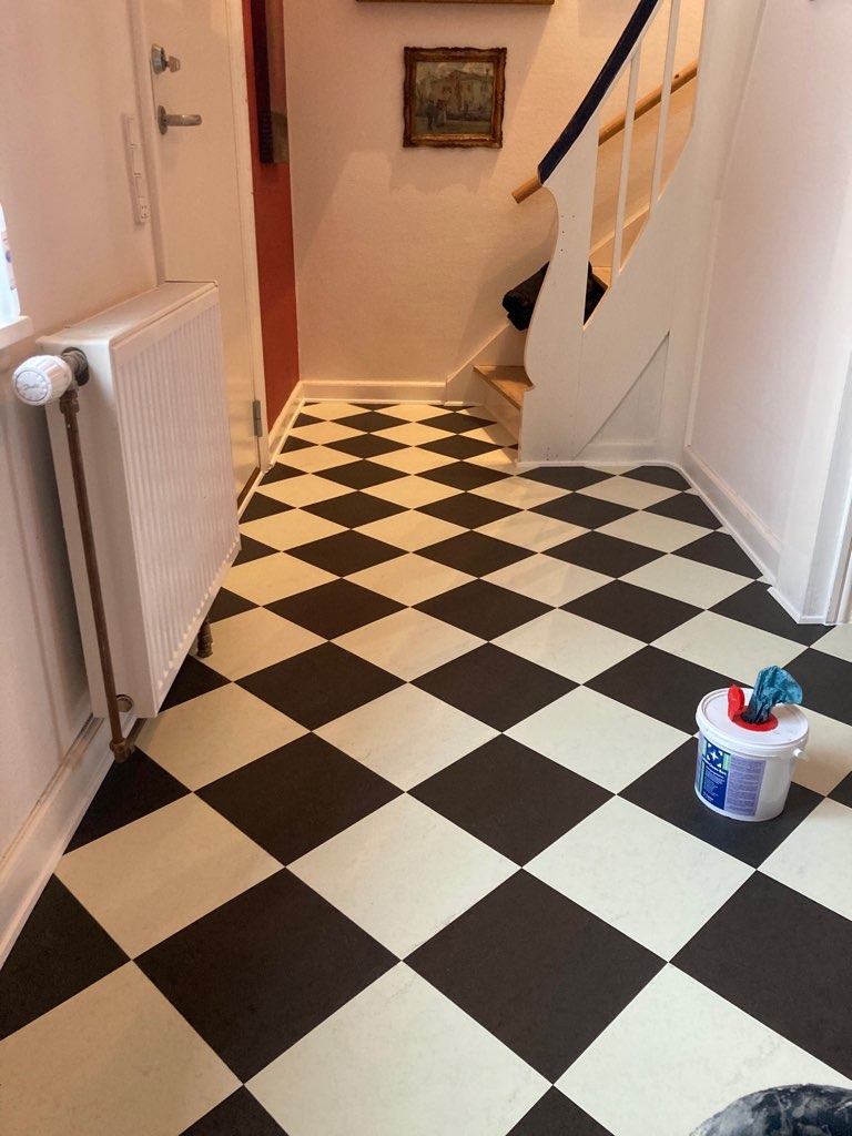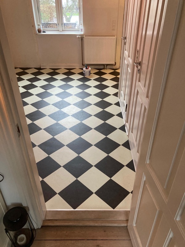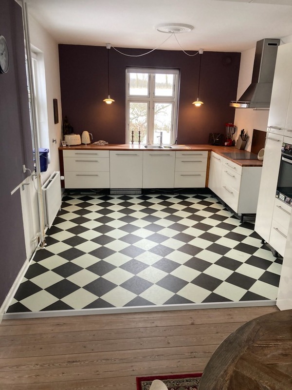 Super fin dialog fra start til slut, og fantastisk flot nivellering af det eksisterende underlag og derpå følgende lægning af linoleumsfliser i harlequin mønster. Afslutning ved køkkensokler og paneler helt perfekt. Vi kan klart anbefale SJ gulve - super veludført arbejde til rigtig fin pris.