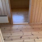 Gulvet var meget slidt men fremstår nu med perfekt udtryk efter afhøvling og efterfølgende lakeringer med lysning, 2komponent og UV-beskyttelse.