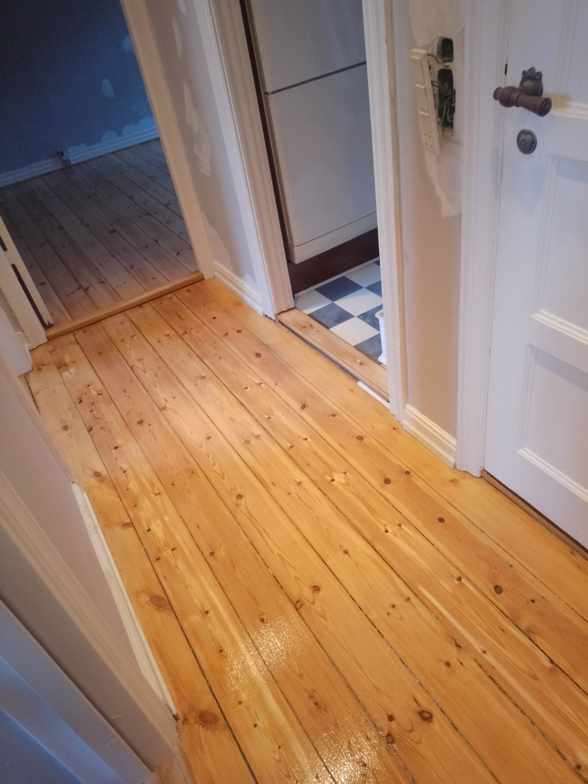 Stika’s Gulvservice har givet vores gamle plankegulve med gennemslidt lak helt nyt liv med en fantastisk flot slibning og efterfølgende lud- og sæbebehandling.