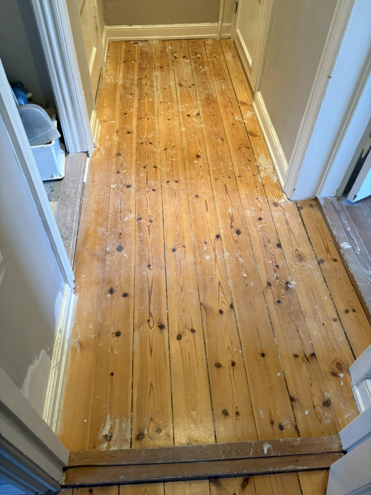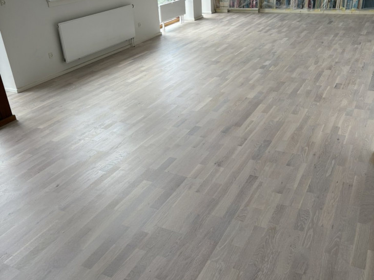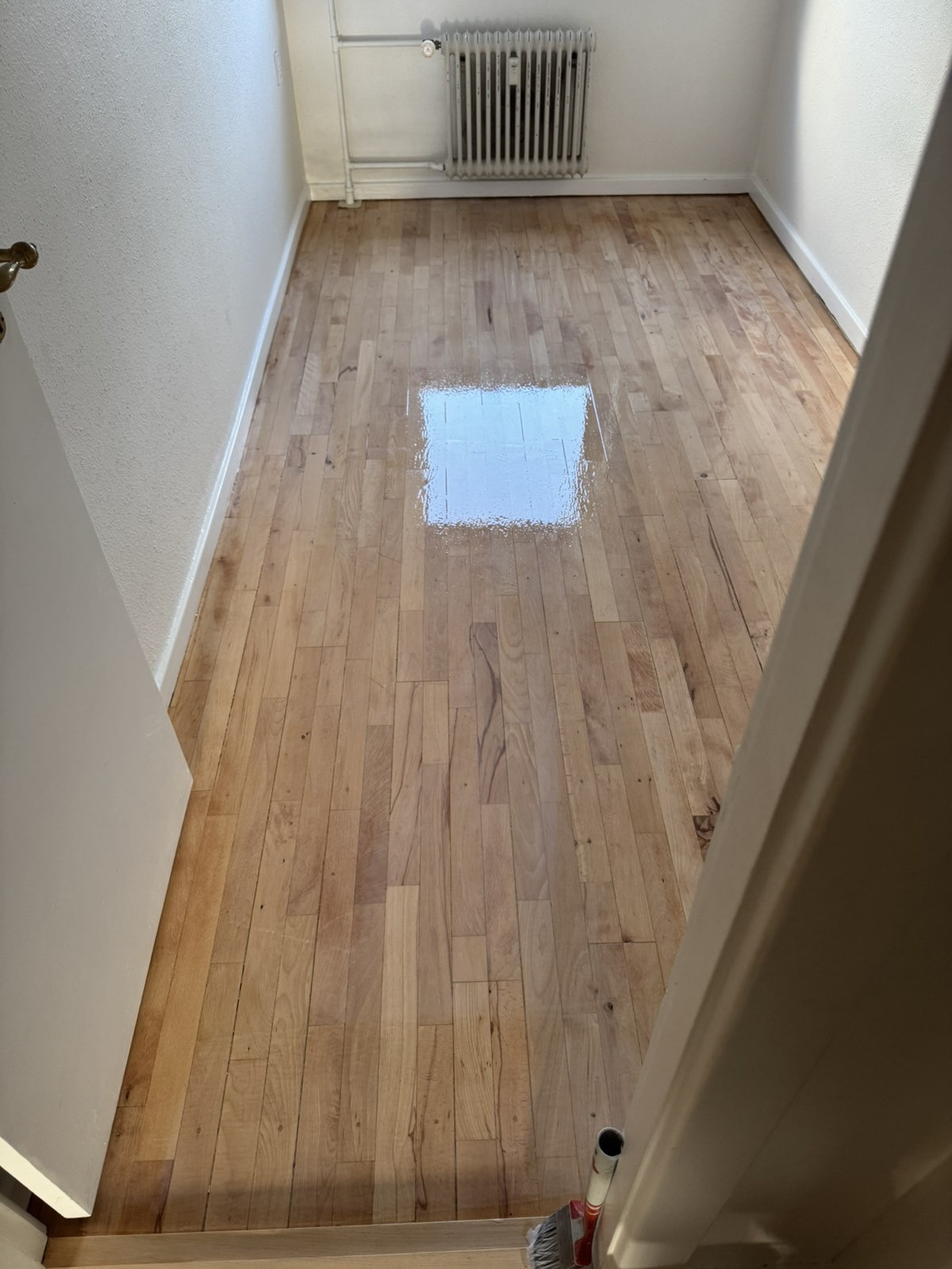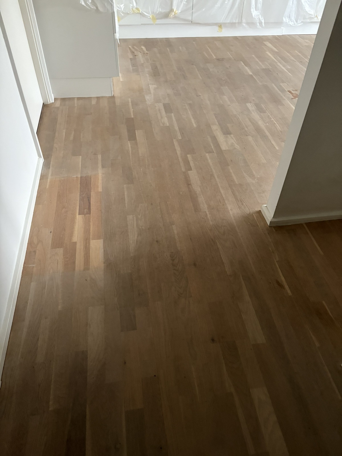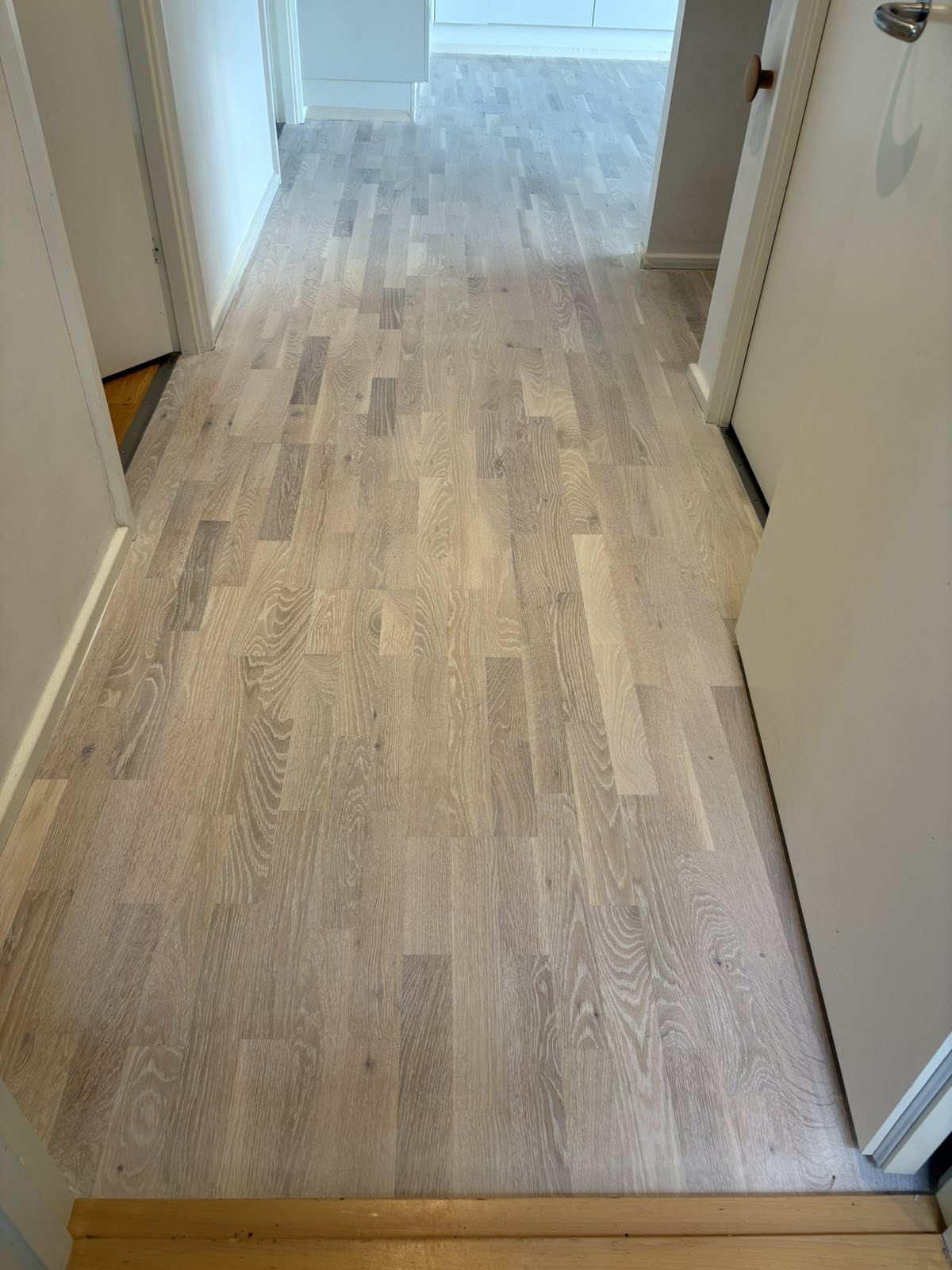 Koordinering/afdækning: Jeg havde også et separat malerfirma inde over, hvilket gjorde aftalerne lidt mere komplekse. Vi aftalte, at jeg selv stod for afdækning før gulvslibningen – det fungerede fint i praksis.