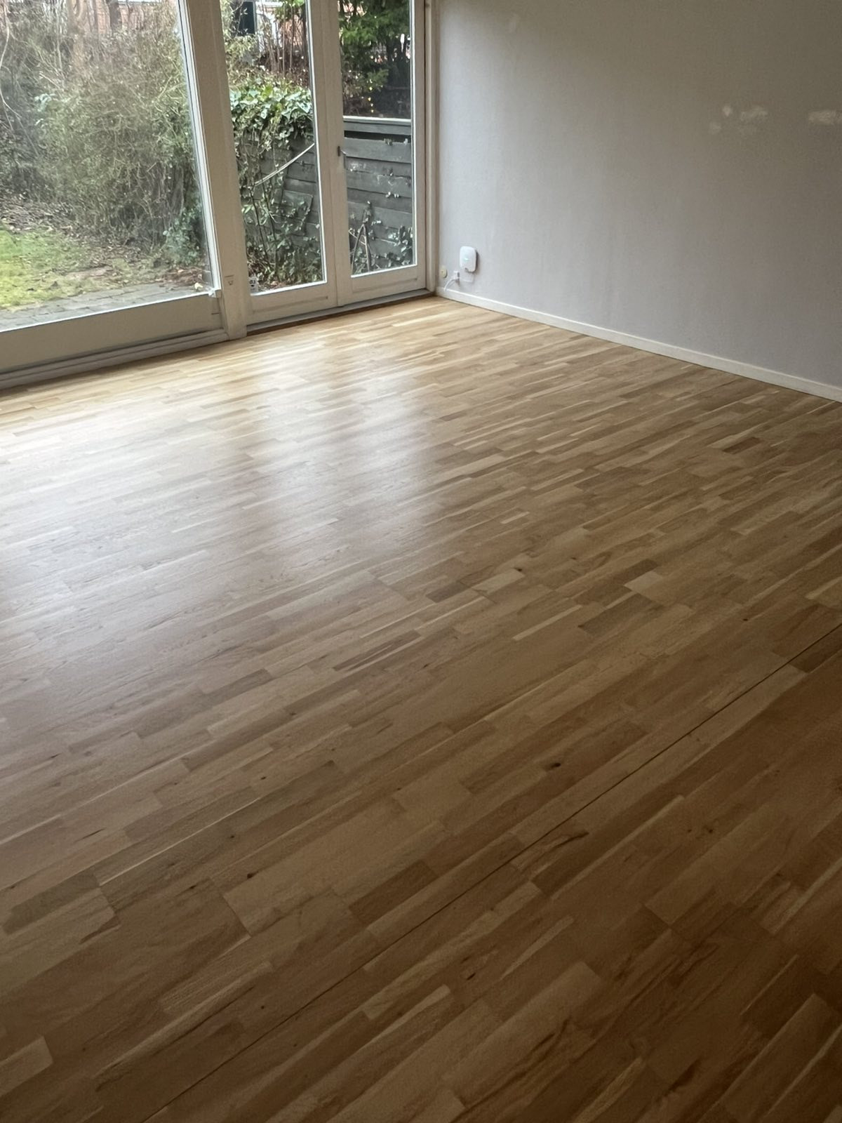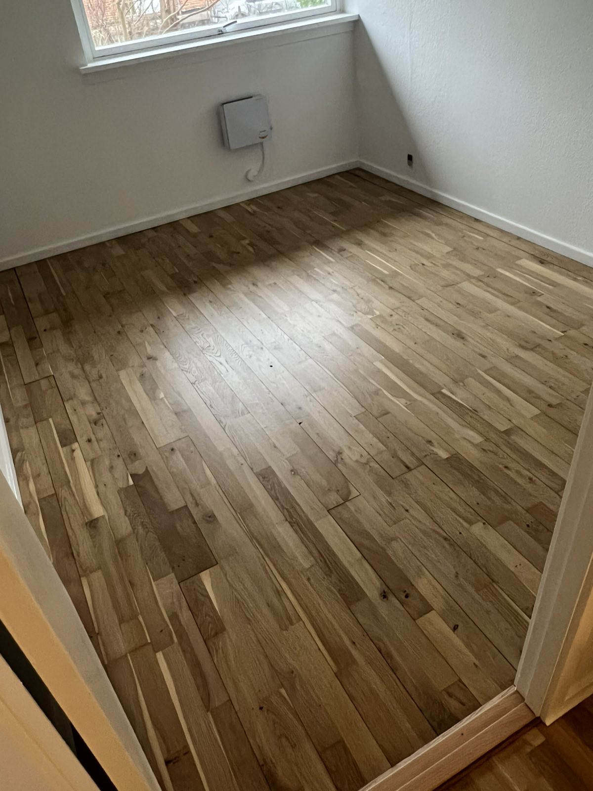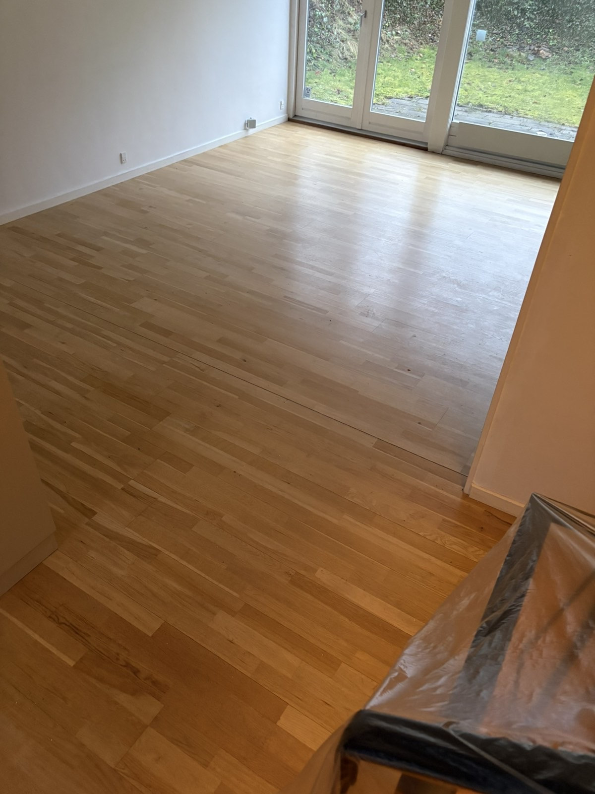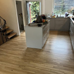 Vi fik slebet vores gulve og givet det hvid ludbehandling. Efter behandlingen synes vi dog at gulvet havde en gullig nuance flere steder. Jeg skrev en sms til Stikas, der på en søndag ringede 5 sekunder efter, og forsikrede mig det var helt almindeligt, men at de gerne gav det en efterslibning. Dagen efter var gulvet perfekt.