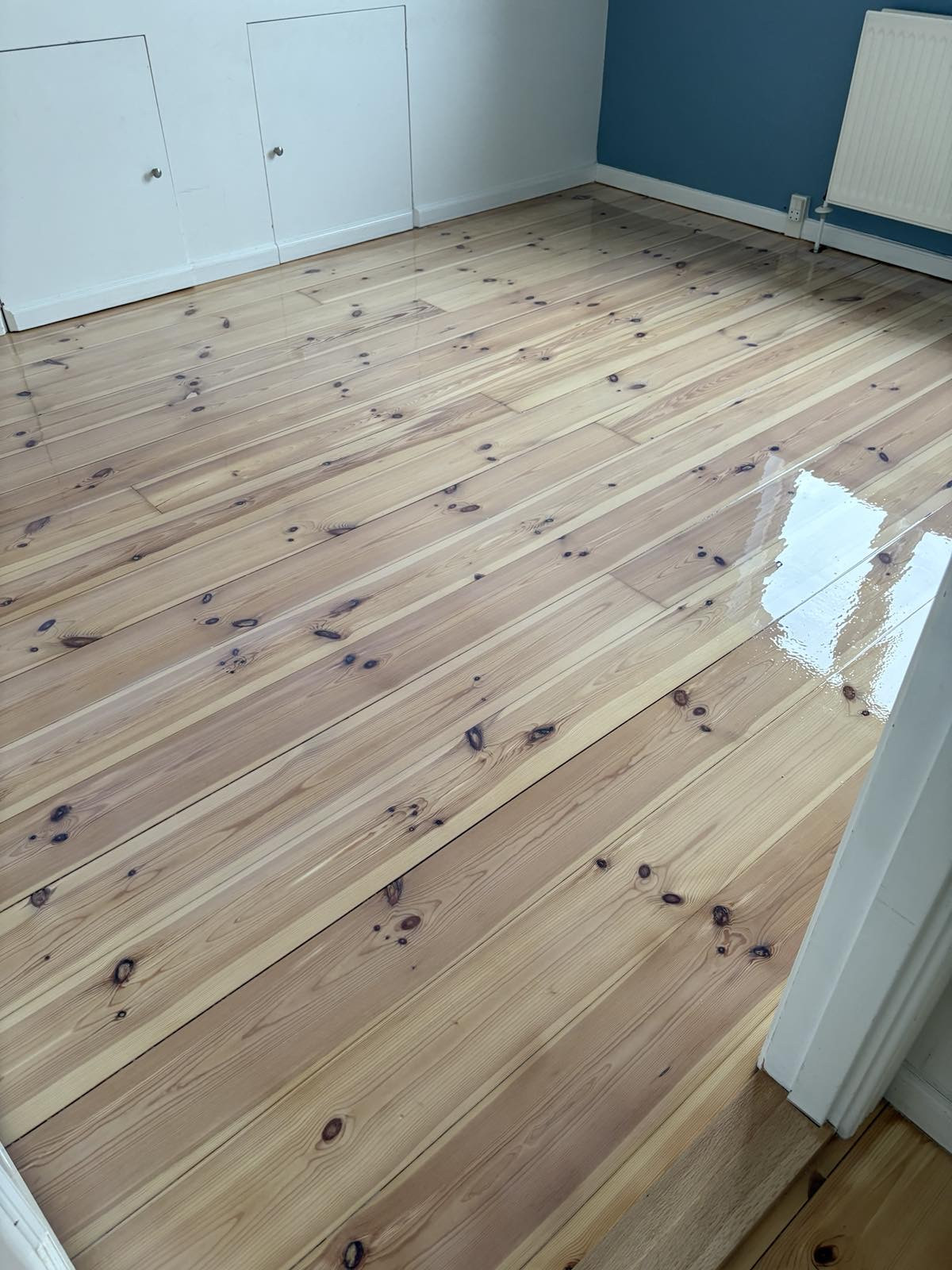 Marko afleverede et rigtig flot ny-slebet gulv, næsten alt var 100% perfekt.