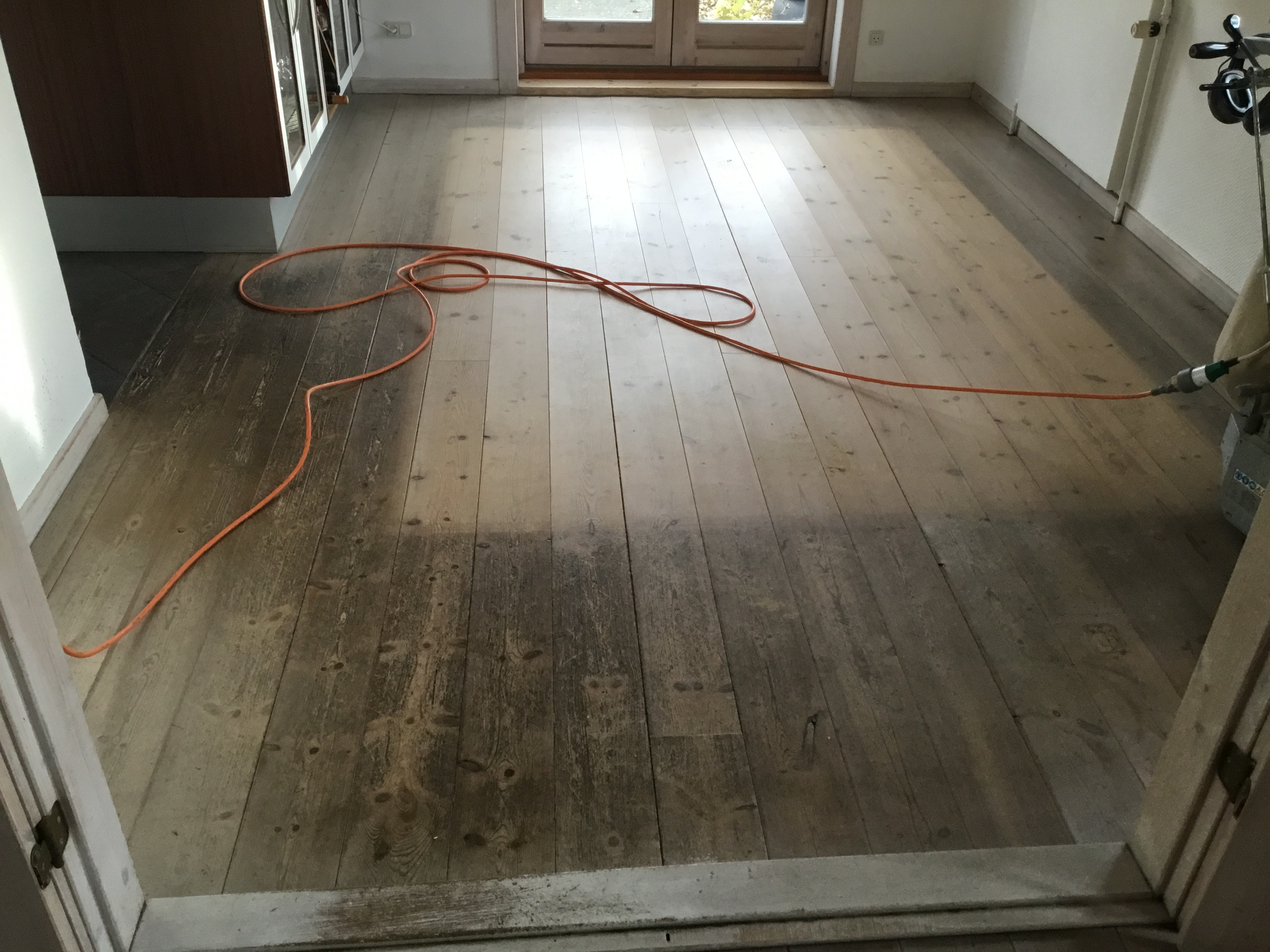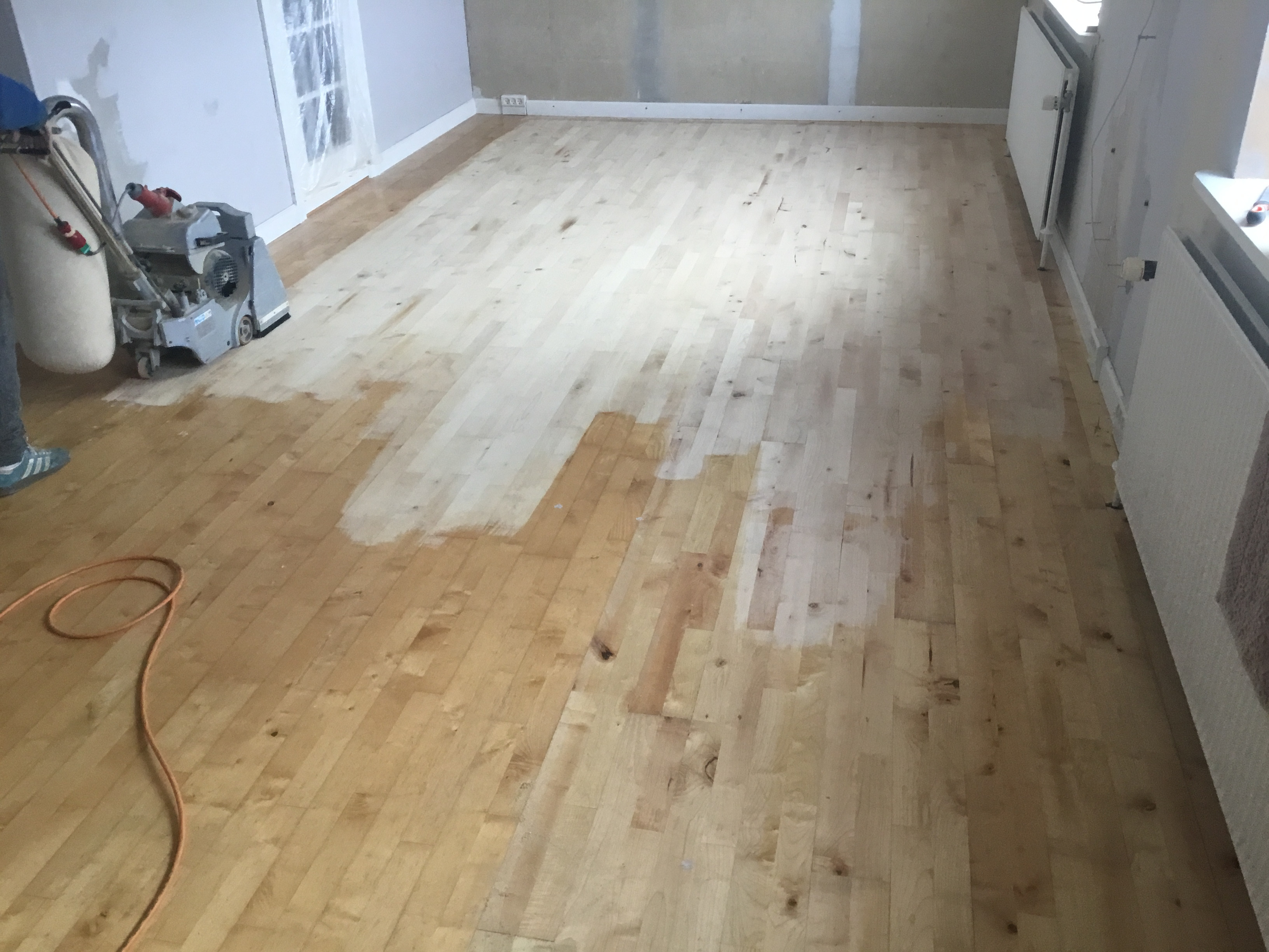 Kim har slebet alle mine trægulve i huset og det er blevet så flot.