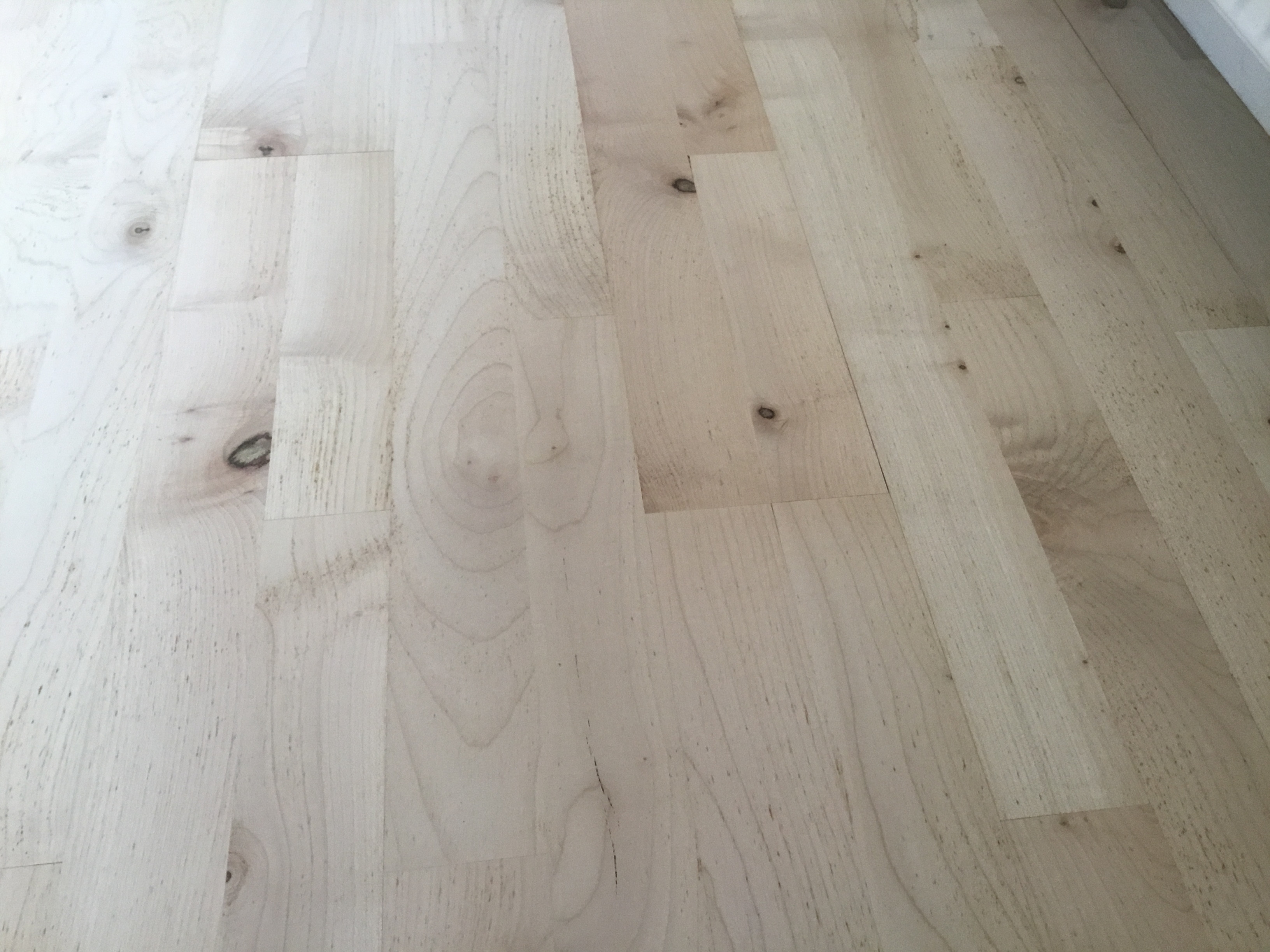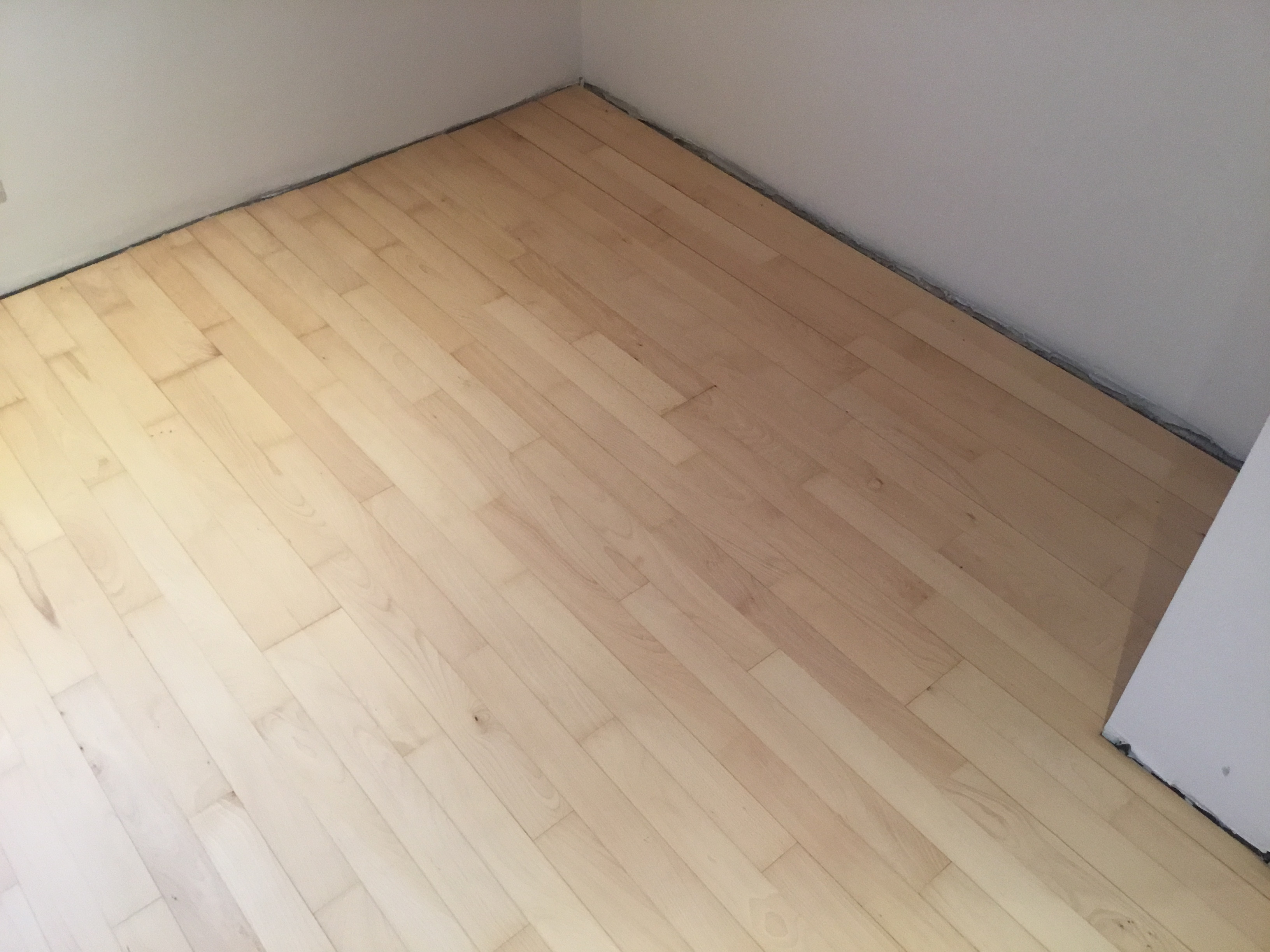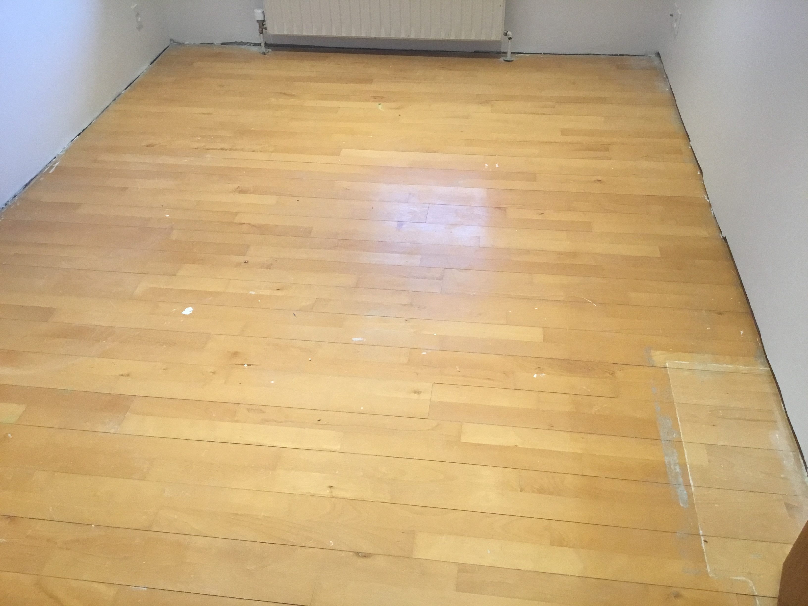 Fra et parketgulv som var blevet godt ødelagt under behandlinger fra sygeplejen under min mands sygdom, har jeg nu fået et pænt gulv igen