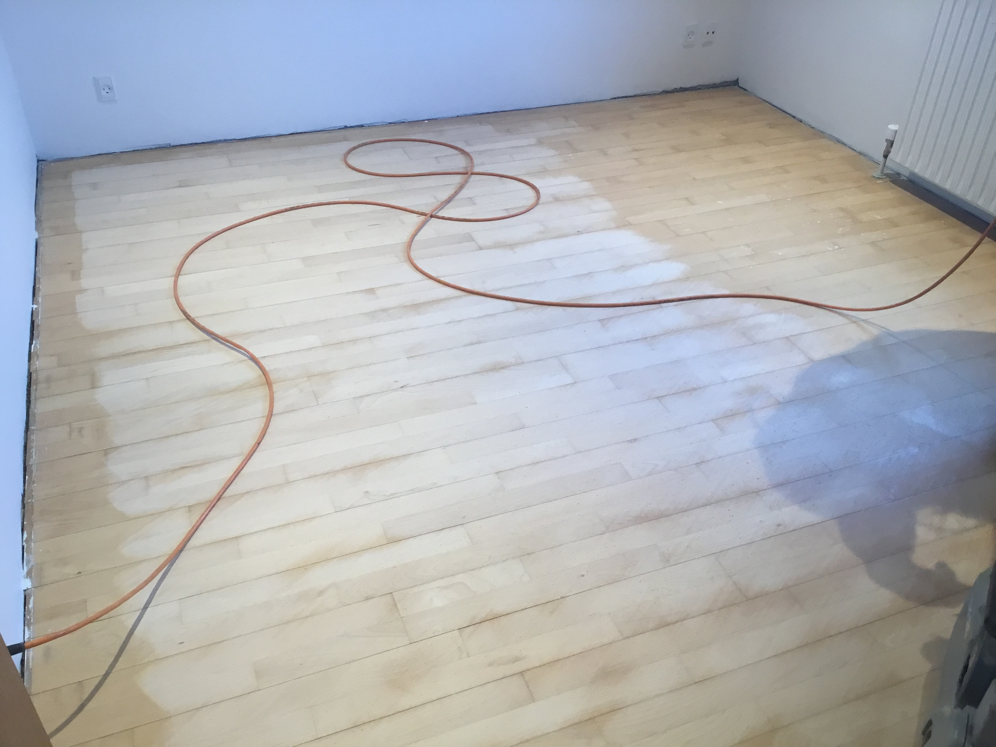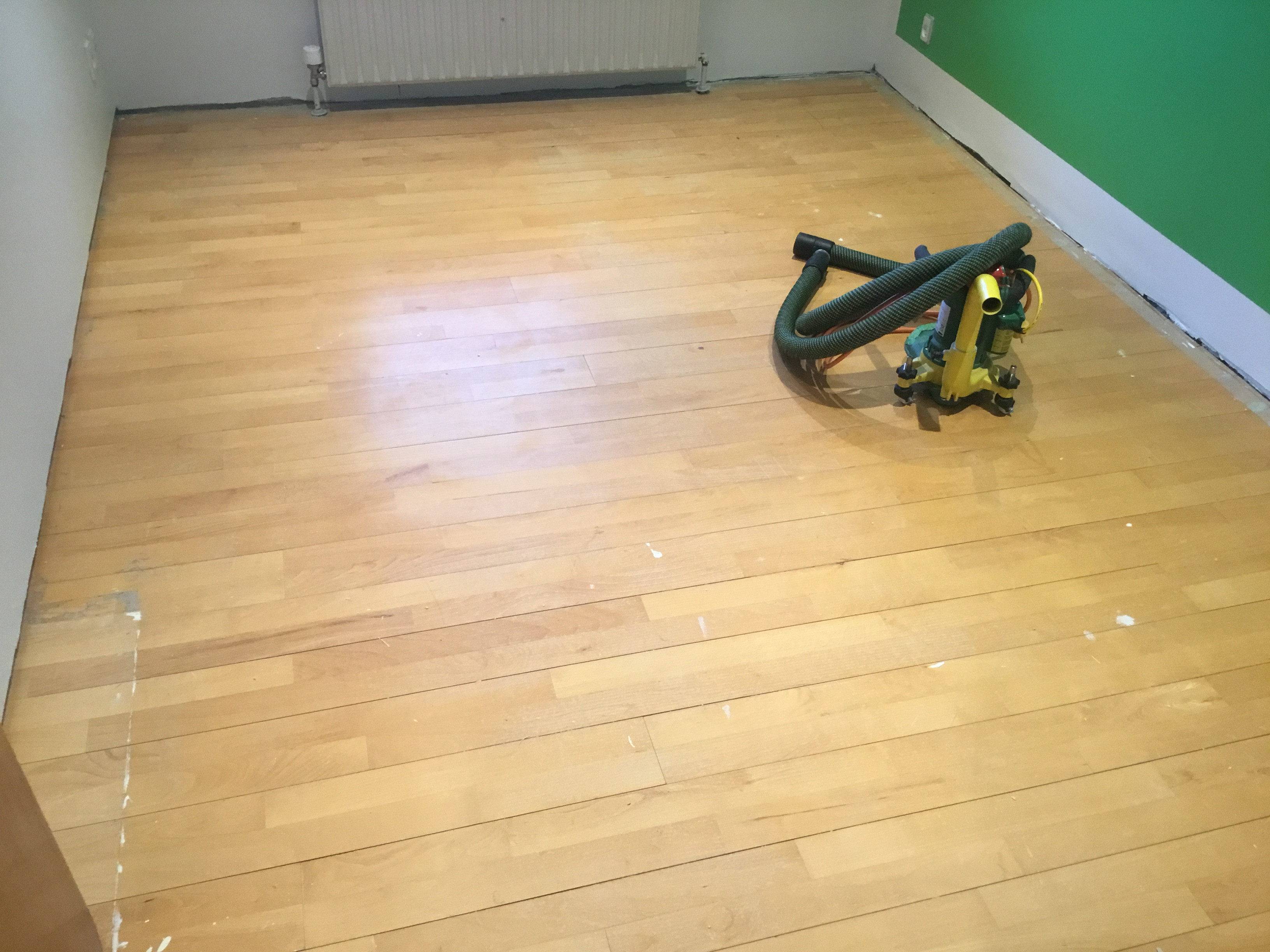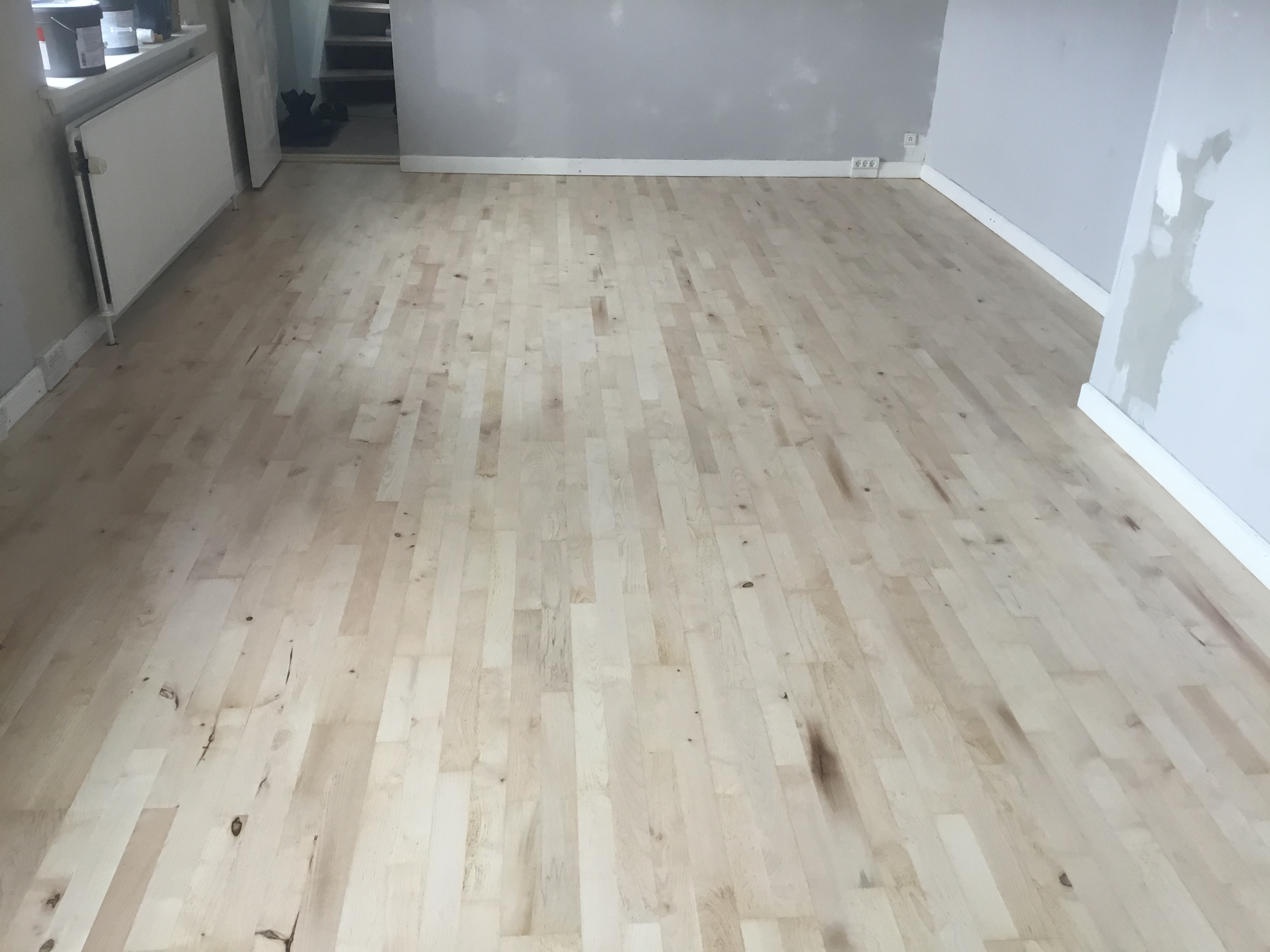 I juni skulle han så slibe stue og spisestue og kunne godt huske gulvet. Igen kom han som aftalt og igen 2 dage, så var det klart.