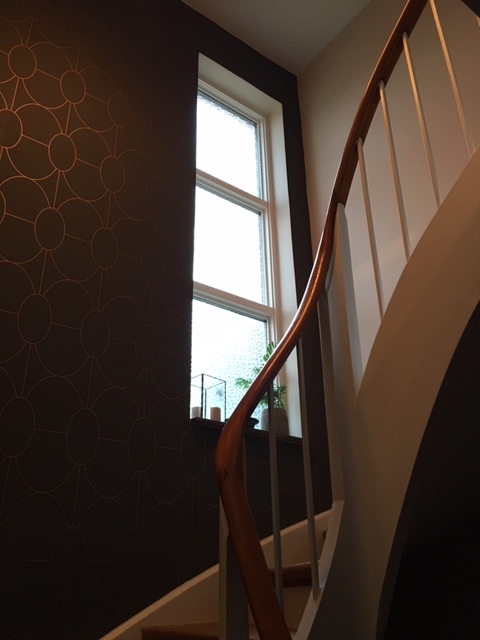 Vi brugte Schønemann & Co til en opgave med mønstret tapet i en trappeopgang.