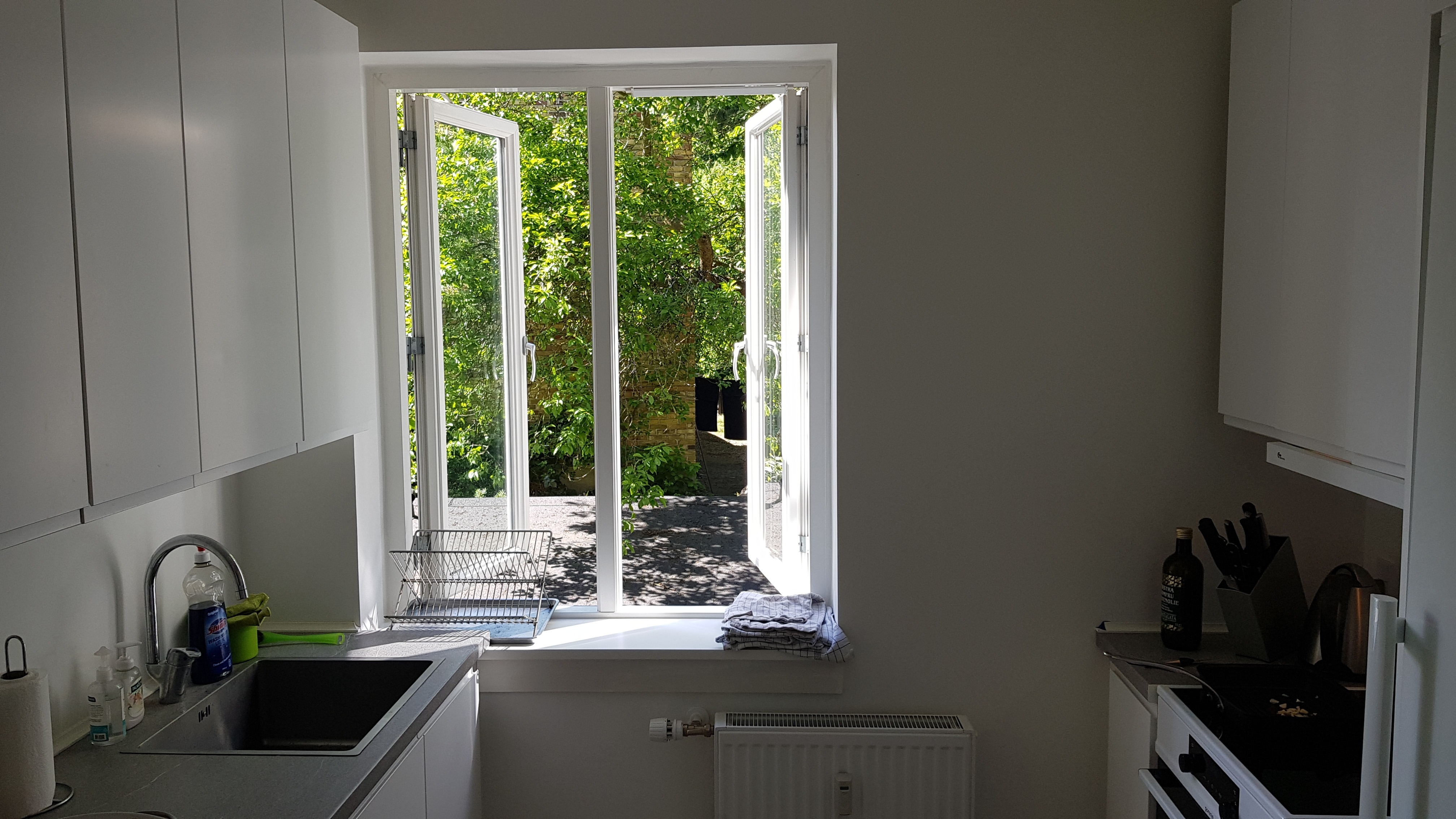 Aftalen var at køkkenet skulle stå klart til jeg kom hjem. Allerede 2 uger efter at jeg var taget afsted blev køkkenet meldt klart. Jeg kom hjem til et nymalet køkken hvor man bare har lyst til at lave mad til gode venner