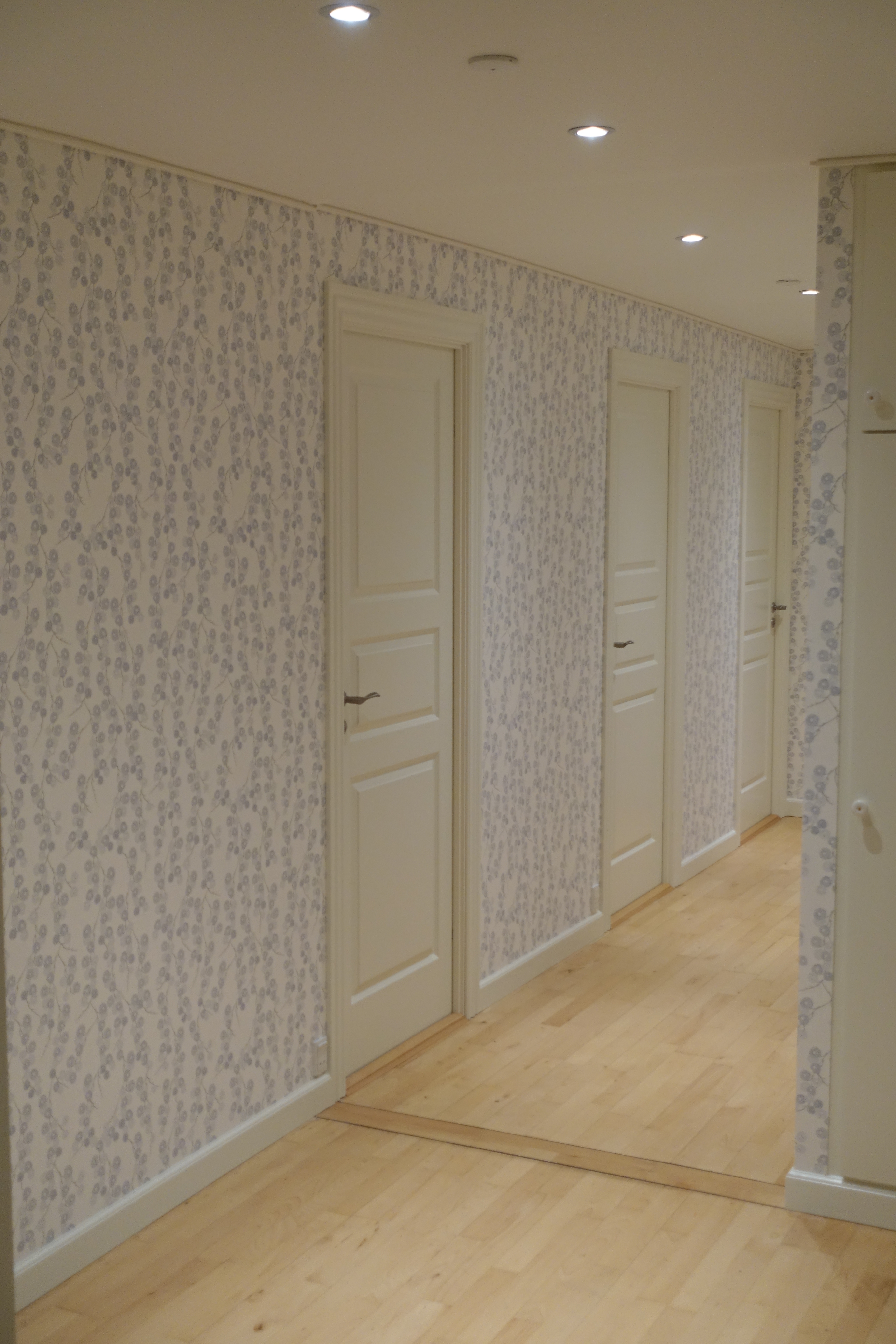 Linda kom forbi hurtigt efter første telefonkontakt og gav et bud på hvad det ville koste. Hun rådet os til at grunde væggen inden at de skulle sætte tapet op og var behjælpelig med at finde det rigtige produkt.