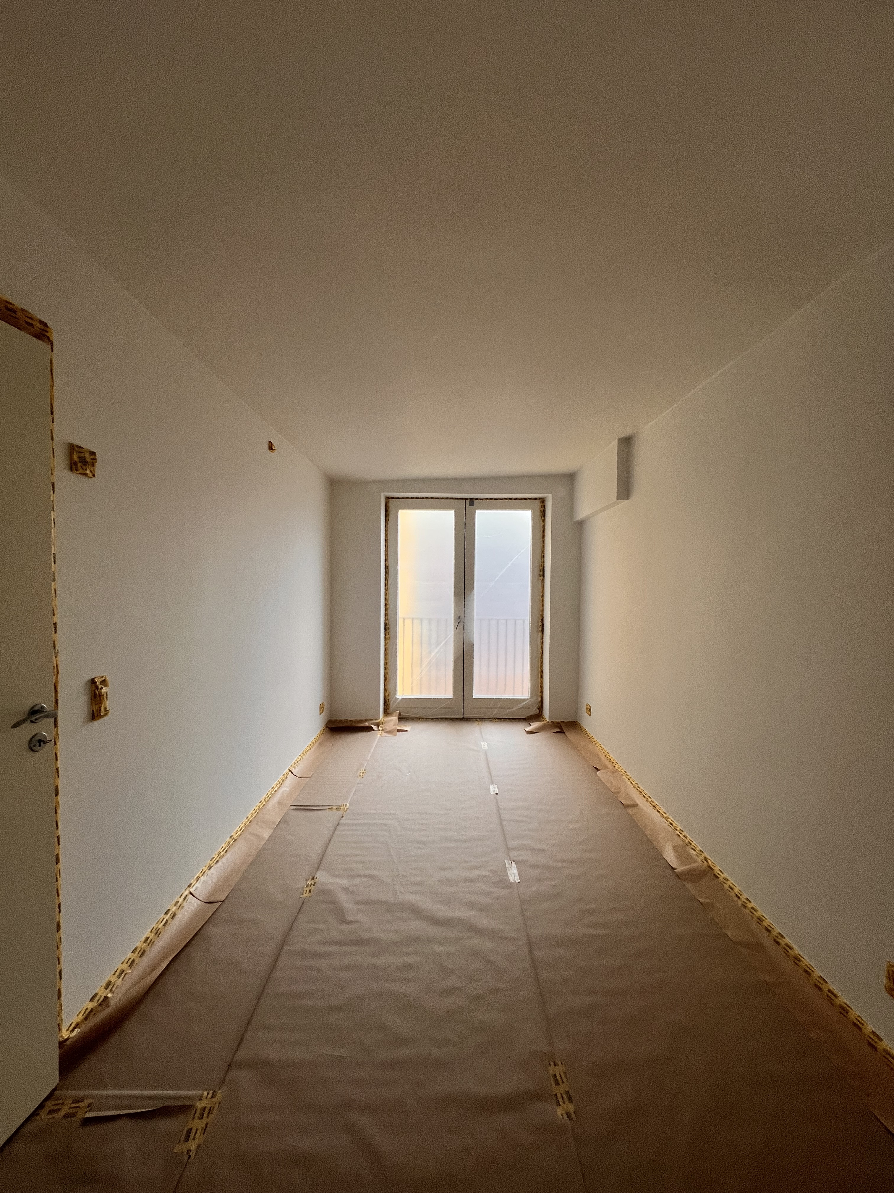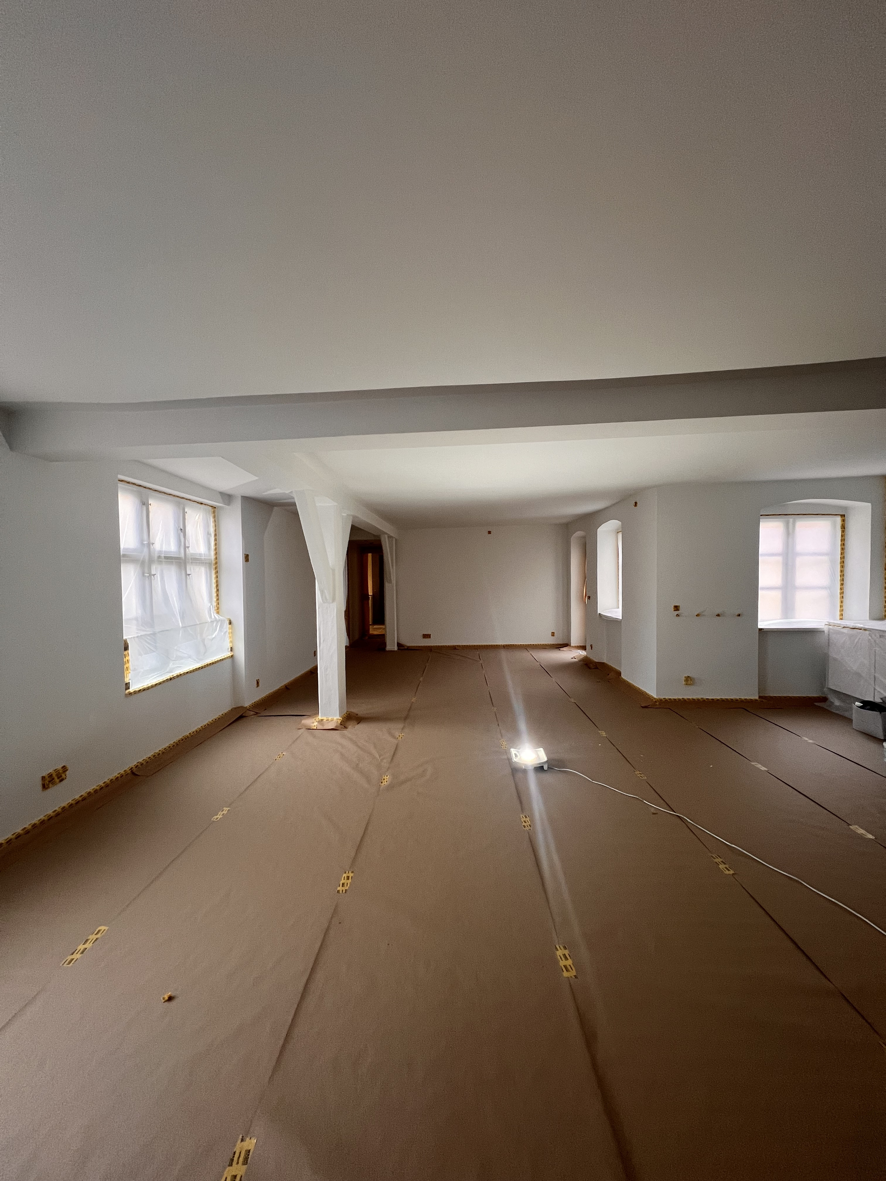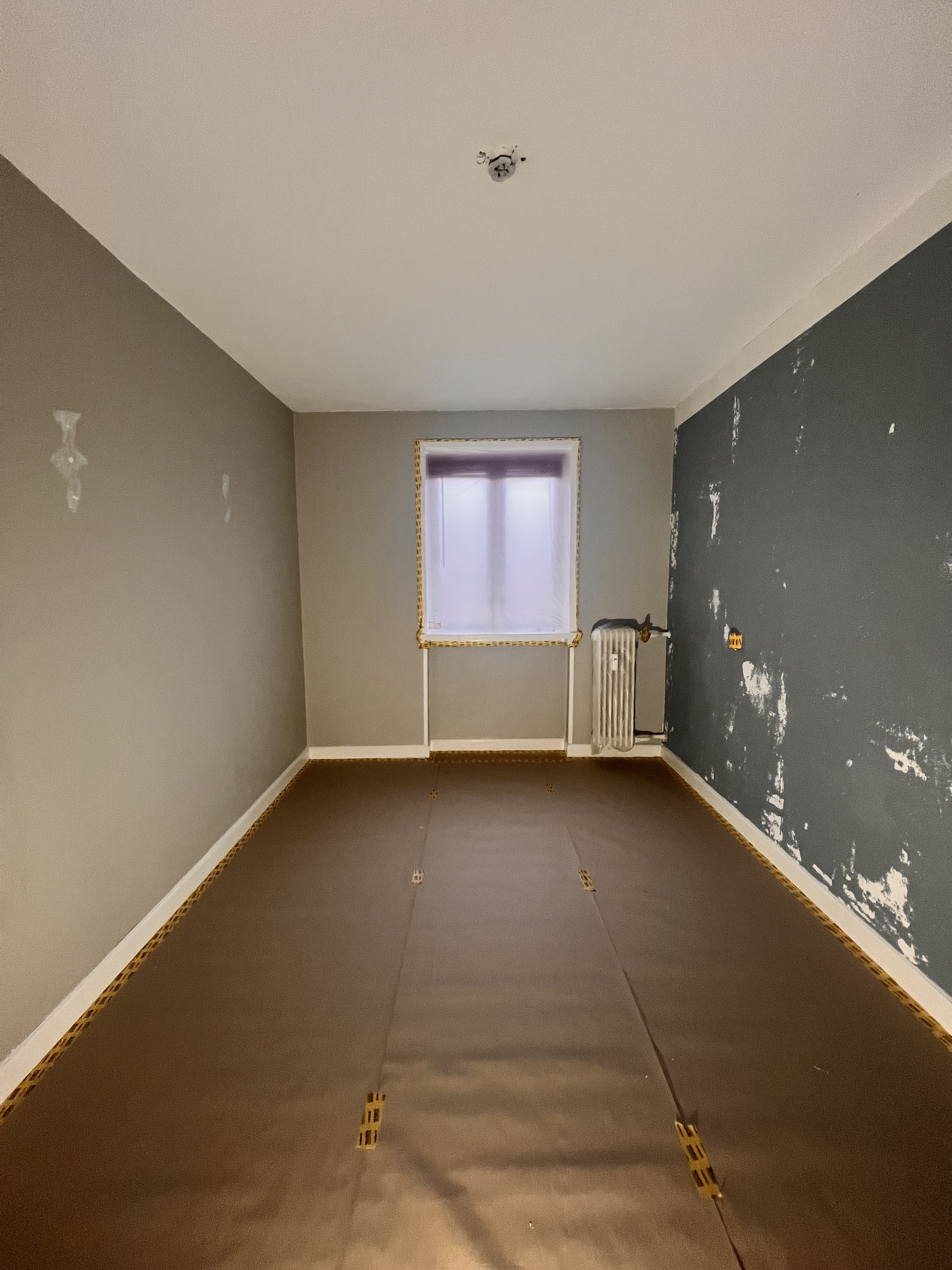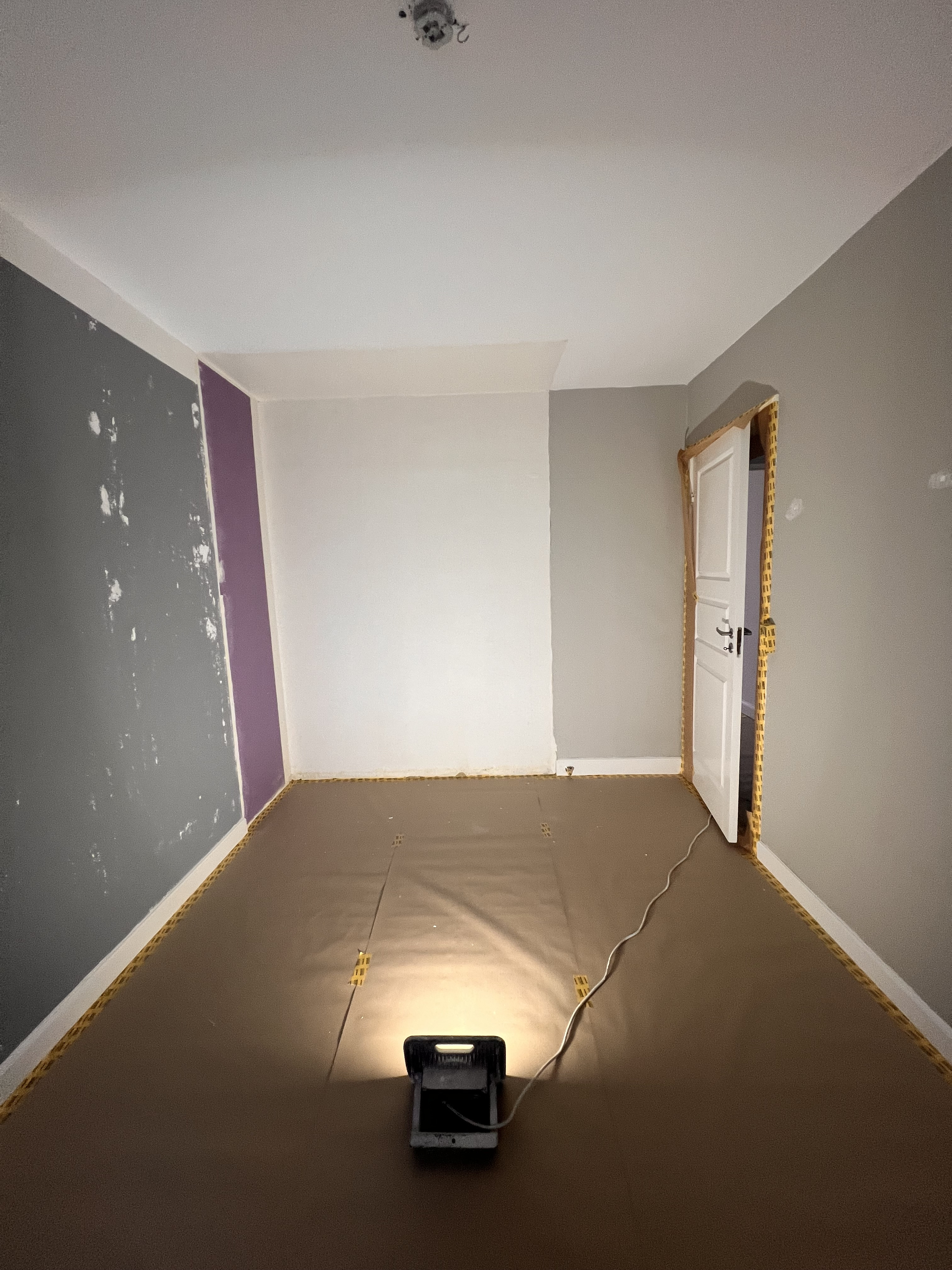 Vi fik malet vores nye lejlighed hvid, der ved overtagelse havde et blåt rum inkl. loft, mørkegråt rum inkl. loft og et blåt badeværelse. Alle 98 kvm blev malet hvide, og det er super godt ud. Anton var også sød at efterlade lidt maling til os, så vi kunne give badeværelset et 3. Lag med vådrumsmaling, da det lignede lidt, at 2. Lag ikke var nok. Det fik vi gjort, og alt er godt