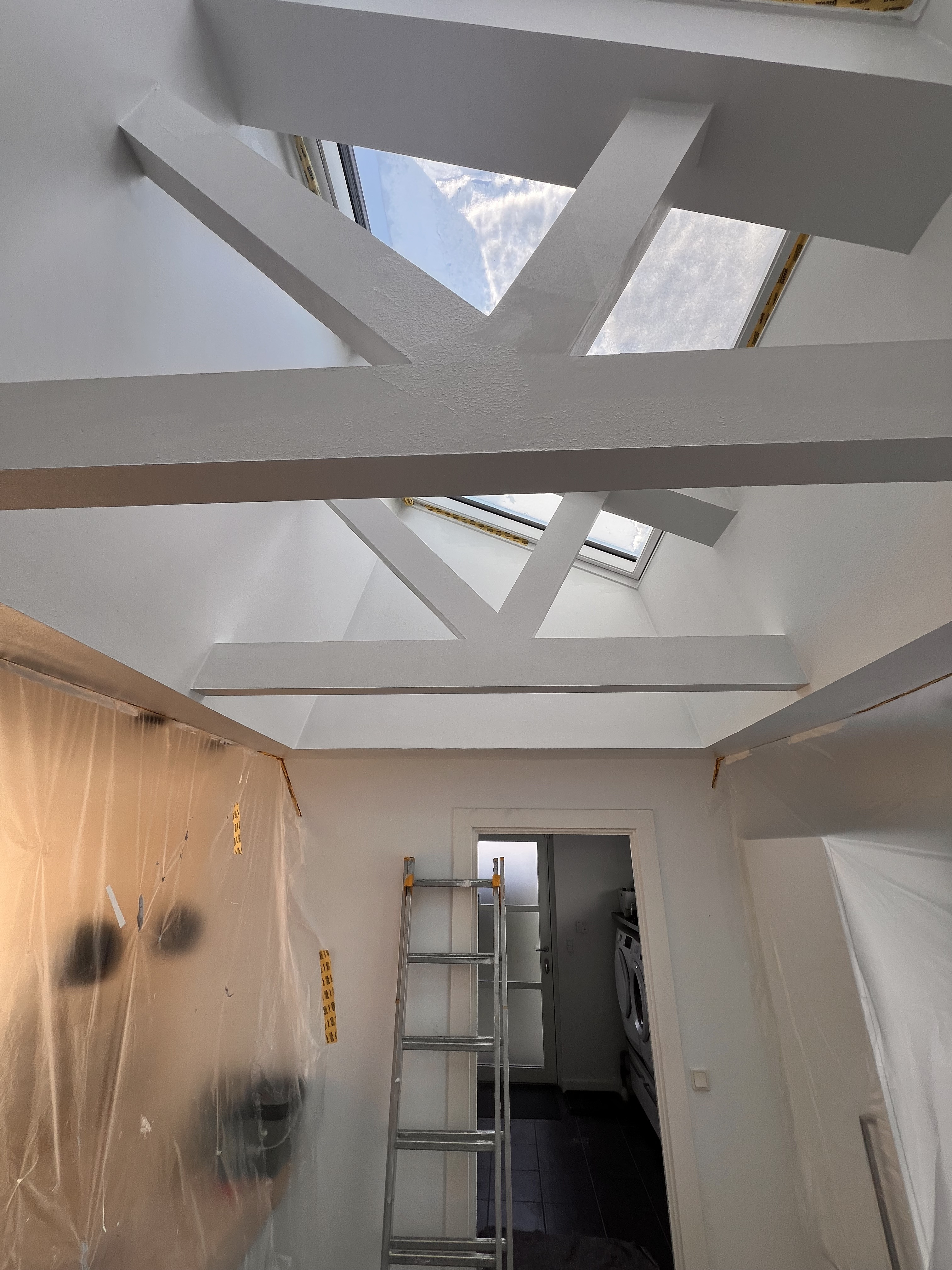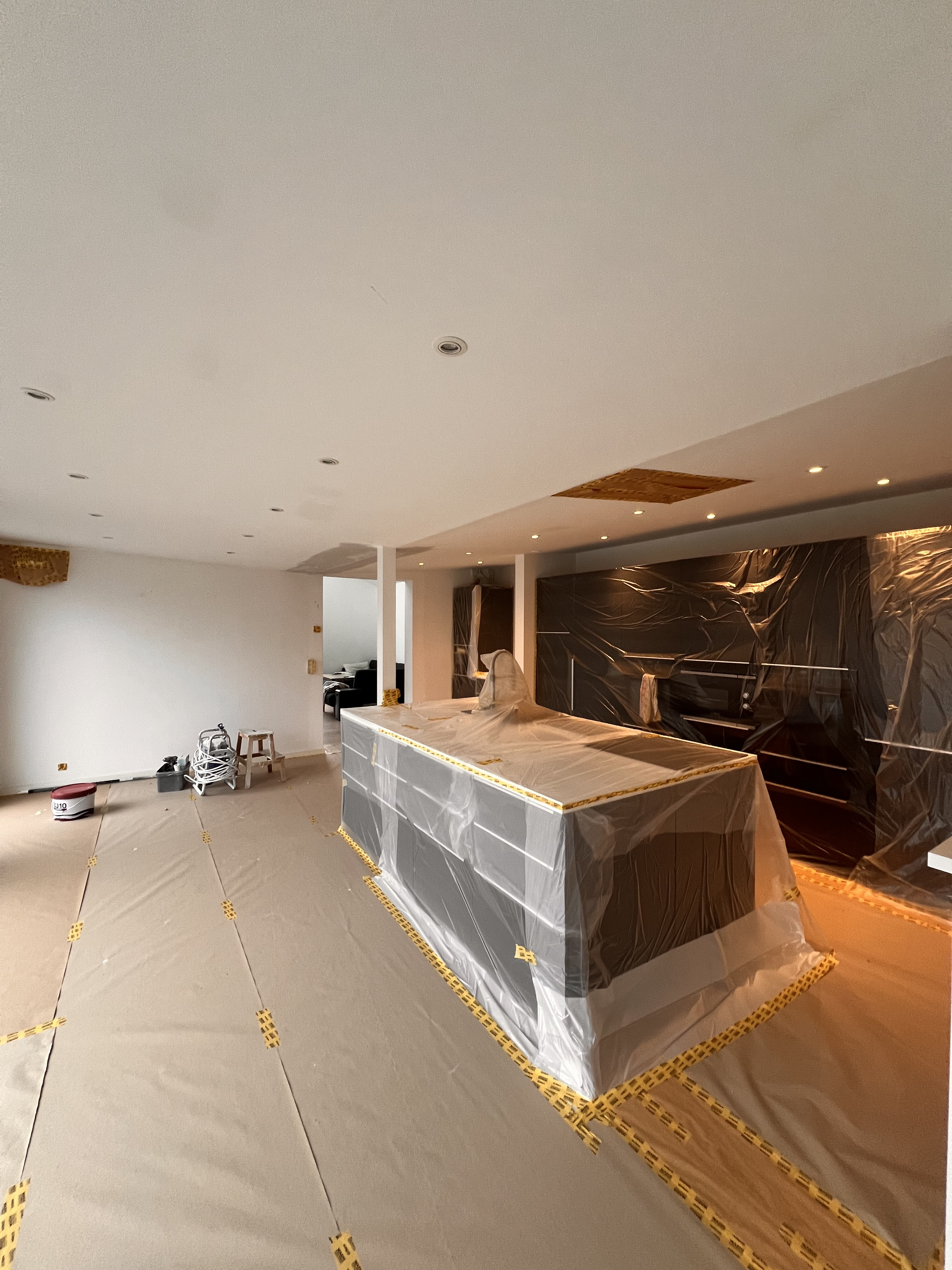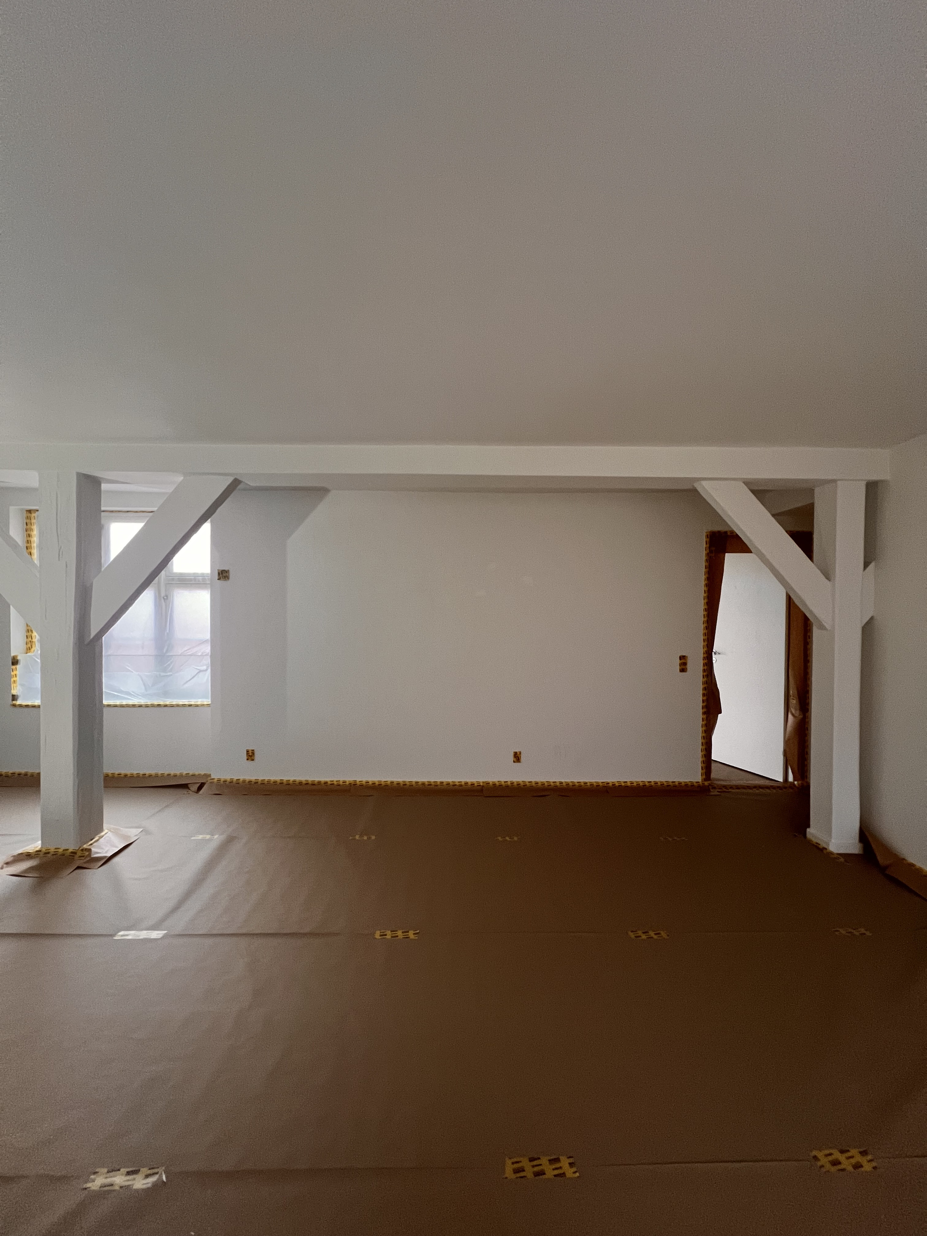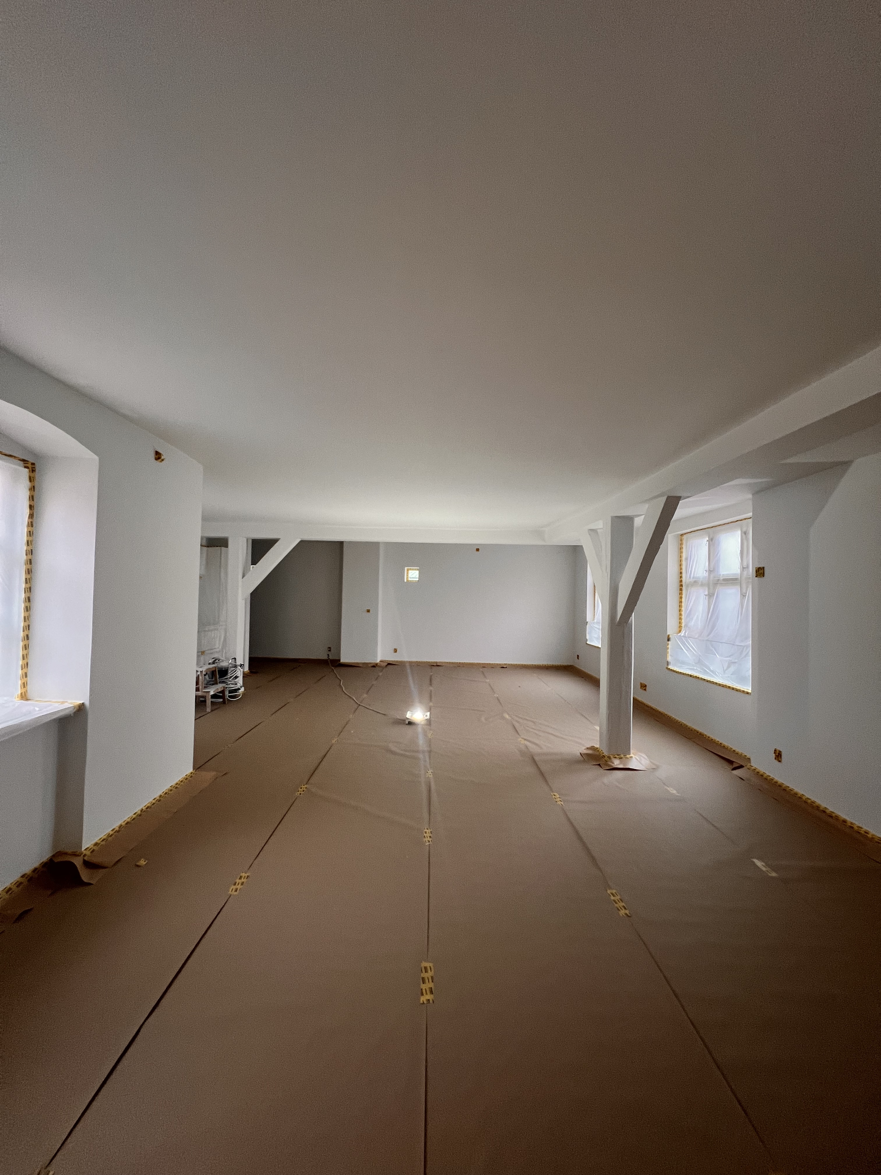 Vi fik malet vores nye lejlighed hvid, der ved overtagelse havde et blåt rum inkl. loft, mørkegråt rum inkl. loft og et blåt badeværelse. Alle 98 kvm blev malet hvide, og det er super godt ud. Anton var også sød at efterlade lidt maling til os, så vi kunne give badeværelset et 3. Lag med vådrumsmaling, da det lignede lidt, at 2. Lag ikke var nok. Det fik vi gjort, og alt er godt