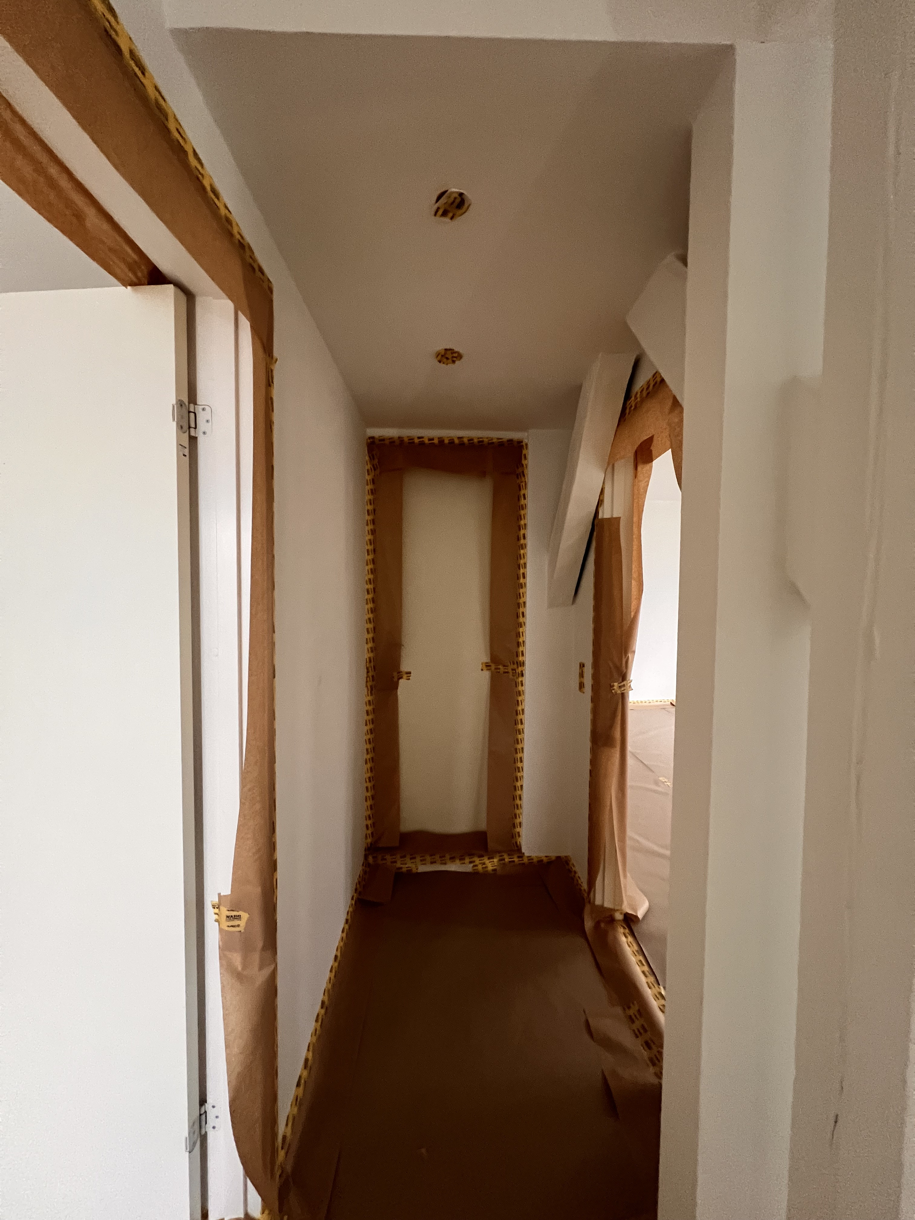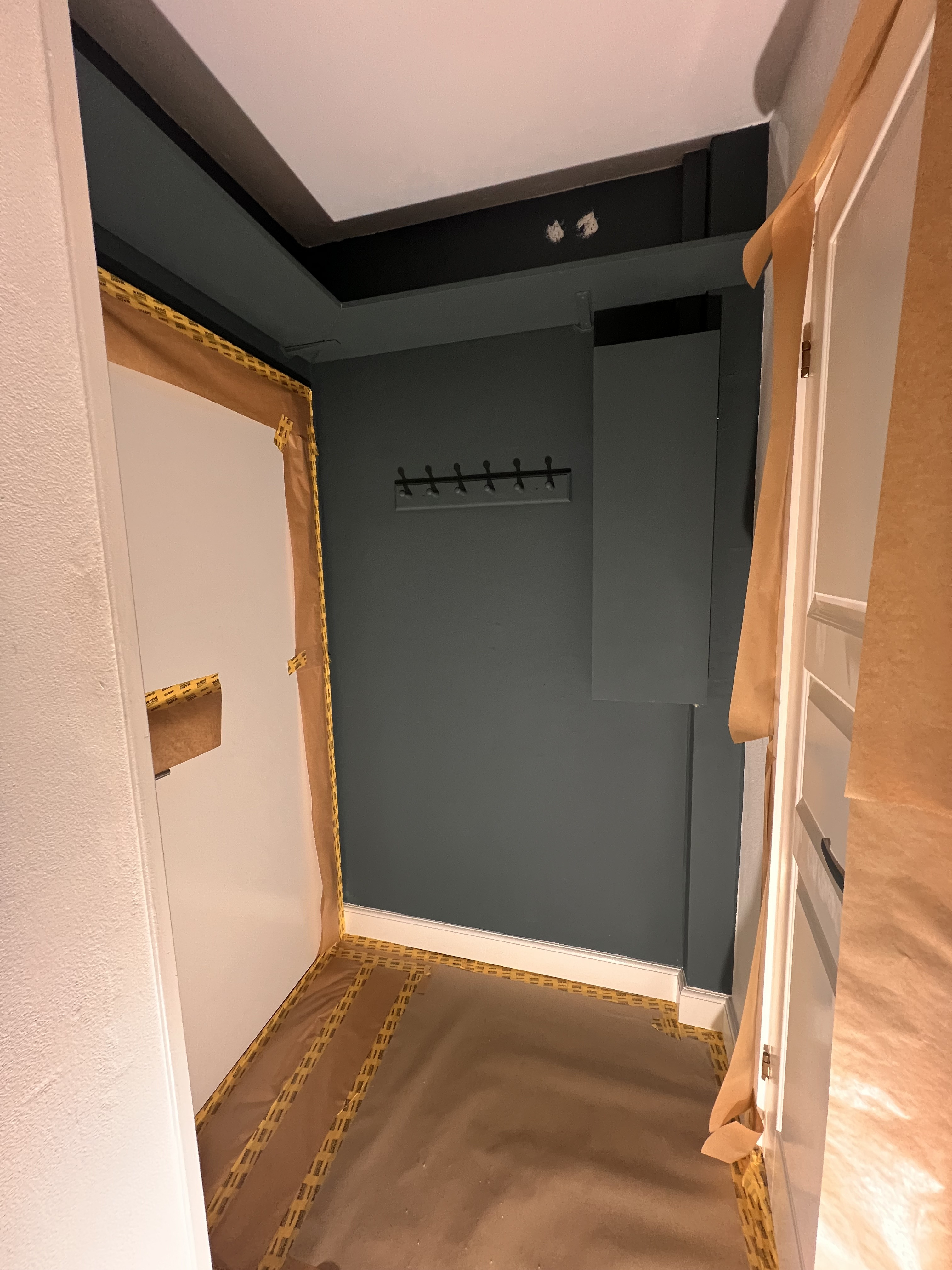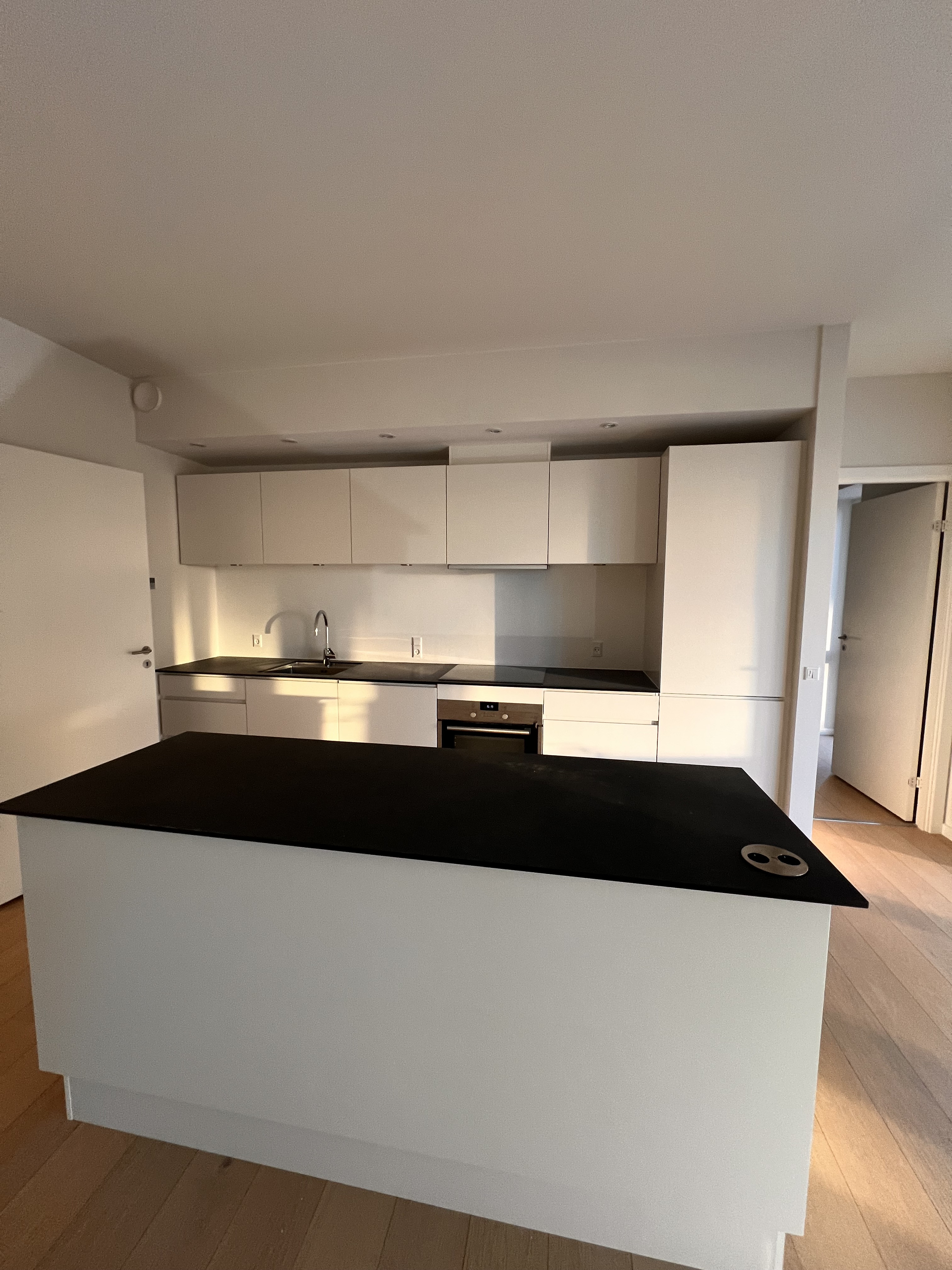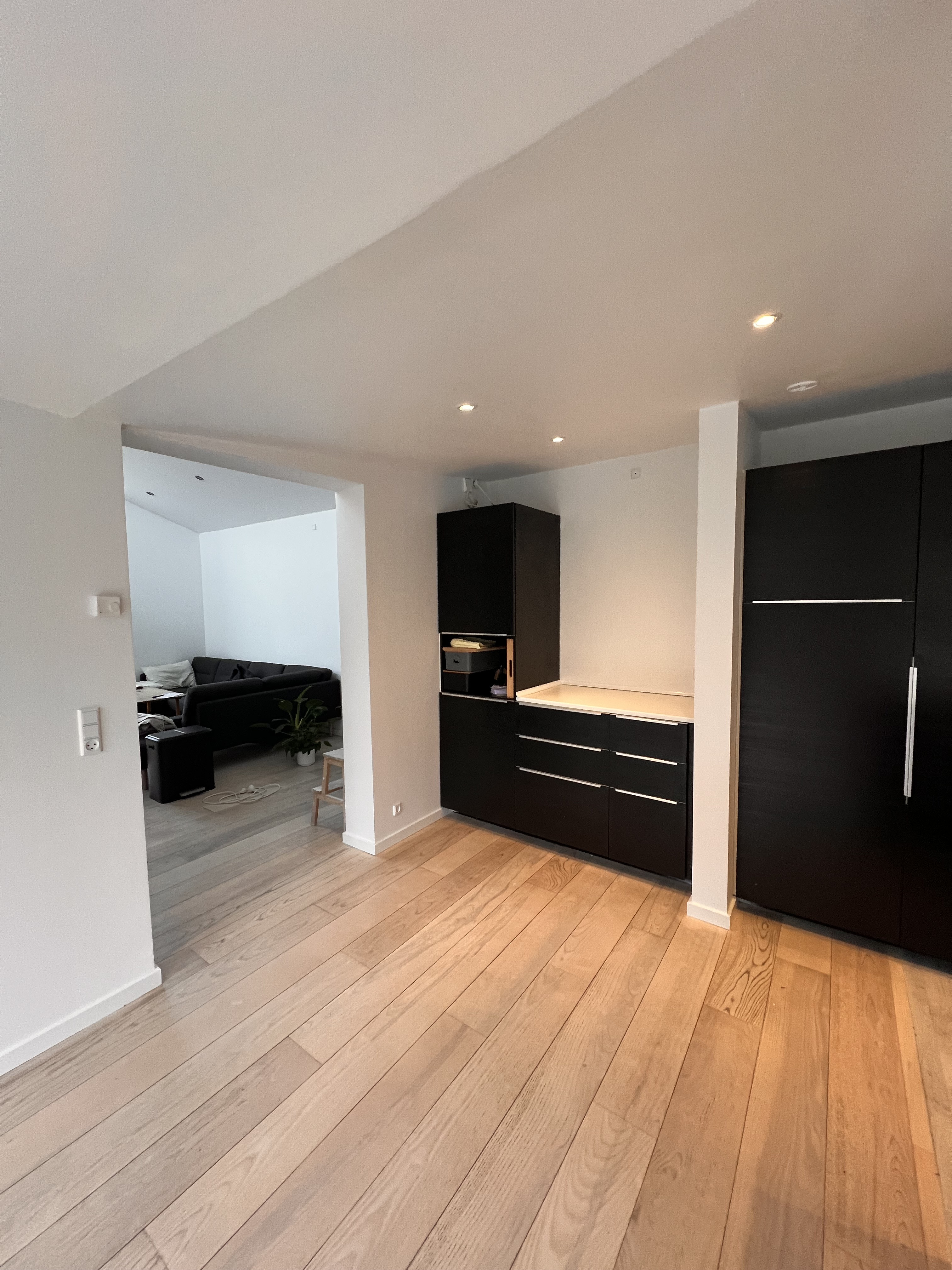 Vi fik malet vores nye lejlighed hvid, der ved overtagelse havde et blåt rum inkl. loft, mørkegråt rum inkl. loft og et blåt badeværelse. Alle 98 kvm blev malet hvide, og det er super godt ud. Anton var også sød at efterlade lidt maling til os, så vi kunne give badeværelset et 3. Lag med vådrumsmaling, da det lignede lidt, at 2. Lag ikke var nok. Det fik vi gjort, og alt er godt