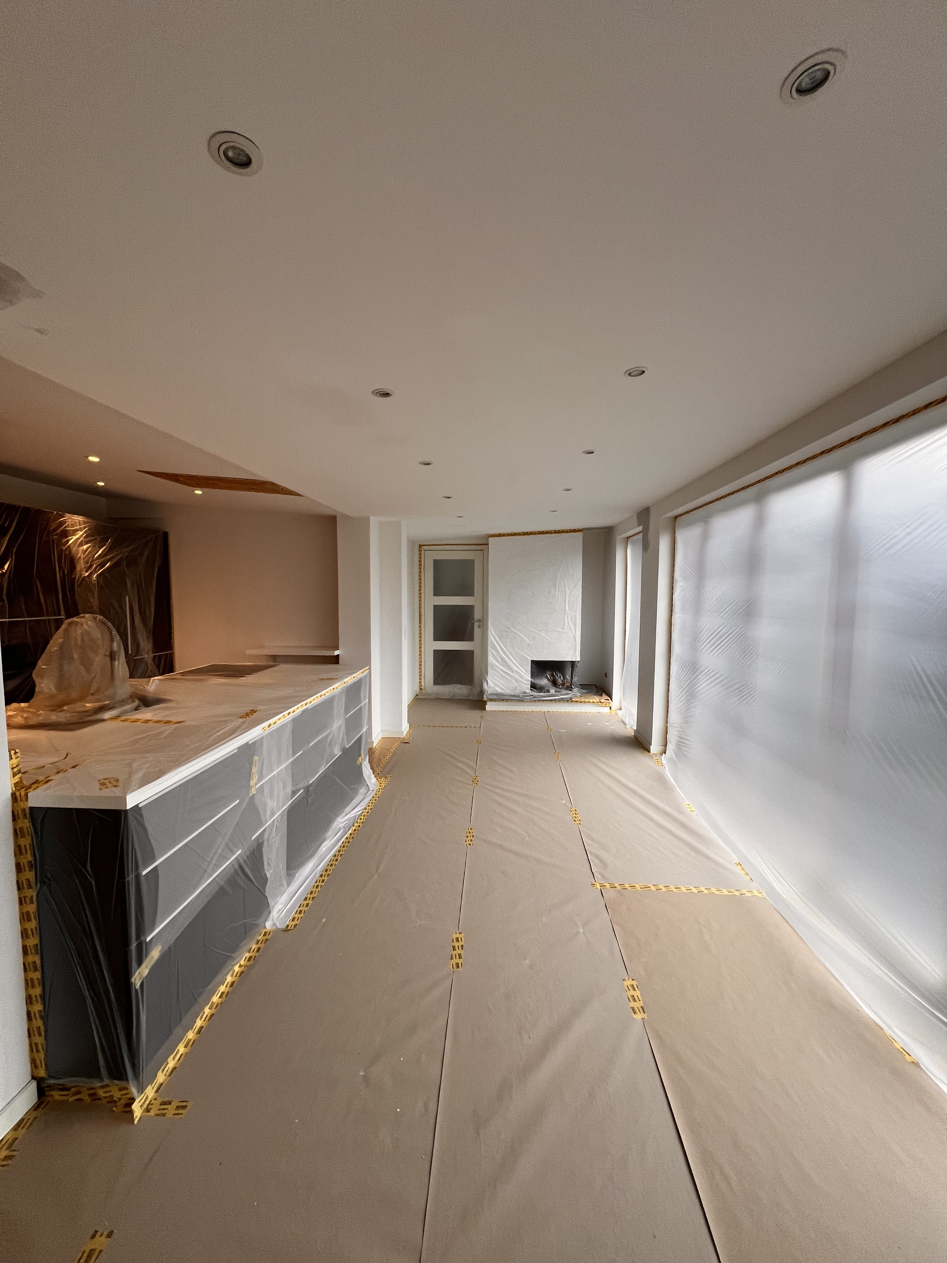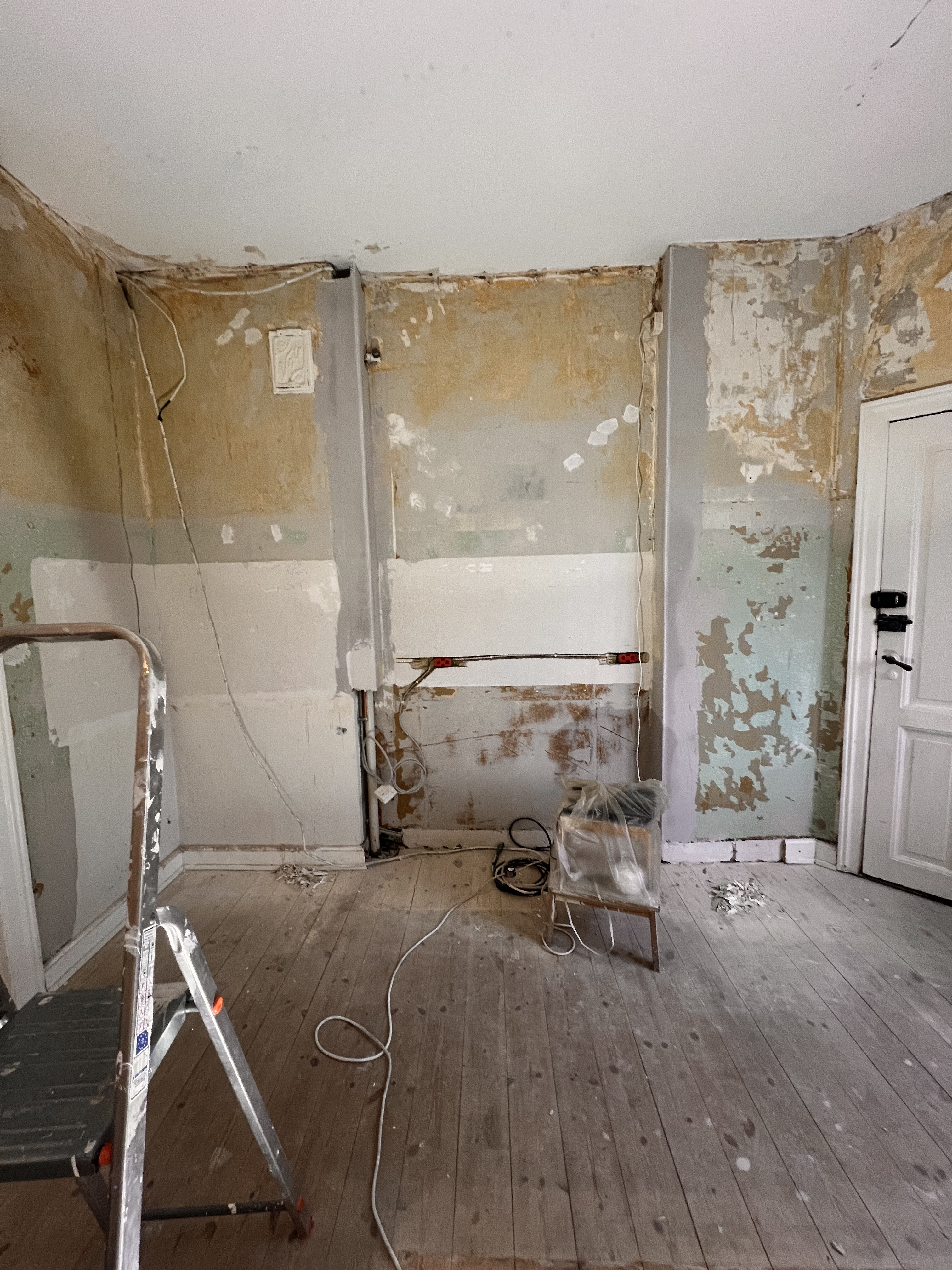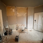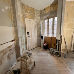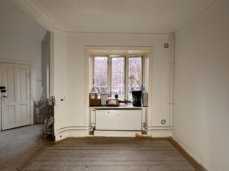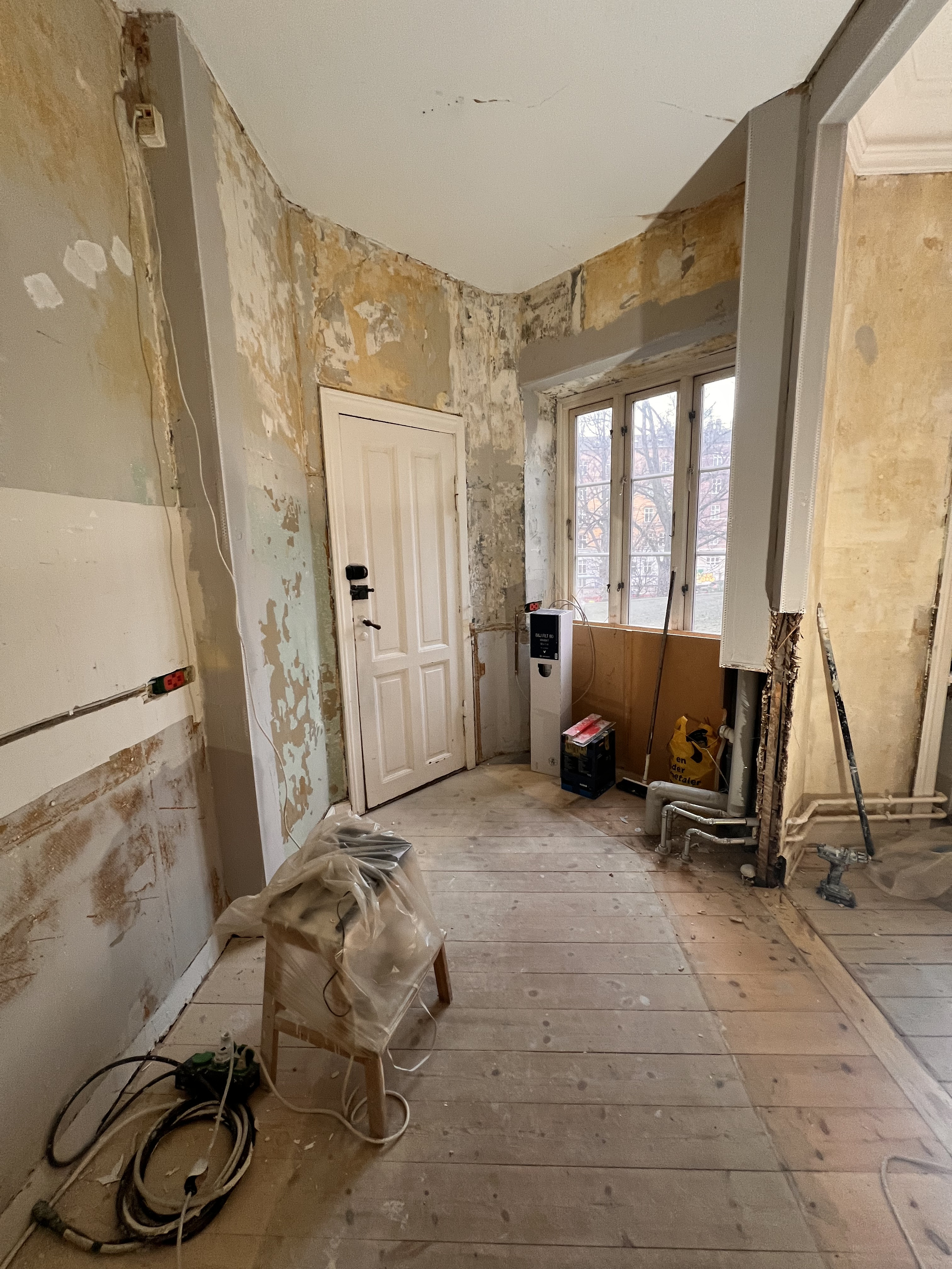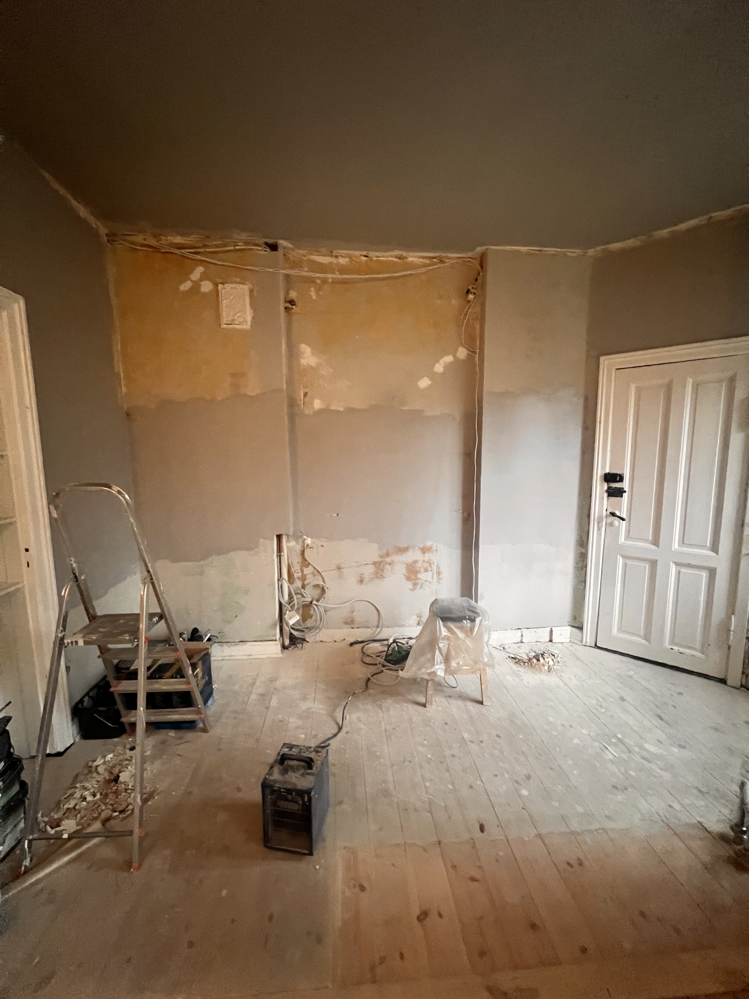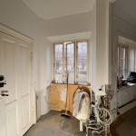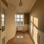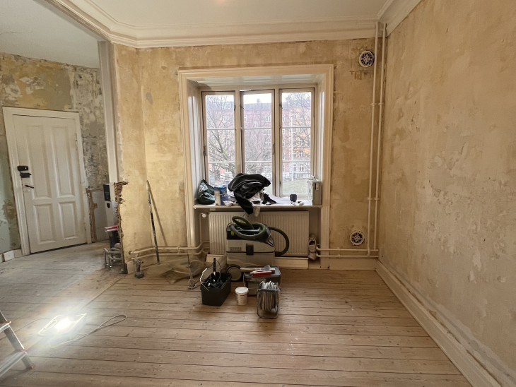 Entre/gang og stue var med gammelt savsmuldstapet og mange lag maling på paneler og vindueskarm. Jeg tror aldrig det gamle tapet har fjernet siden bygningen blev opført i 1955. Nu fuldstændig renoveret og helt fantastisk at se. Meget fin service og arbejdet lavet indenfor tidsrammen.
