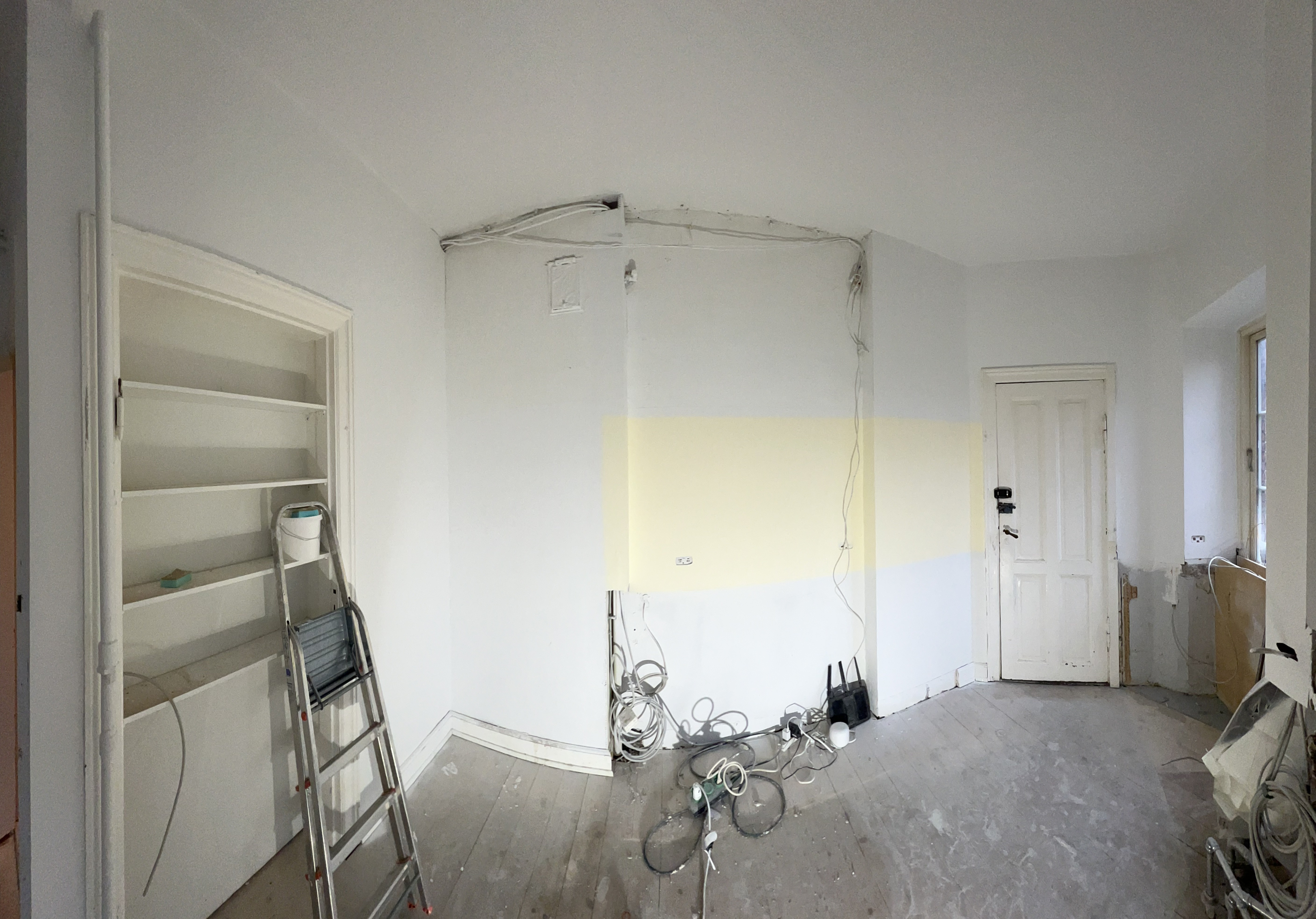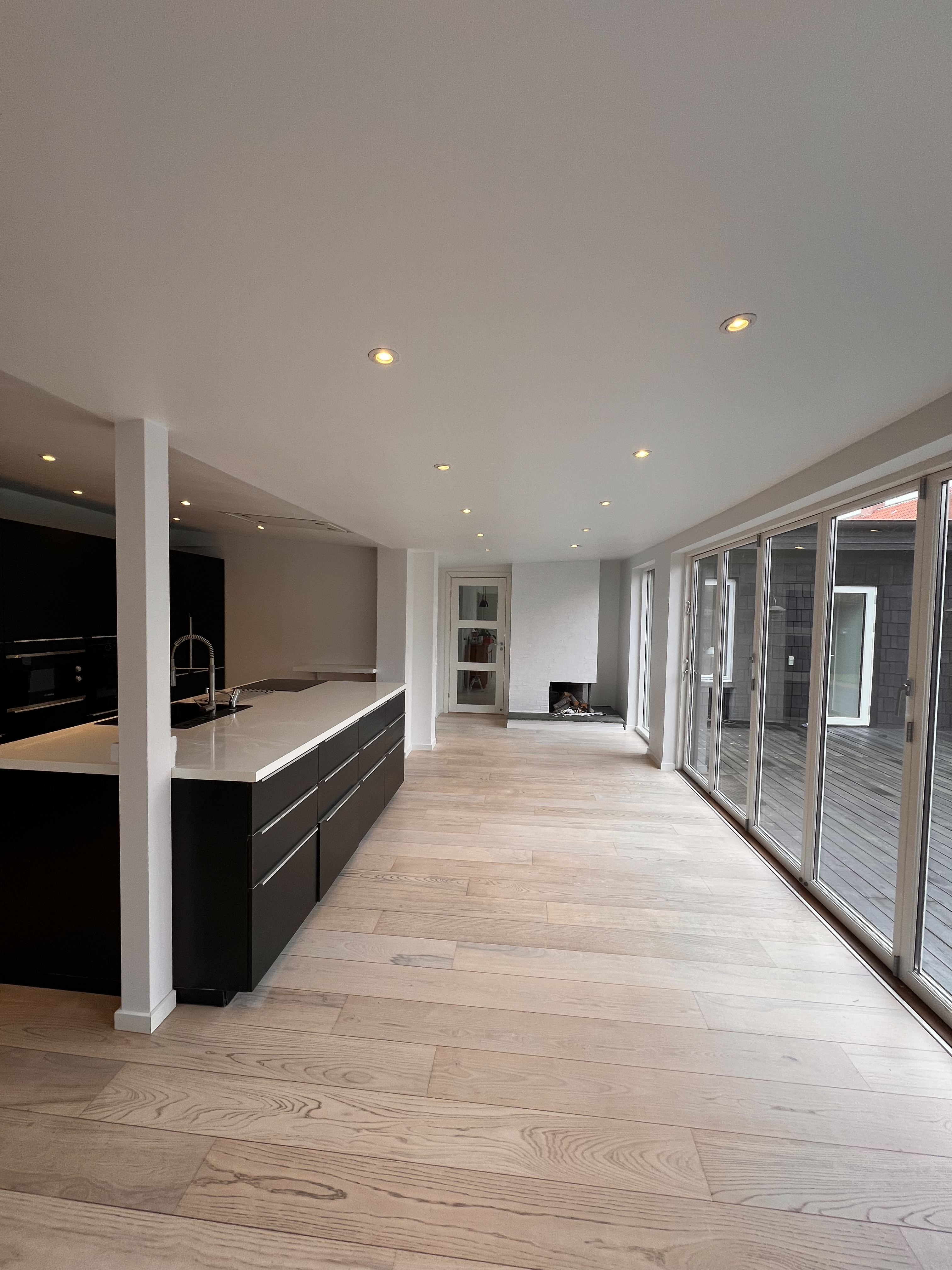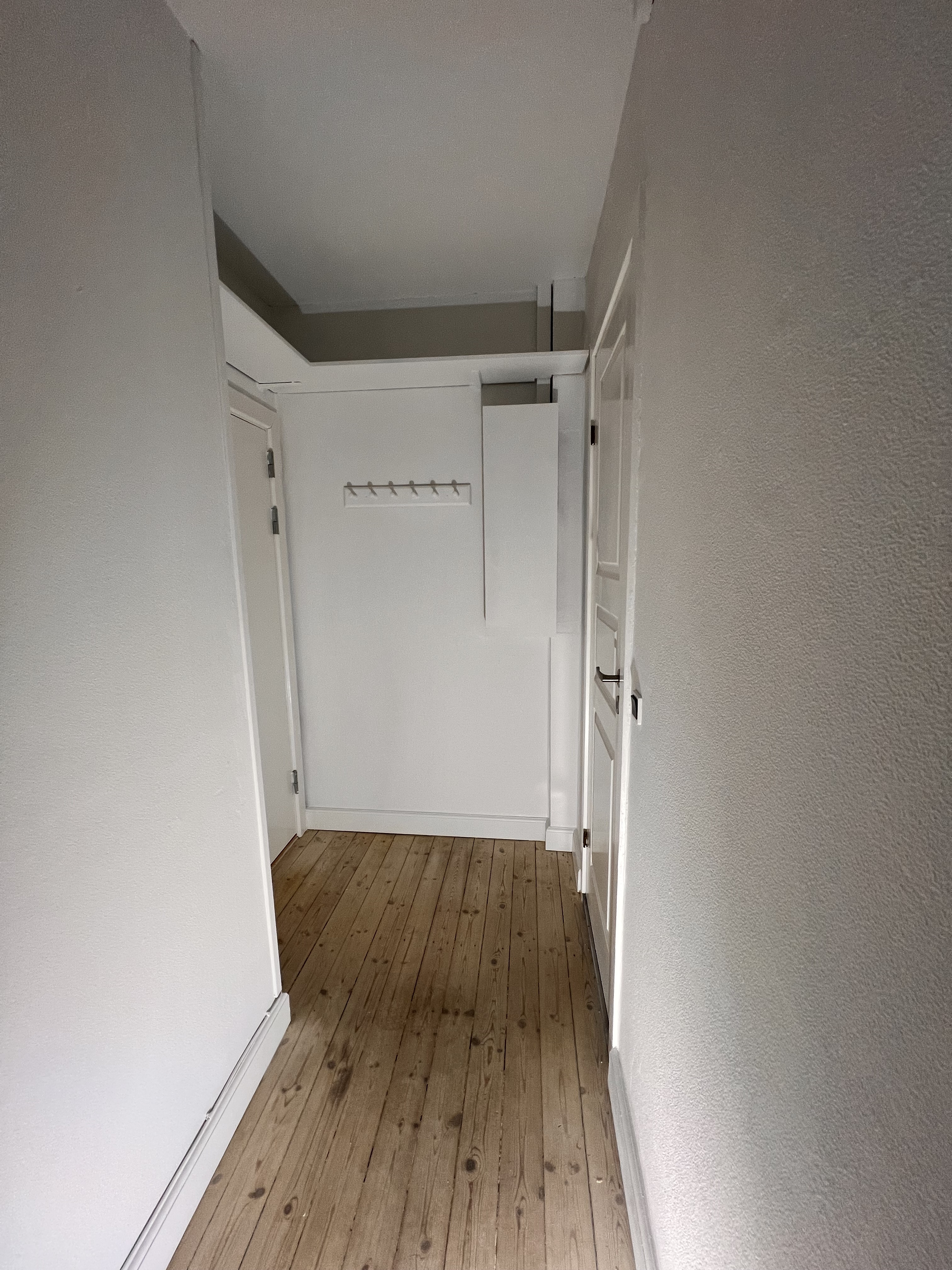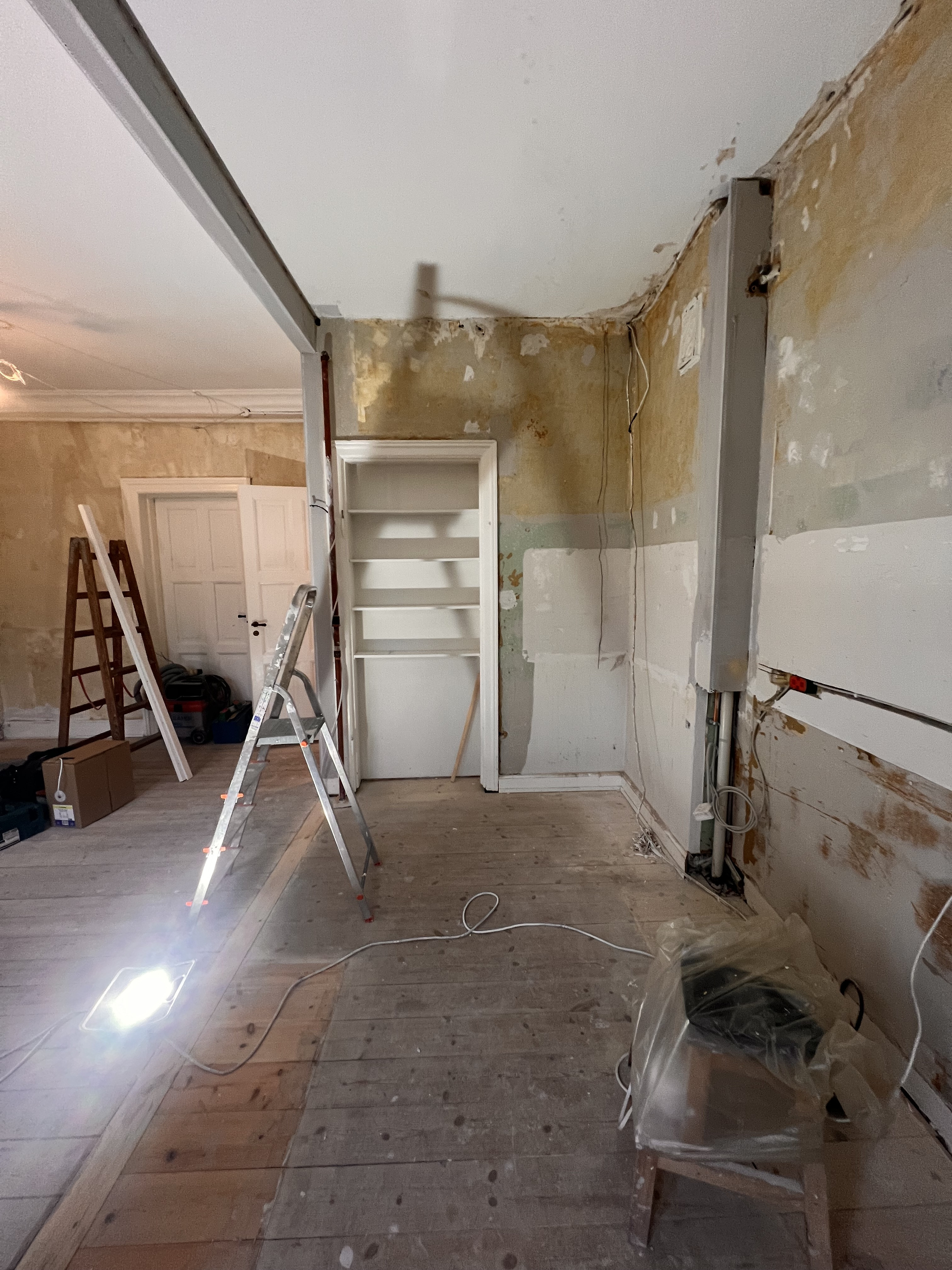 Entre/gang og stue var med gammelt savsmuldstapet og mange lag maling på paneler og vindueskarm. Jeg tror aldrig det gamle tapet har fjernet siden bygningen blev opført i 1955. Nu fuldstændig renoveret og helt fantastisk at se. Meget fin service og arbejdet lavet indenfor tidsrammen.