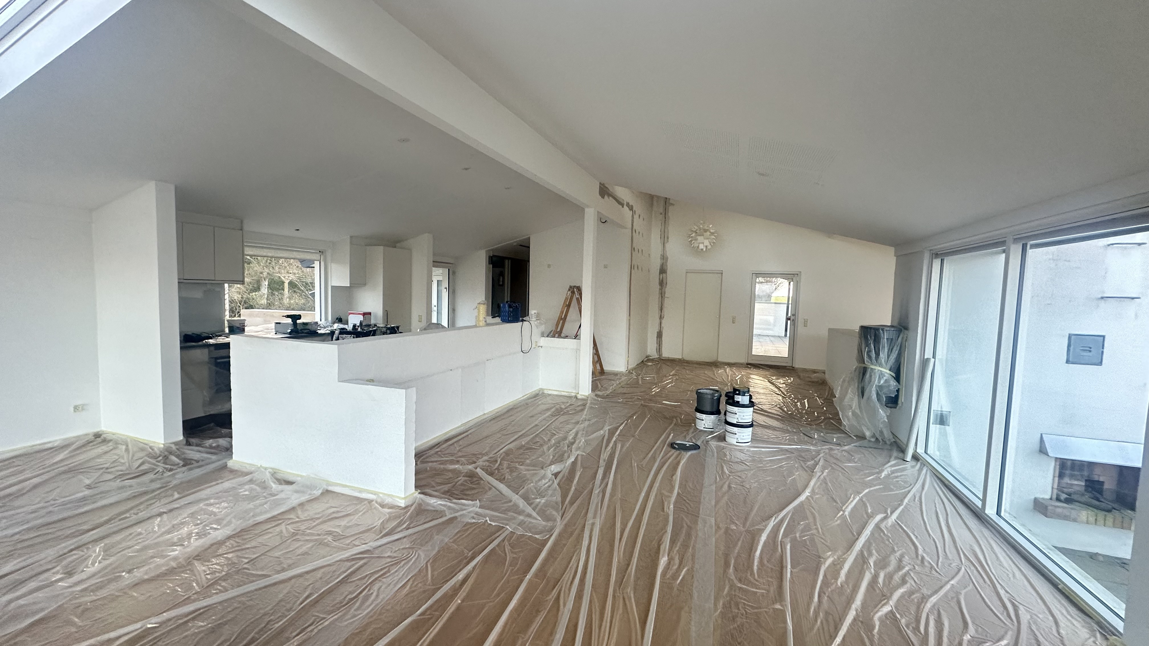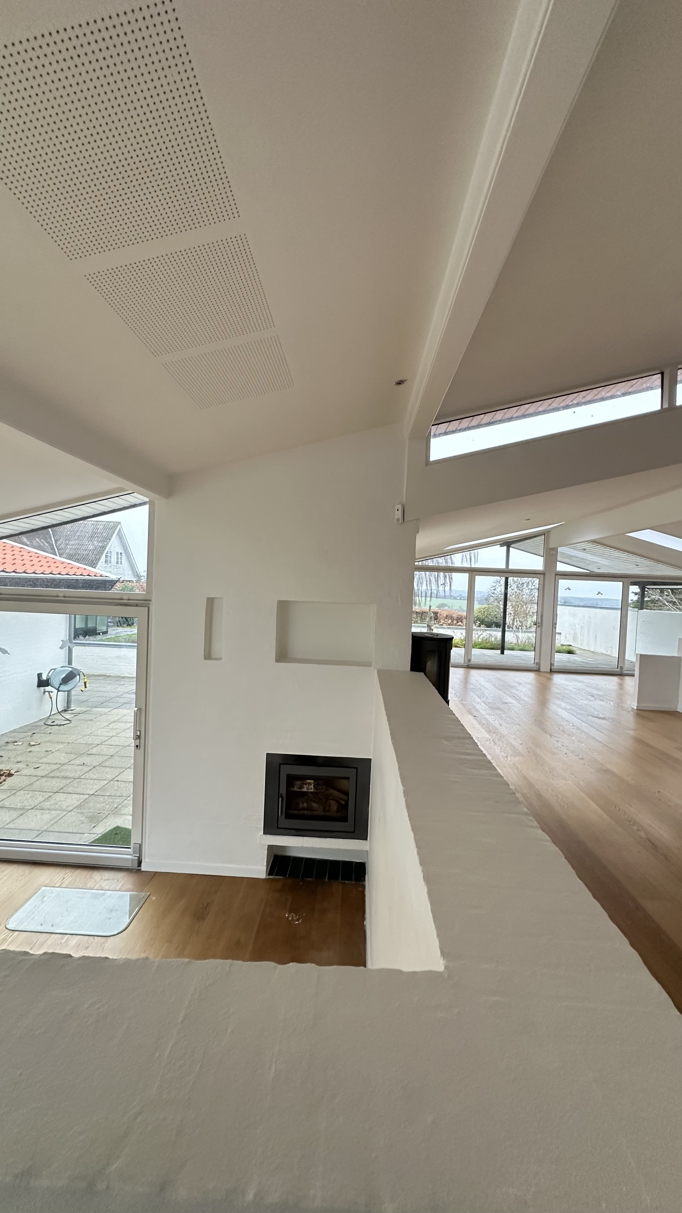 Vi har renoveret hele vores første sal, hvor Martin og Yasmin har fuldspartlet og malet. Det indbefatter, 5 værelser, badeværelser og trappe + trappeopgang.