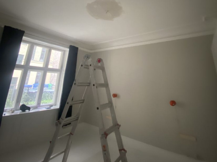 Maling af loft og vægge og det er pænt lavet