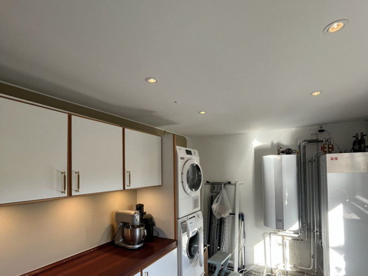 Det er lige præcis sådan noget, der gør det hele værd — at kunne redde dagen, når andre har svigtet Lærke rykkede ud med penslen og leverede et bryggers, der står knivskarpt fra væg til loft