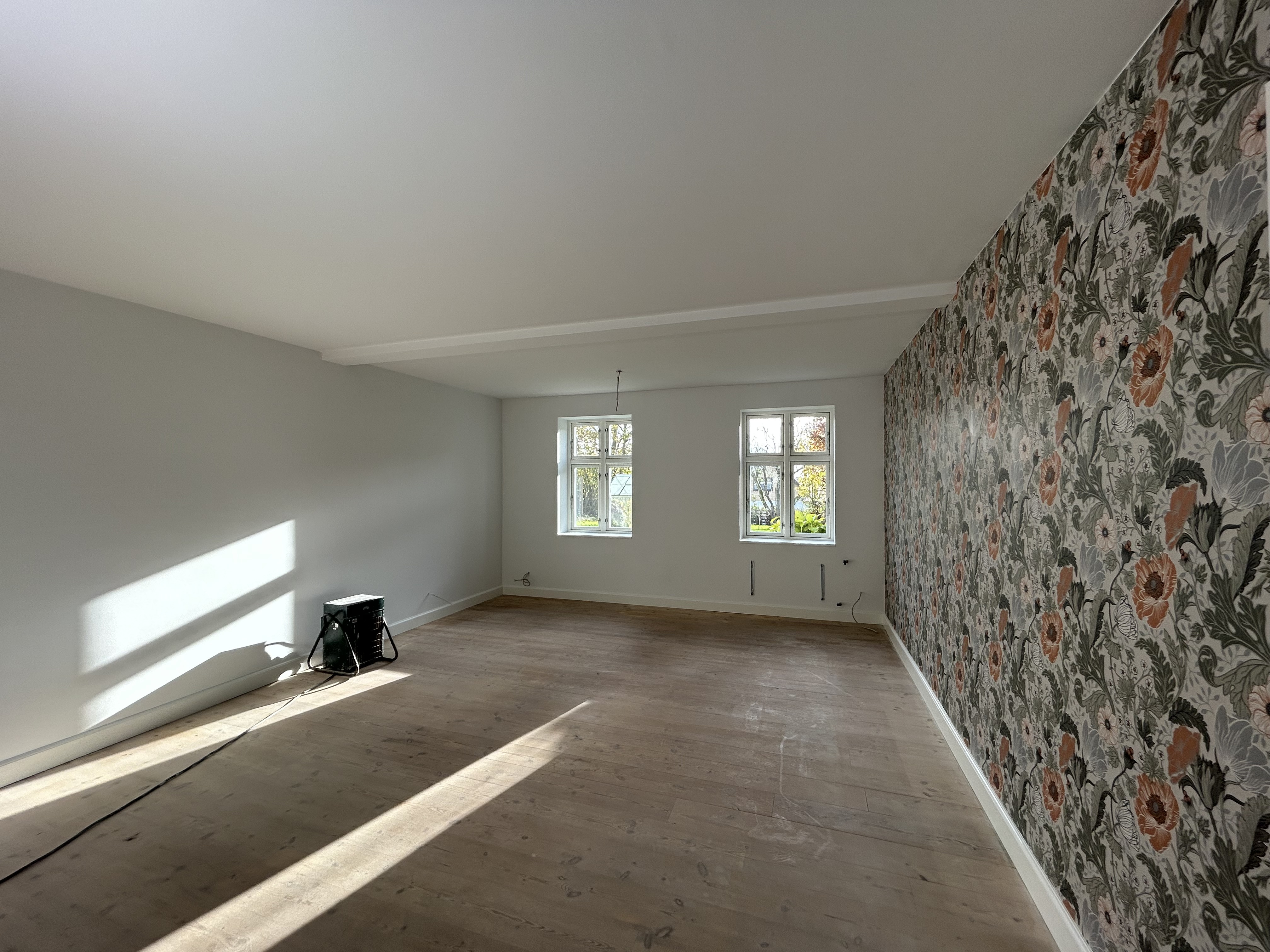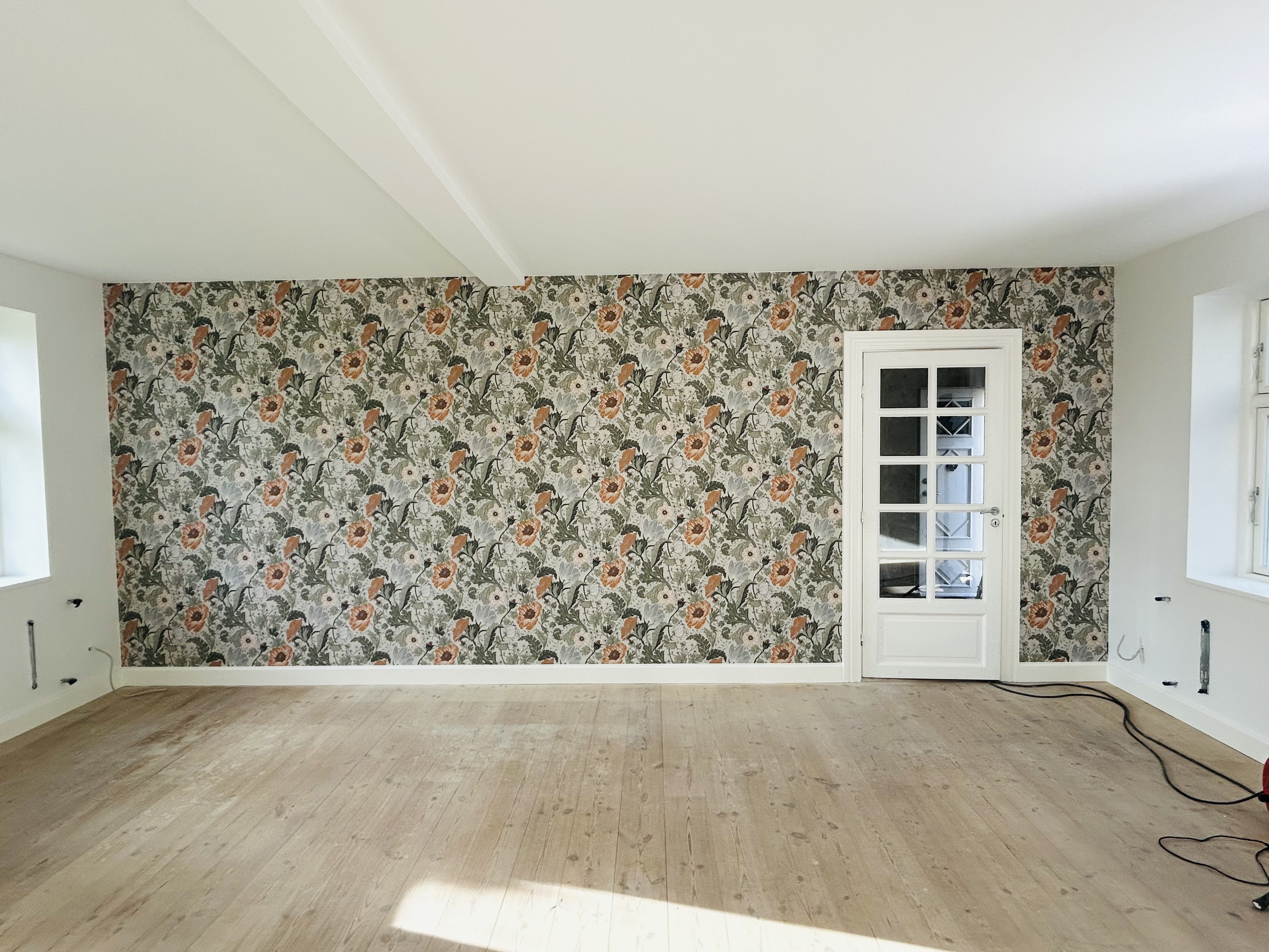 Efter en vandskade blev hele stueetagen næsten ryddet så alt skulle males vi valgte så at male 1 sal også , og da vi så var i gang valgte vi også at få malet alt træværk og vinduer udvendigt