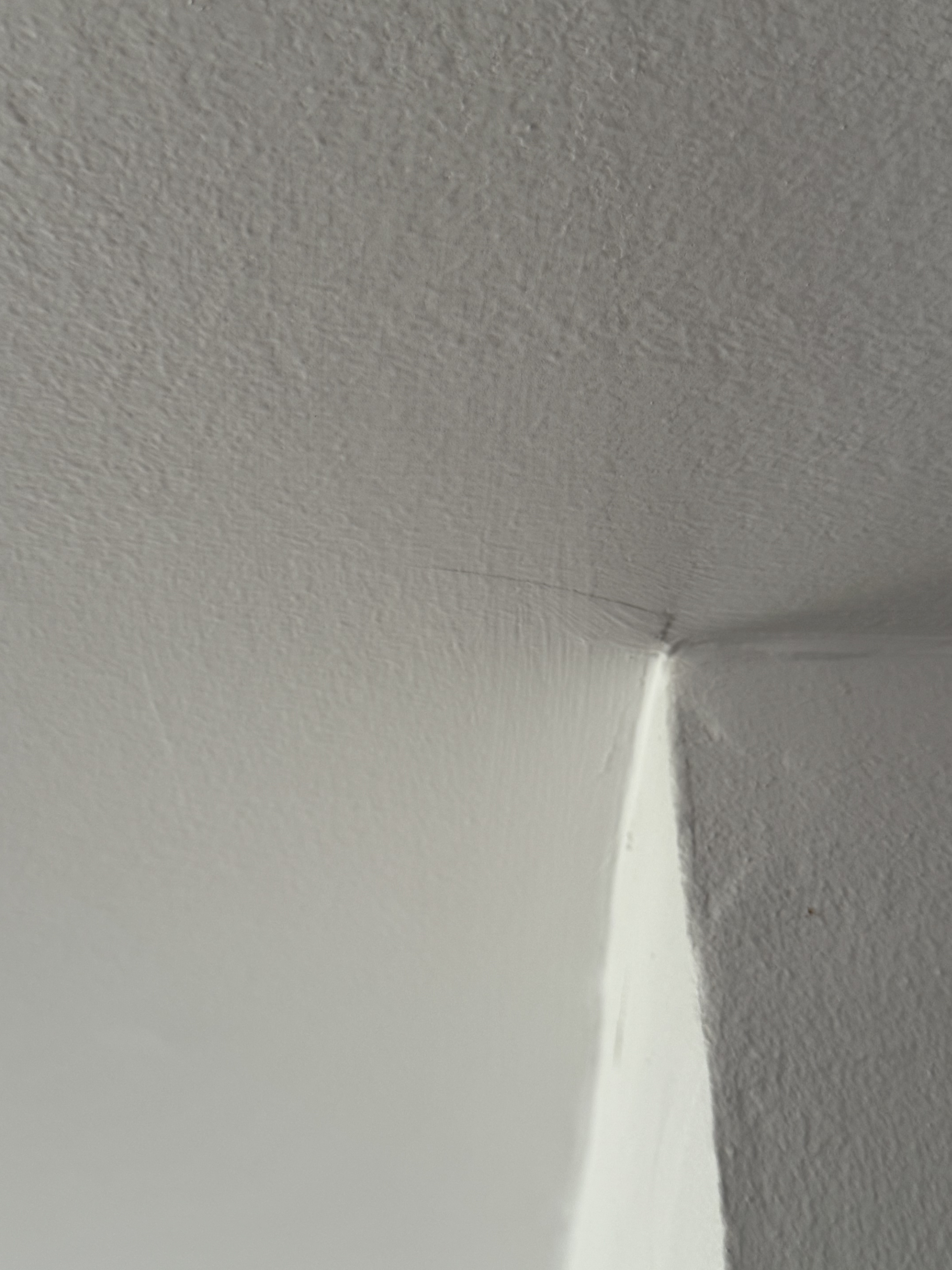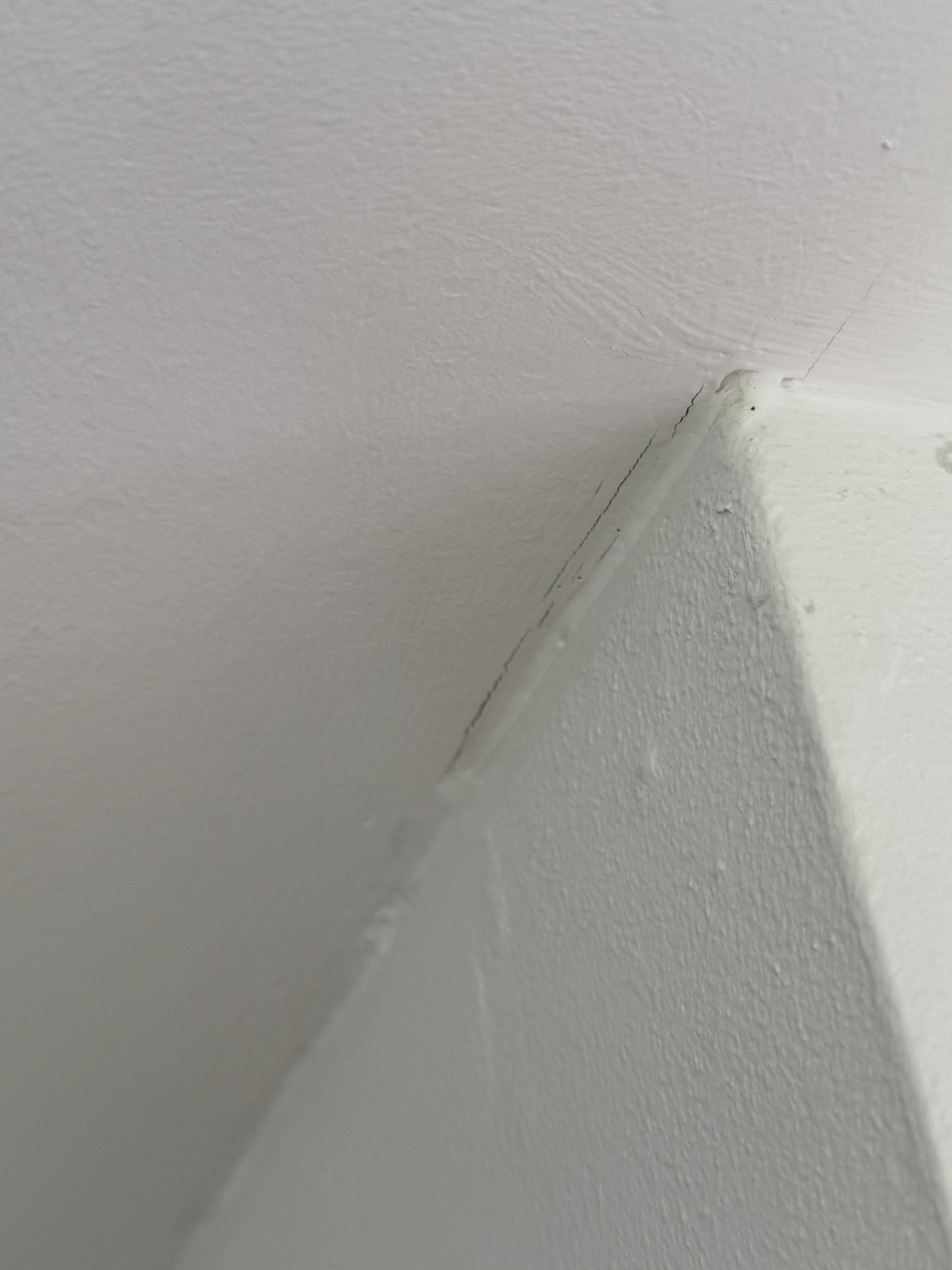 Udover det malede han også vores vægge, og dem havde han spildt spartel på mange steder som han ikke fjernede først. Vi har efterfølgende måtte skrabe rigtigt mange overmalede spartelrester af væggene med en hobbykniv og pletmale igen alle de steder for at få det pænt og jævnt. Der var også rigtigt mange løbere, som vi ligeledes måtte skrabe af og genmale.