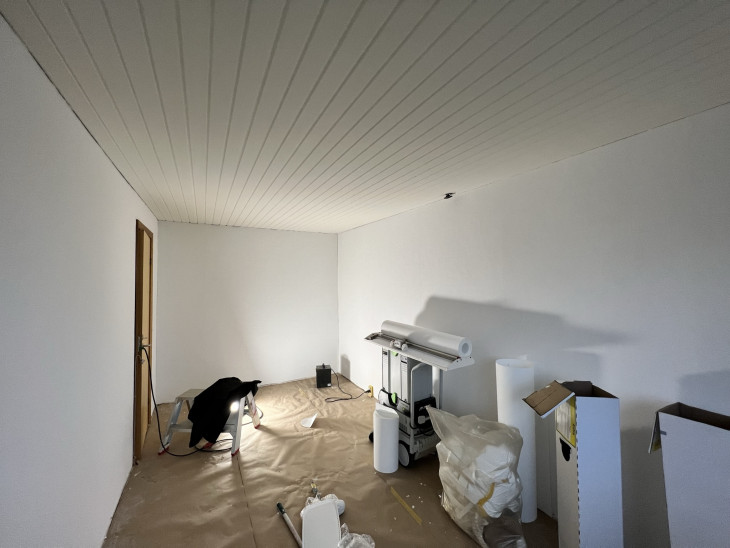 Vi har hver dag nydt det fine malerarbejde overalt, men vidste at der ventede en slutspurt også med træværk for at blive helt færdige indvendigt. Da vi rakte ud for nogle uger siden, lød første melding om tid til opgaven i marts. Men Michael er altid positiv i kommunikation og konstruktiv i forhold til, hvad der kan lade sig gøre. Så da der opstod en åbning her i starten af december, blev vi prioriteret: Drønhårdt arbejde fra morgenstunden mandag til fredag - og nu er arbejdet færdigt i god tid før jul!