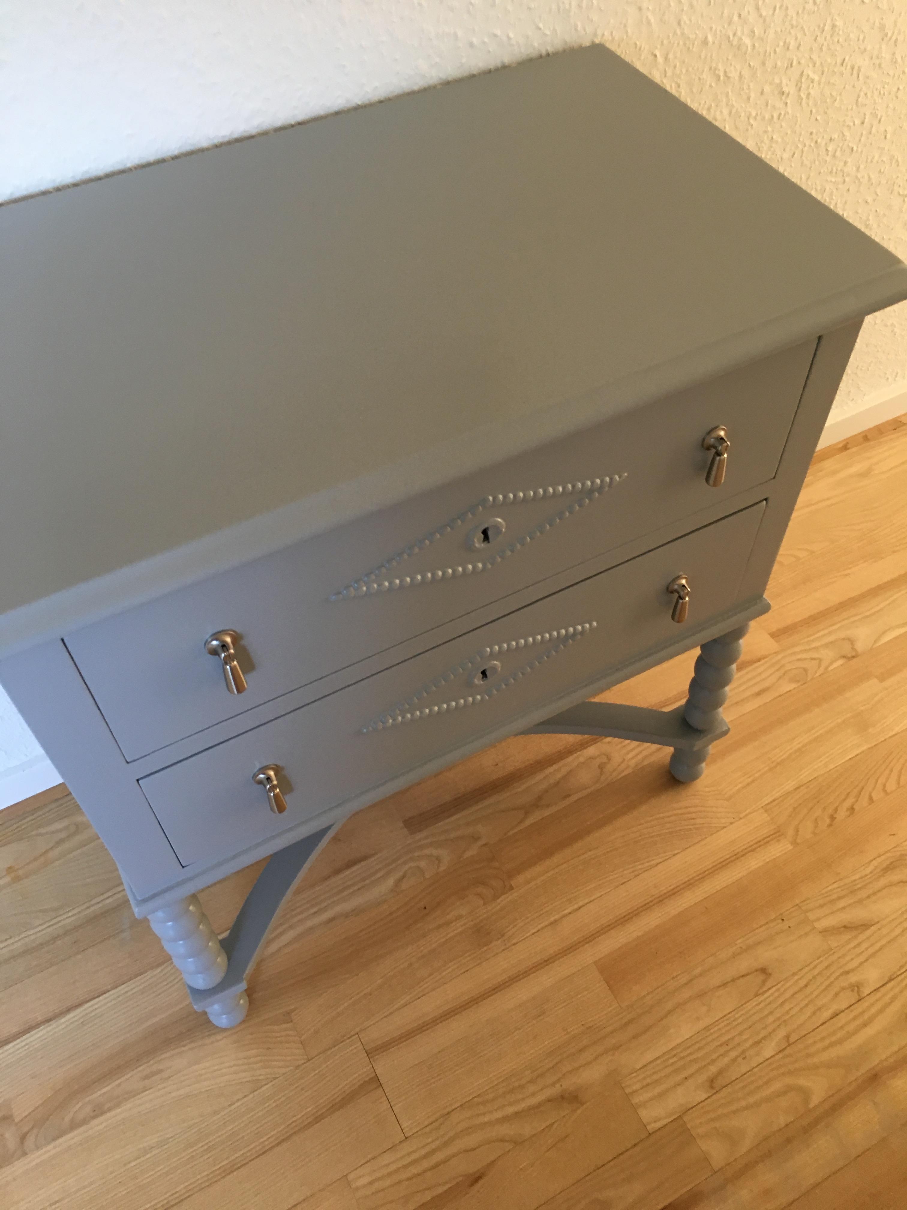 Malet køkkenlåger og kommode.