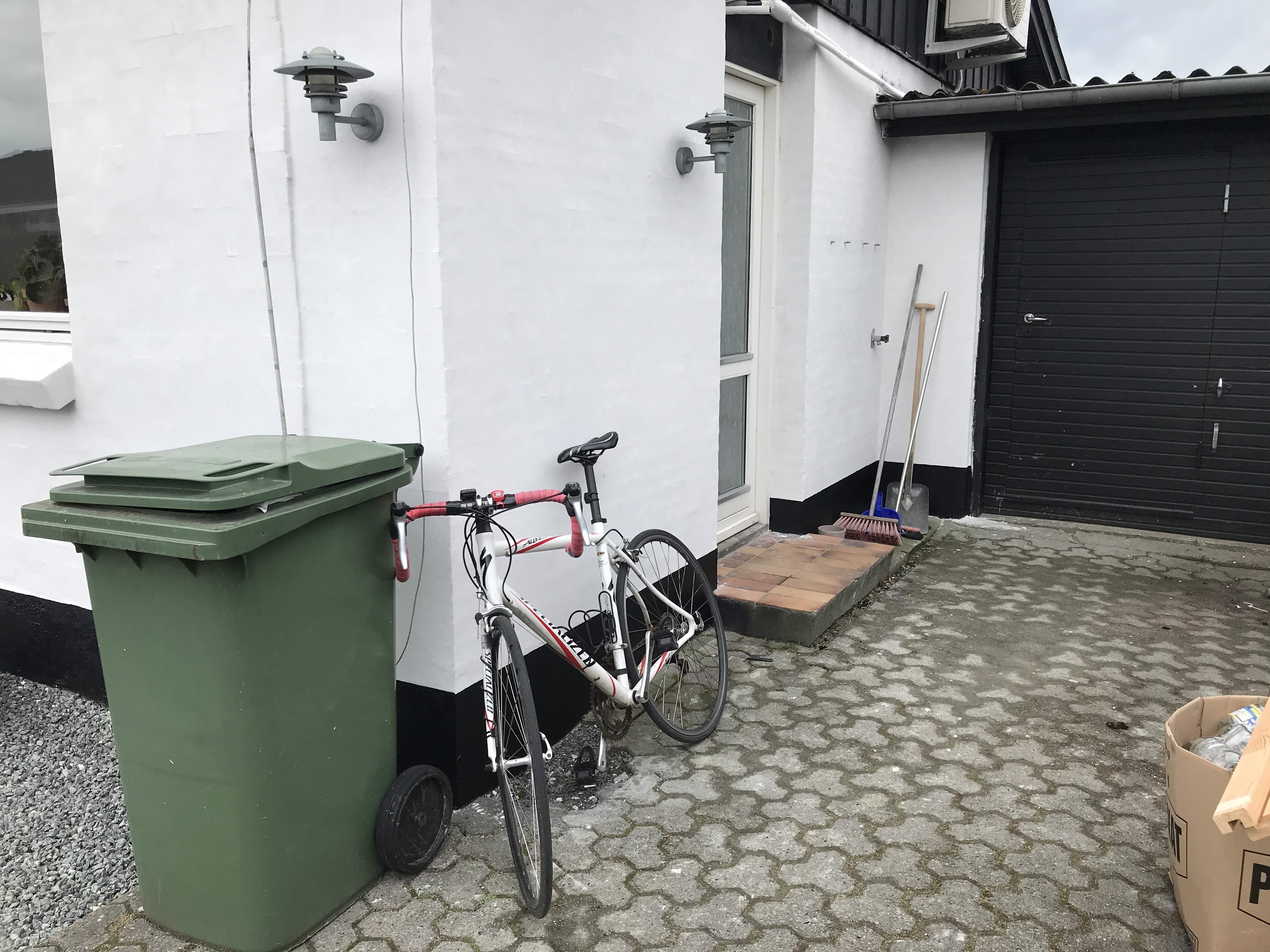 Lukning af dør, støbt gulv, langt klinker, vandskuret hus