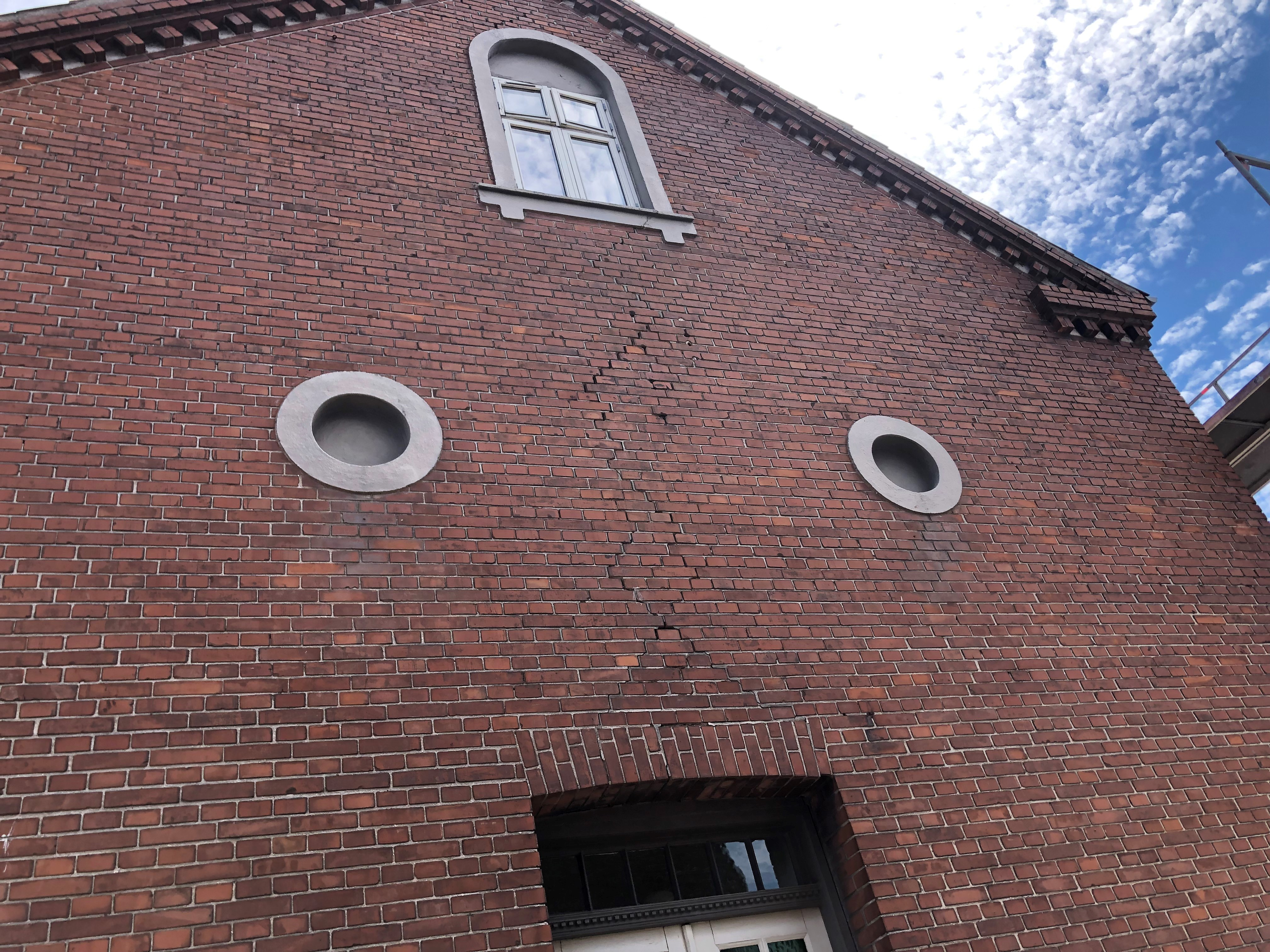 Byens Murer varetog hele entreprisen, inkl. opsætning/nedtagning af stillads, godkendelsen fra Odense Letbane, reparation af sætningskade, etablering af nyt stik, udkradsning af furer, udskiftning af beskadigede sten, og fugning.