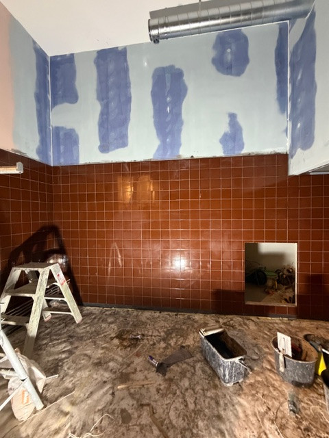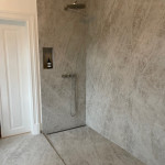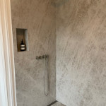 Murerarbejdet; støbning af gulve med rette fald, lukke og pudse vægge, fliser på gulv og vægge - med meget flot finish.