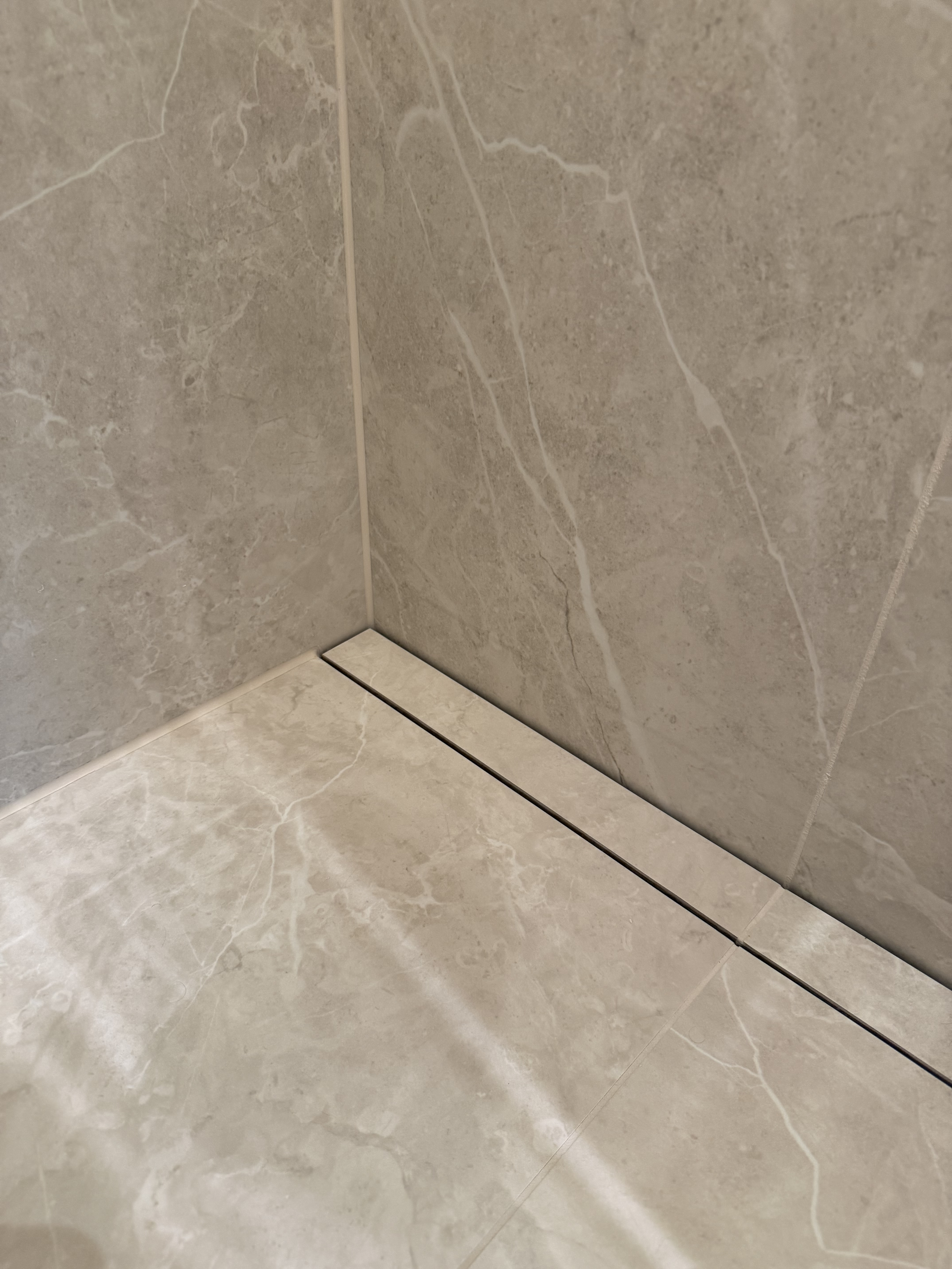 Fliserne ligger nu utrolig smukt med flotte fuger og perfekte smig samlinger. Der er ikke en finger at sætte på det. Intet mindre end perfekt!