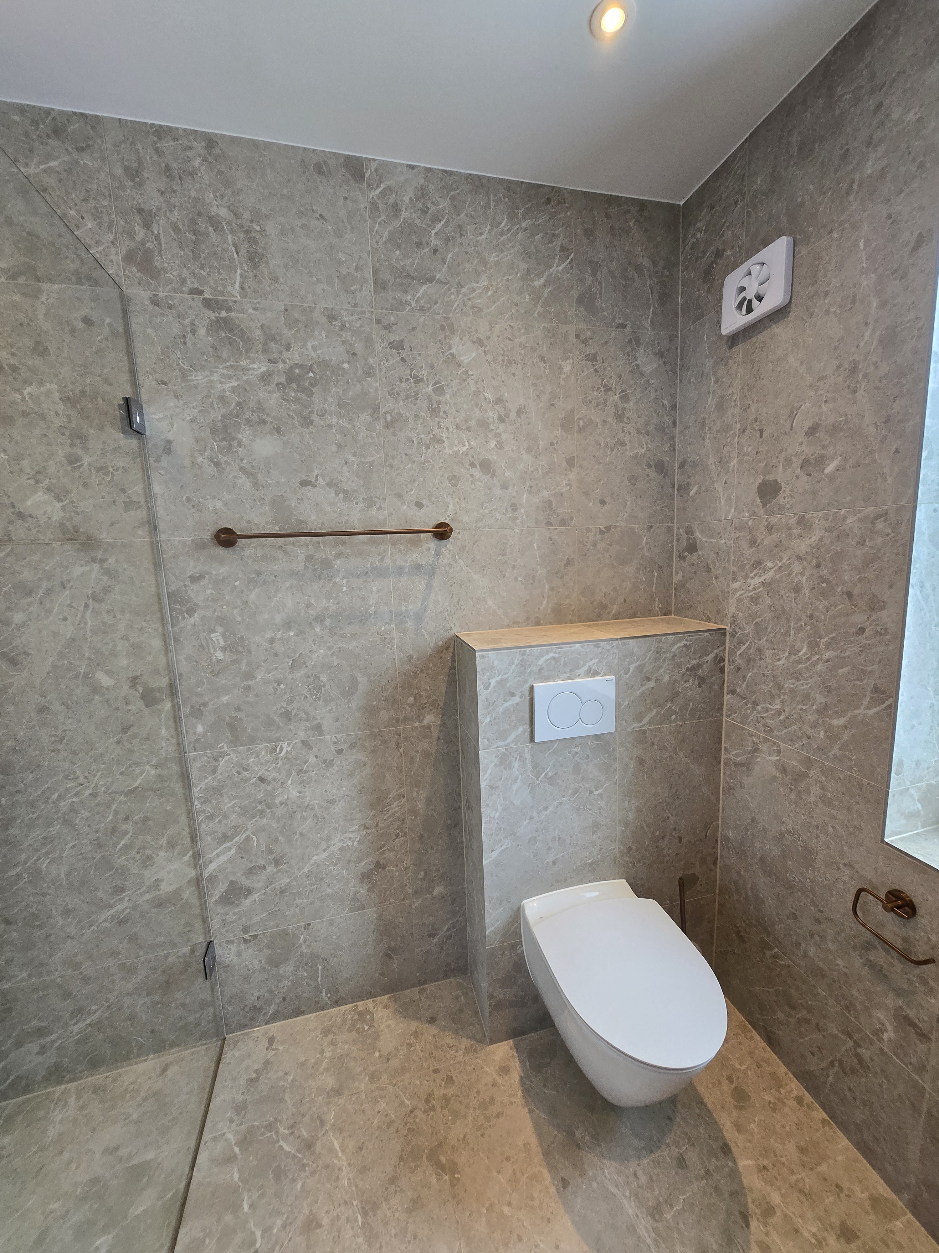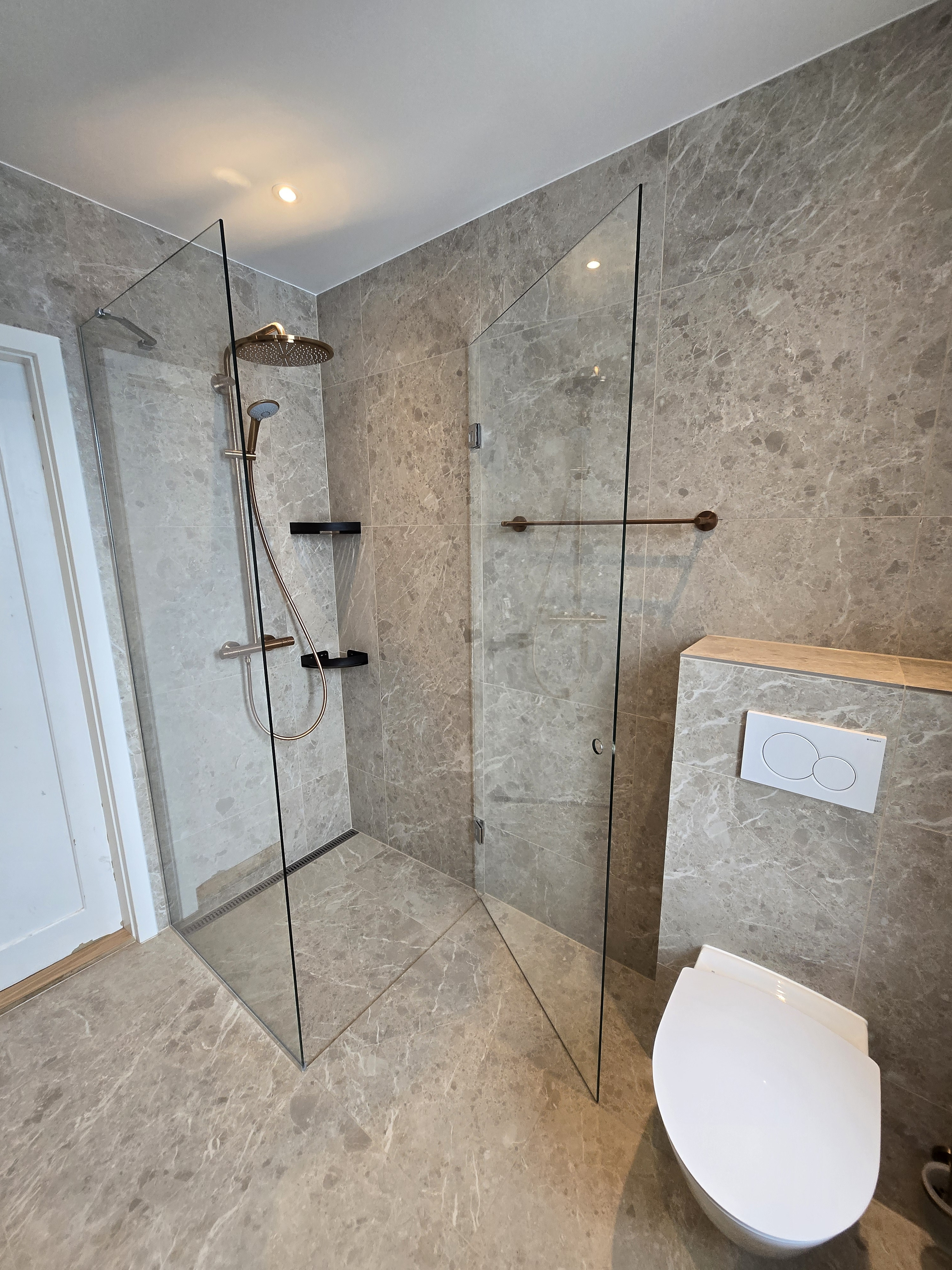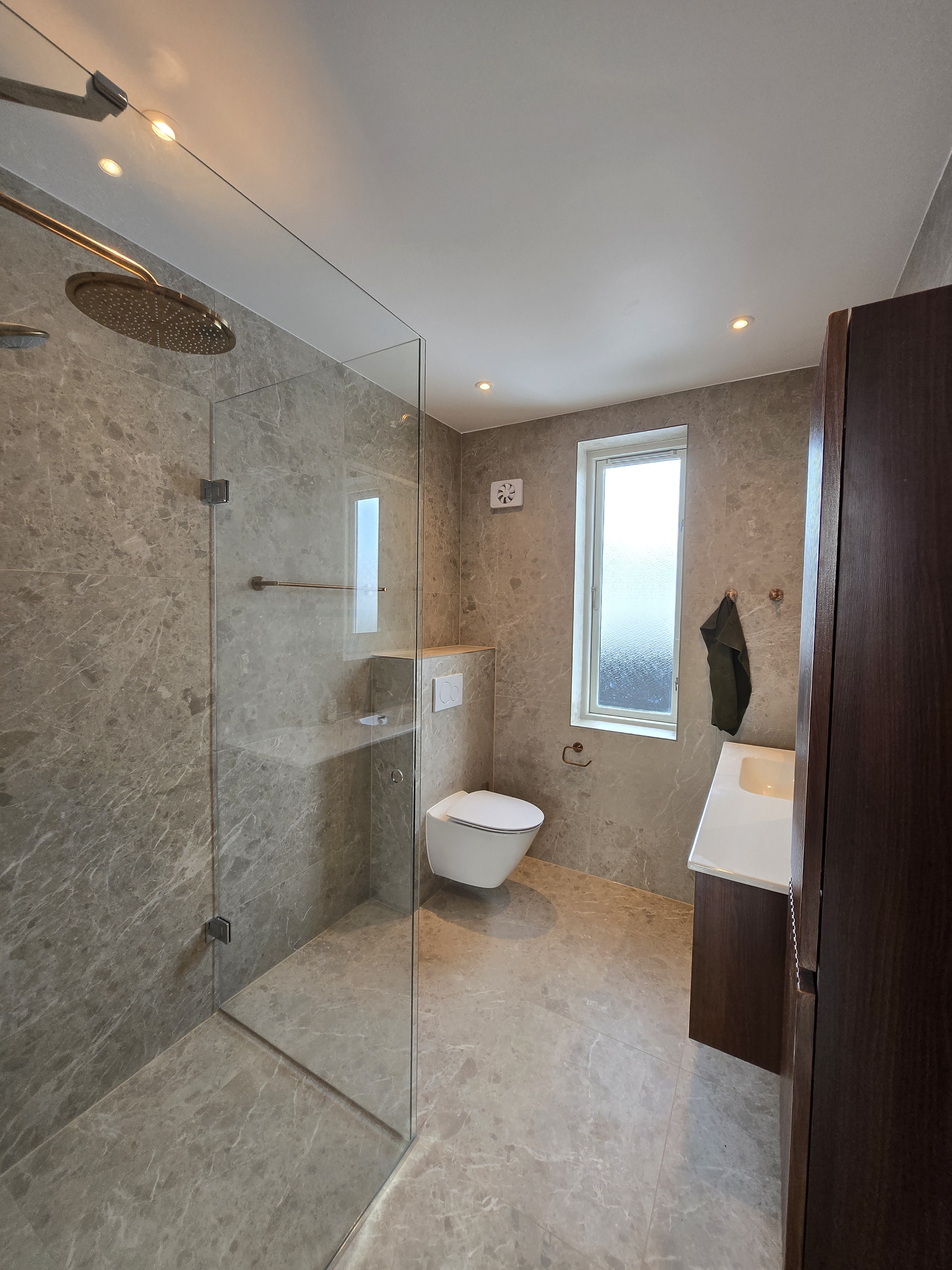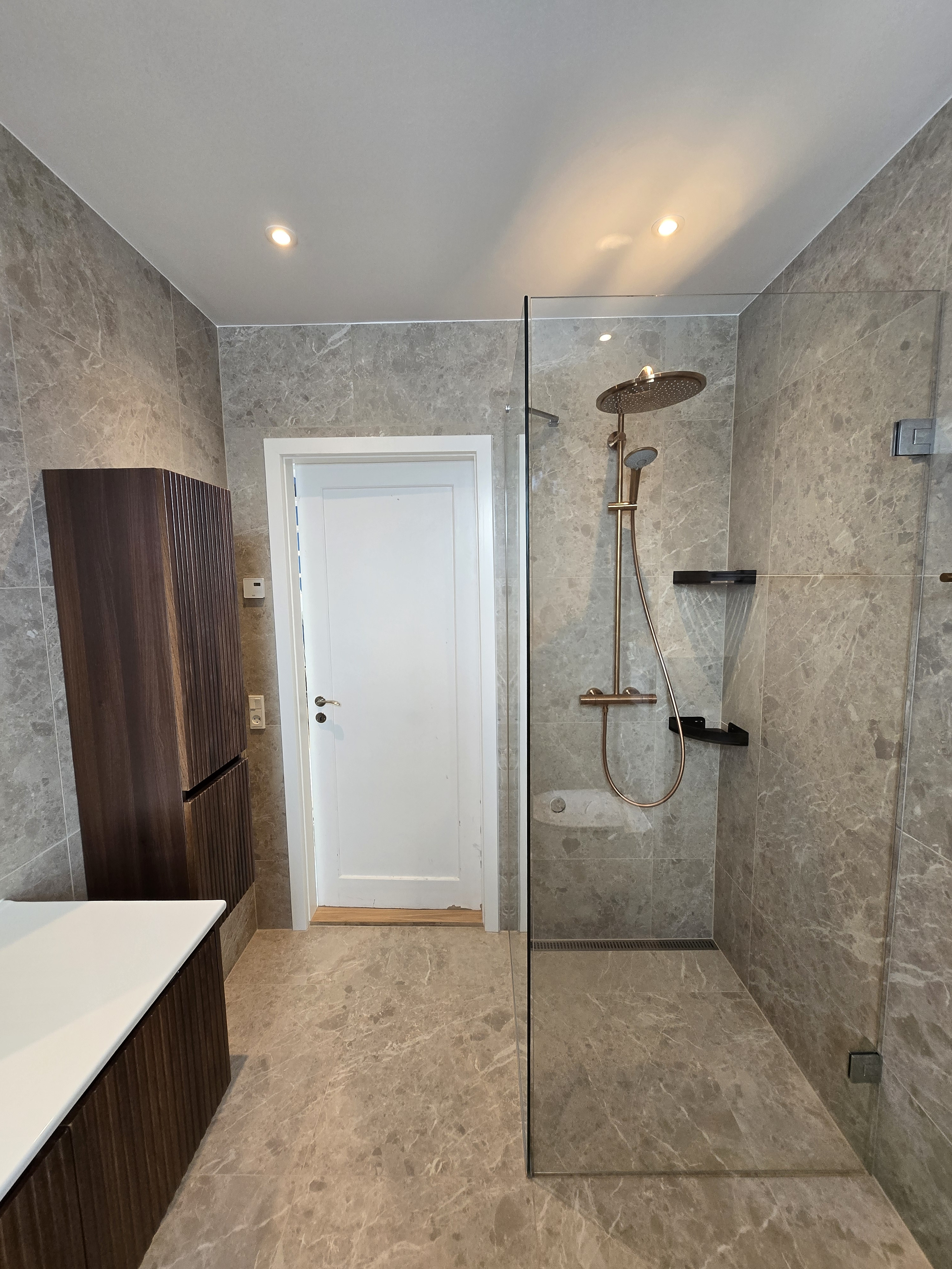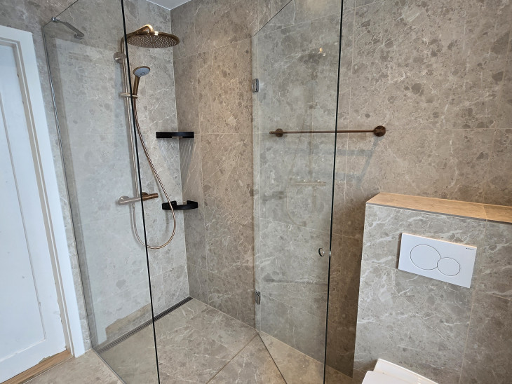 Vandskade i bruseniche er lavet rigtig flot. Vi aftalte at jeg selv skulle finde materialer for at matche det eksisterende bedst muligt og fik god rådgivning. Kommunikationen har været rigtig god hele vejen igennem og Patrick sørgede for at tømrer og fugemand også kom på når de skulle.