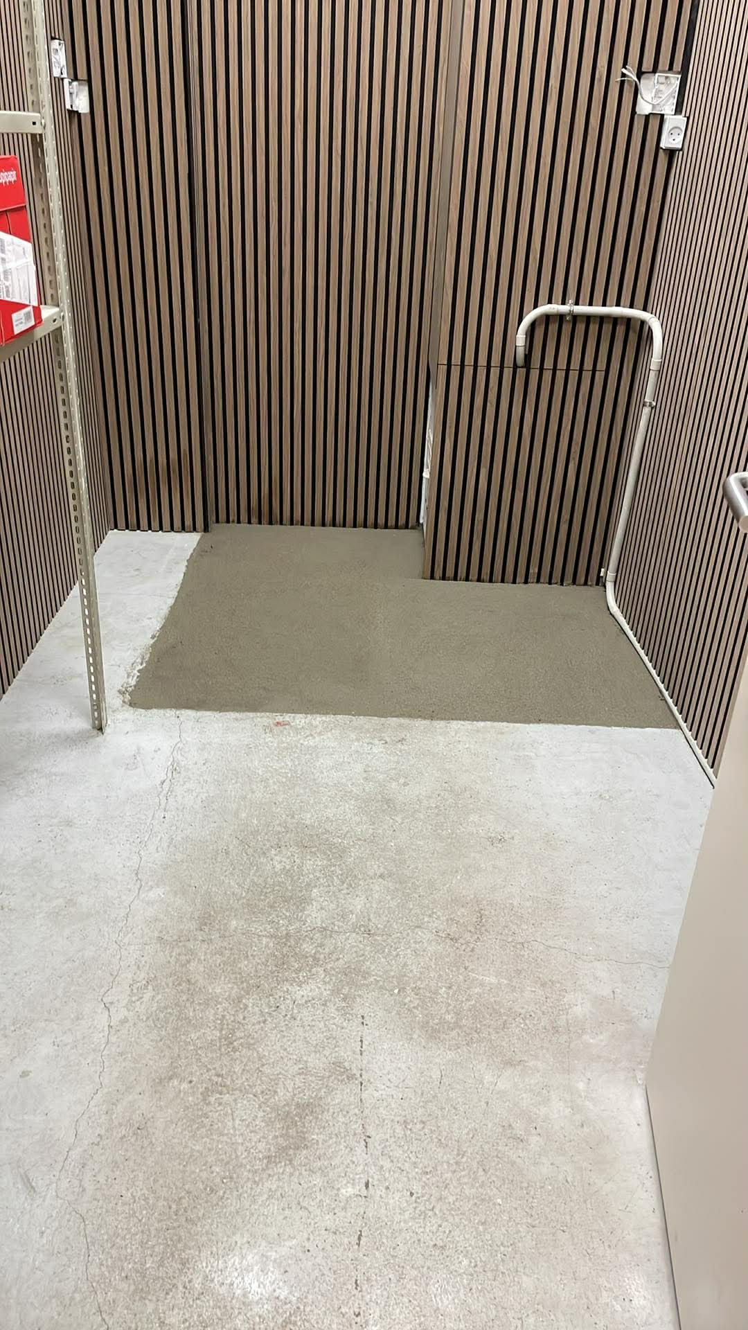 Murerfirmaet KJ har hjulpet med fjernelse af forkert opsætning af bruseniche, fjernet den gamle og opsat ny opkant, så det var muligt at sætte en brusekabine ind.