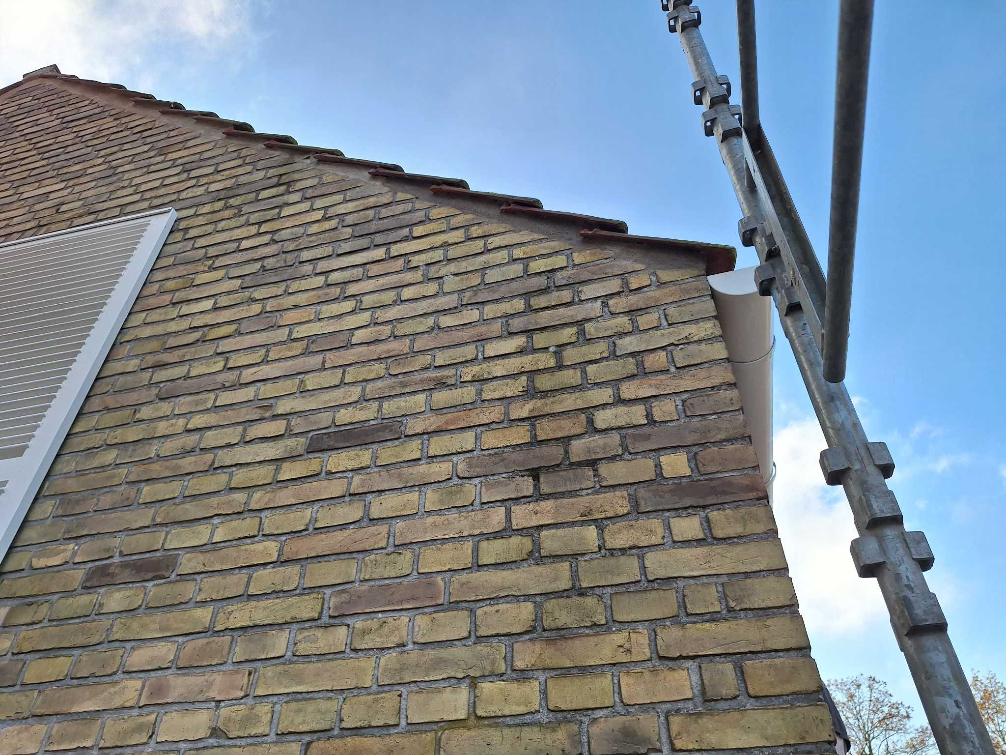 Først vil jeg beklage meget at vi ikke har færdiggjort huller efter stillads er taget ned. Vi ramte desværre ferien og efter ferien opstod der en misforståelse mellem en medarbejder så den aftalte dag i sidste uge 13/8 ikke blev overholdt. Jeg sendte ham derud lørdag i stedet for. Det sidste lag kan påføres i dag og så er der klar til maling.
