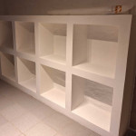 Nyt badeværelse inkl. opmuring af vægge, støbning af gulv, fliser på gulv og vægge i brusekabine, kasse til væghængt toilet.