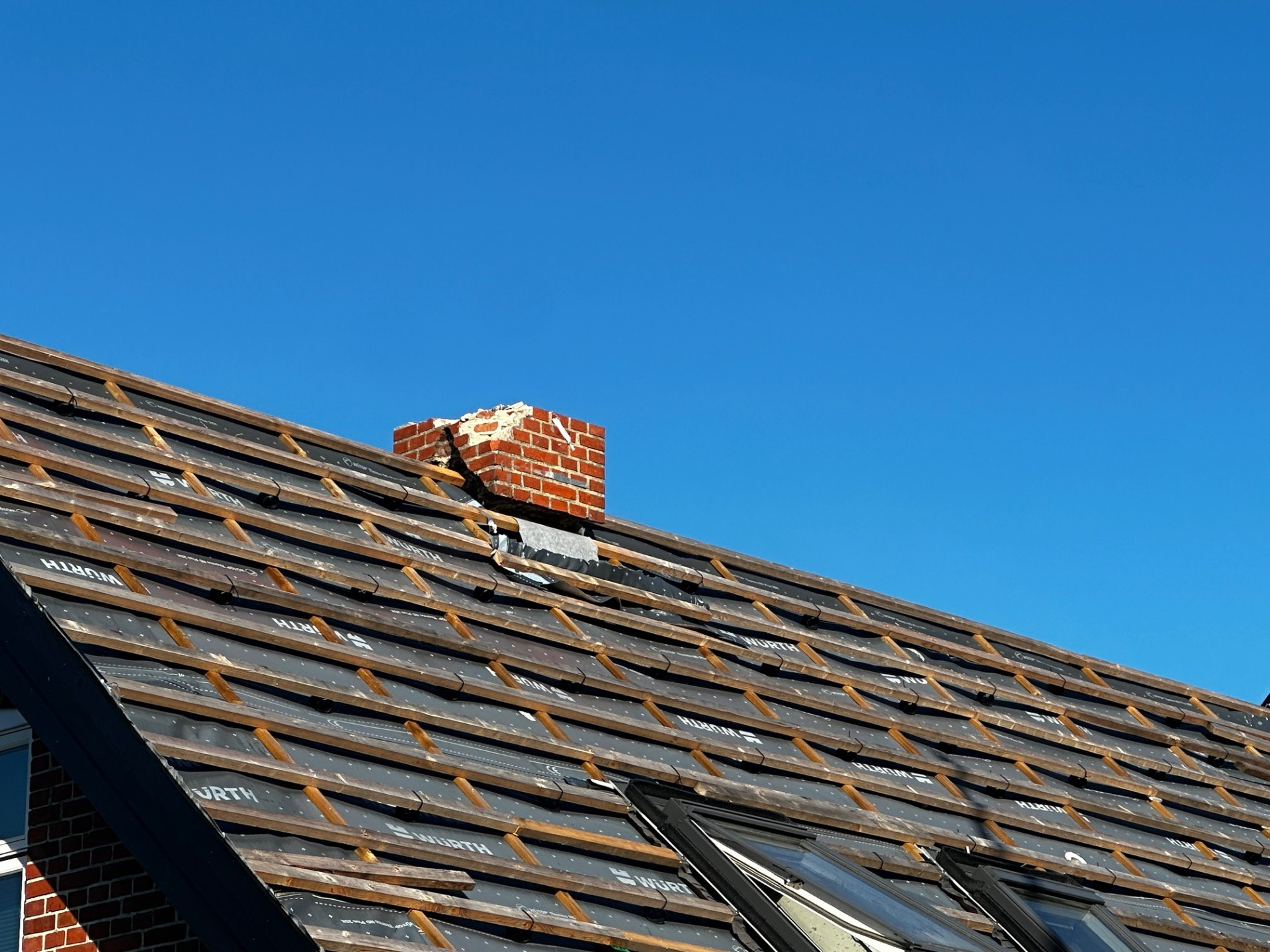 Vi var ude på en opgave, hvor et tag skulle skiftes, da en af medarbejderne desværre kom til at tage den forkerte skorsten ned. Jeg gik mildest talt i panik, da taget skulle stå færdigt inden for ca. én uge, og der var hverken tid eller økonomi til, at både murer, tømrer og blikkenslager skulle være på plads samtidig.