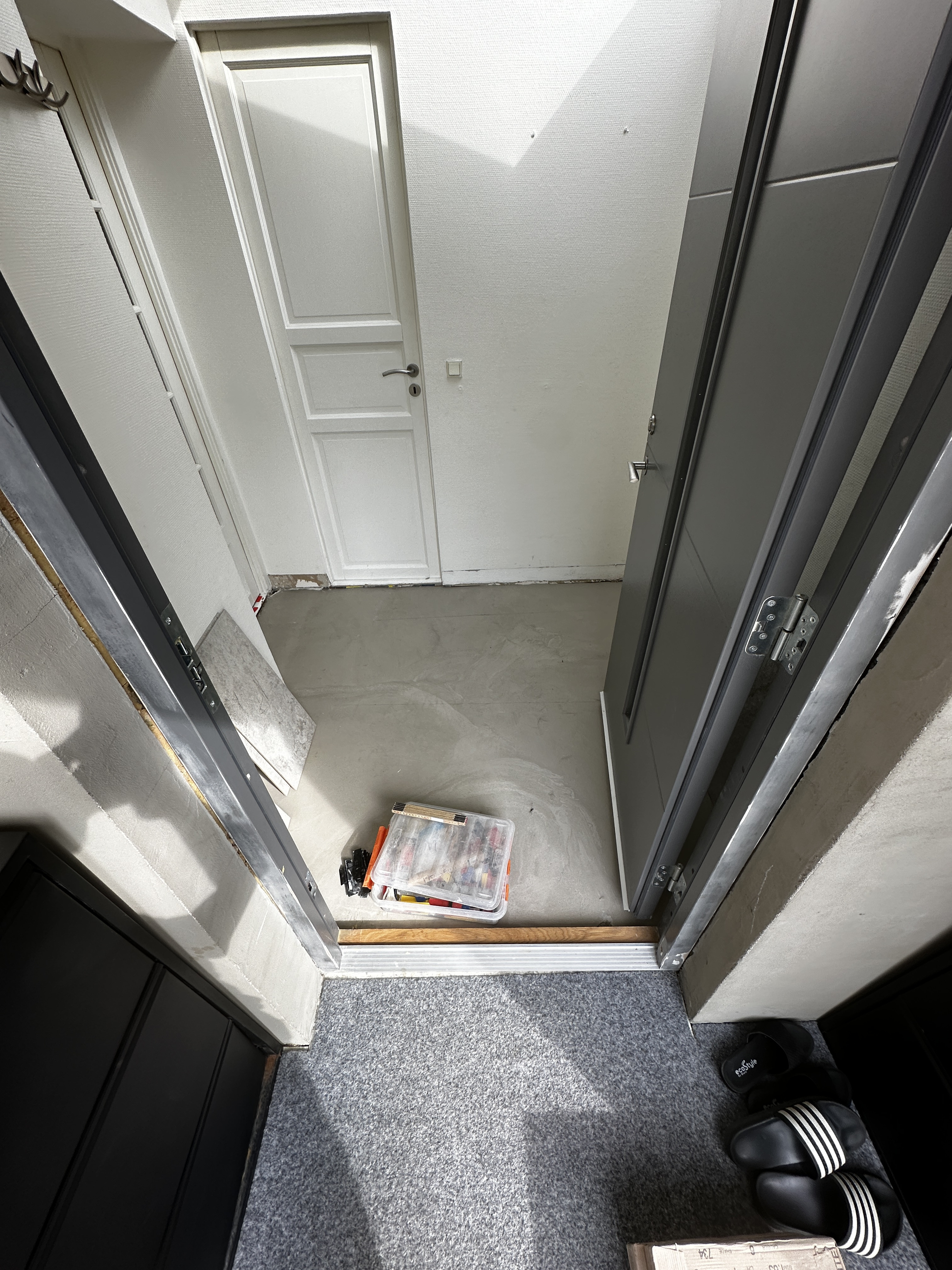 Vi lagde slet ikke mærke til, at de to murersvende, som Murerxpert ApS havde sendt ud, havde støvsuget hele gangen fra øverste sal og hele vejen ned til hoveddøren.