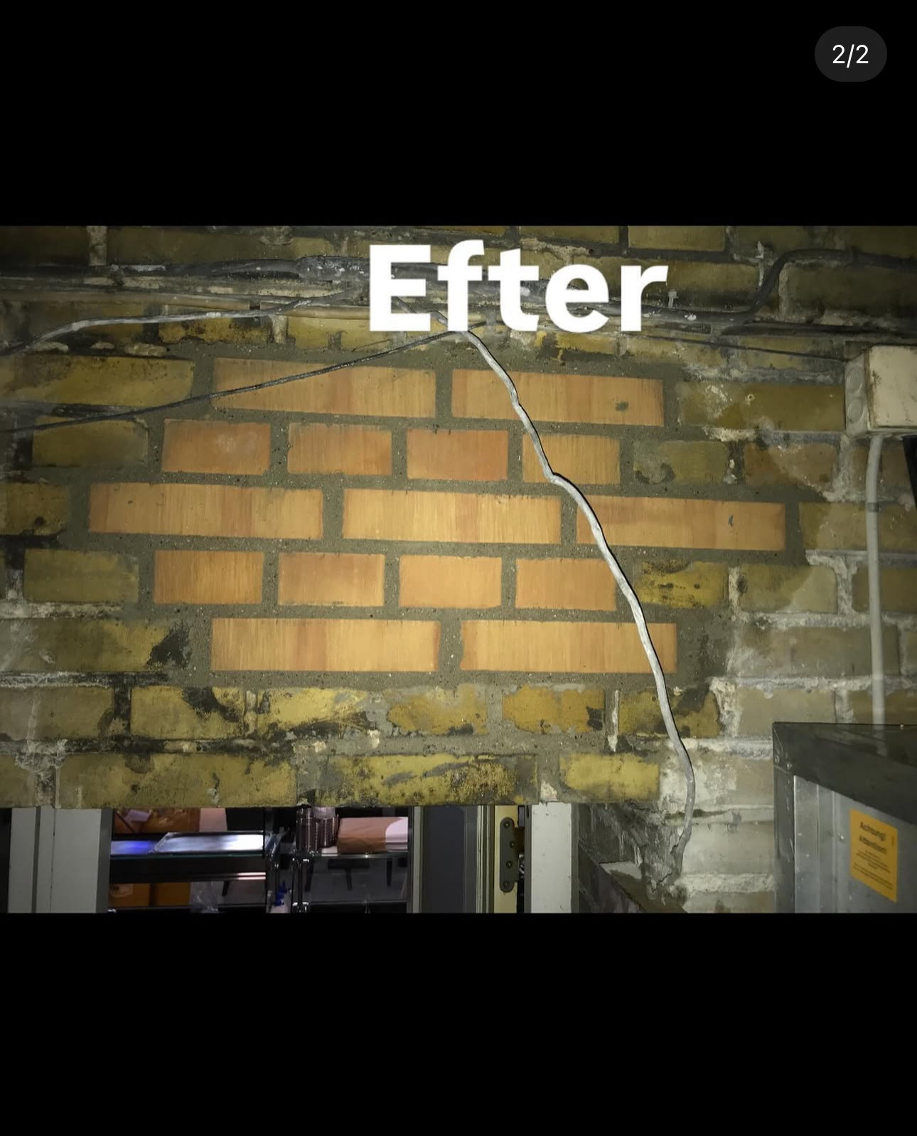 Jeg fik efterfølgende klager fra ejendommen, som min restaurant ligger under, og jeg fik kun to dage til at finde en murer, ellers ville der komme dagsbøder på 950 kr. Jeg kontaktede MurerXpert, og de rykkede hurtigt ud.