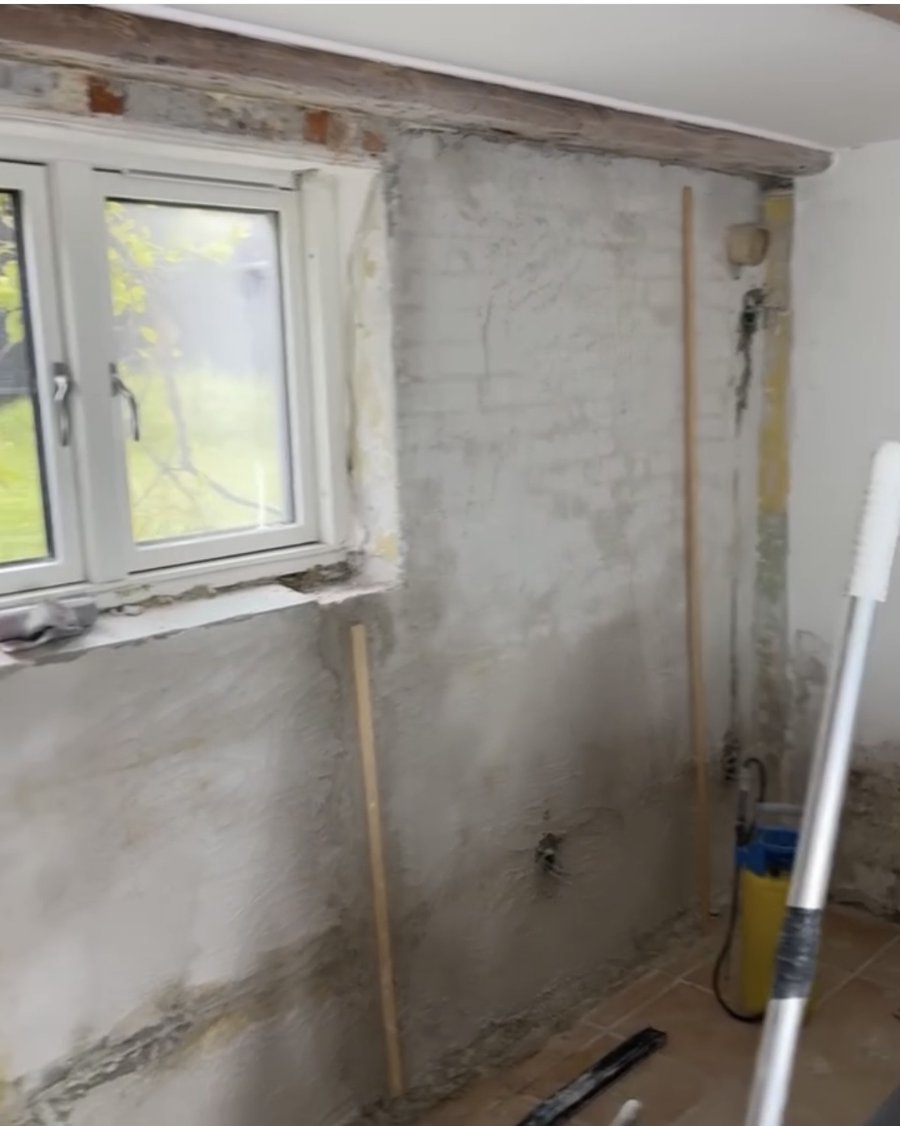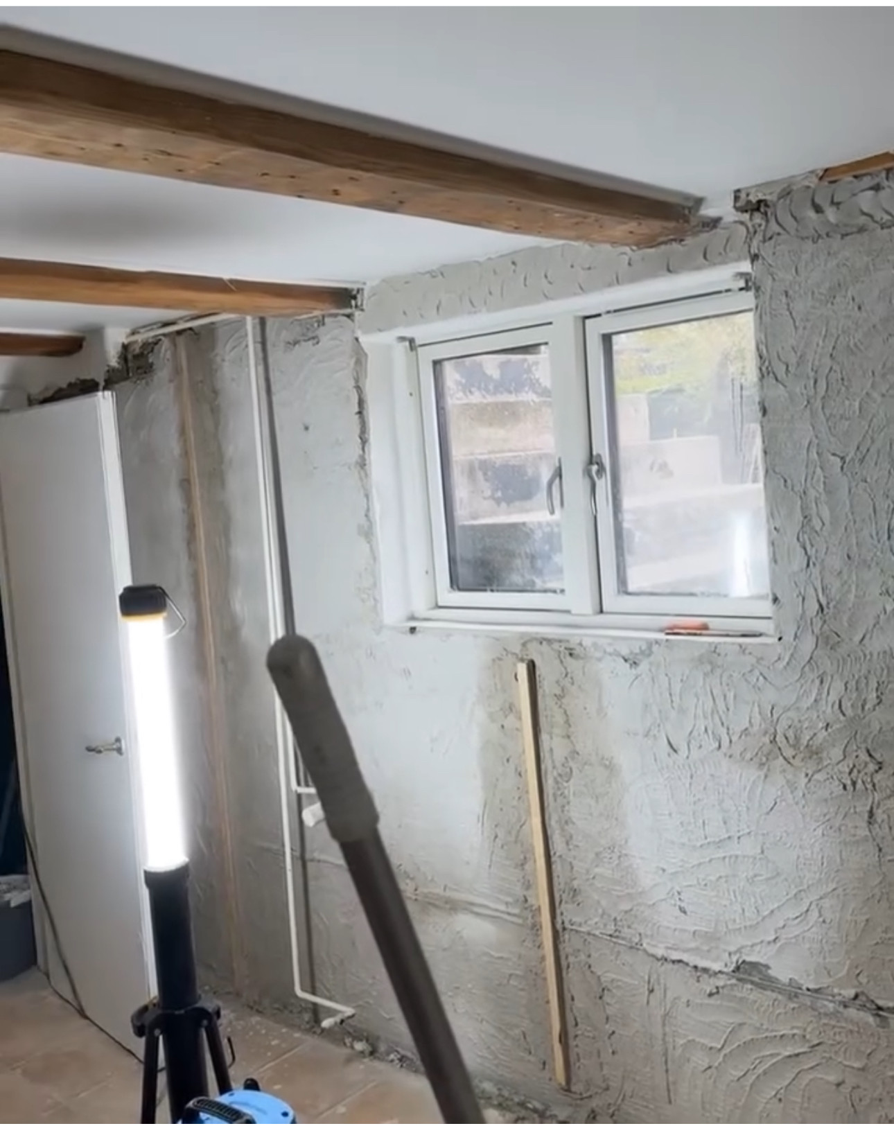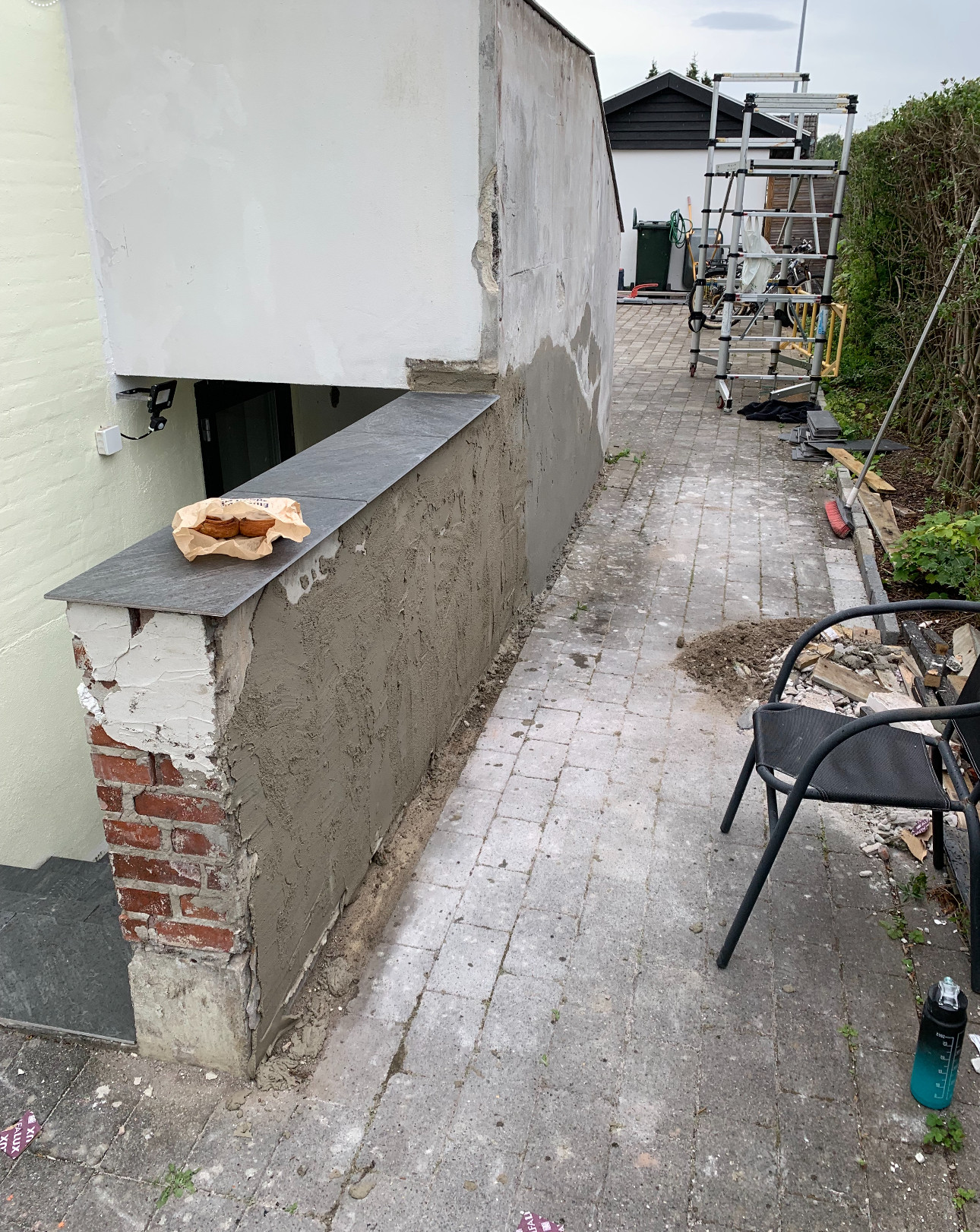 For nogle år tilbage havde jeg fået lavet sokkelisolering rundt om huset, og Murerxpert forklarede, at den gamle cementpuds derfor skulle bankes ned og erstattes med et godt lag kalkpuds, så væggene kunne ånde igen.