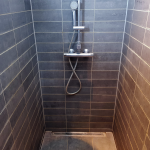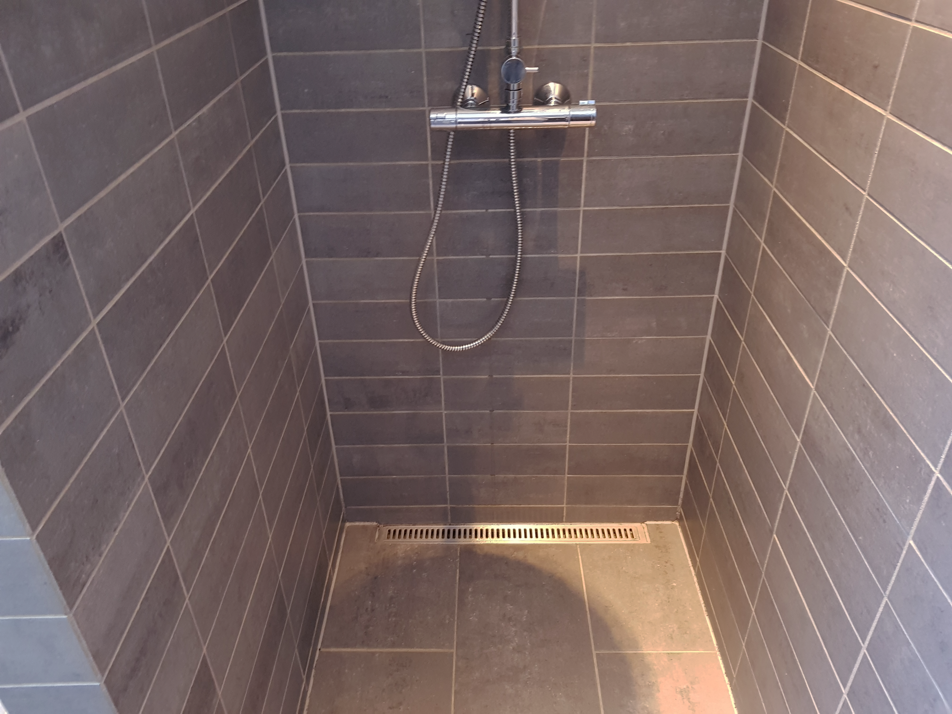 Jeg er overvejende tilfreds med resultatet. Det er blevet rigtigt fint inde i brusenichen, jeg havde måske troet at fugerne på resten af gulvet var blevet pænere. Men det går nok.