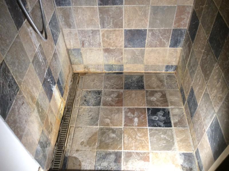 Rengøring og imprægnering af fliser og fuger i badeværelse samt algebehandling af tag.