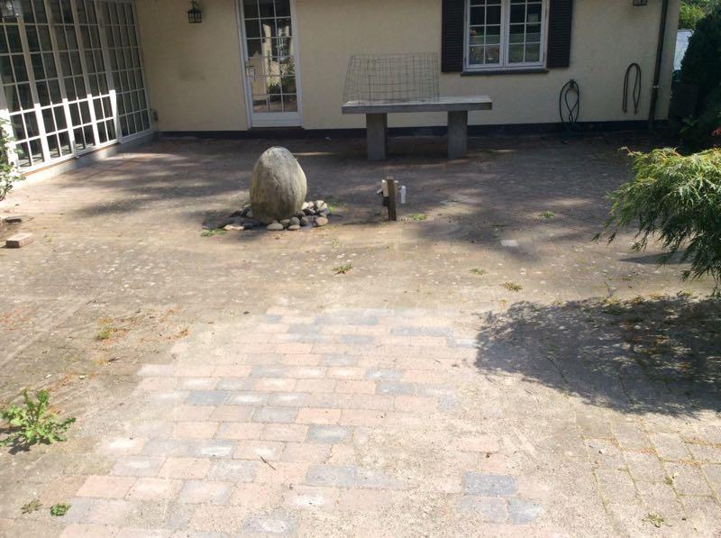 Rensning, algebehandling og imprægnering af fliser samt algebehandling af tag.