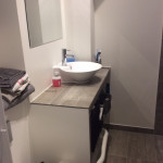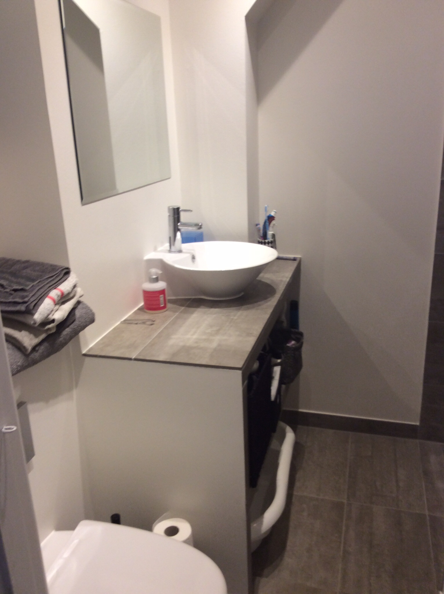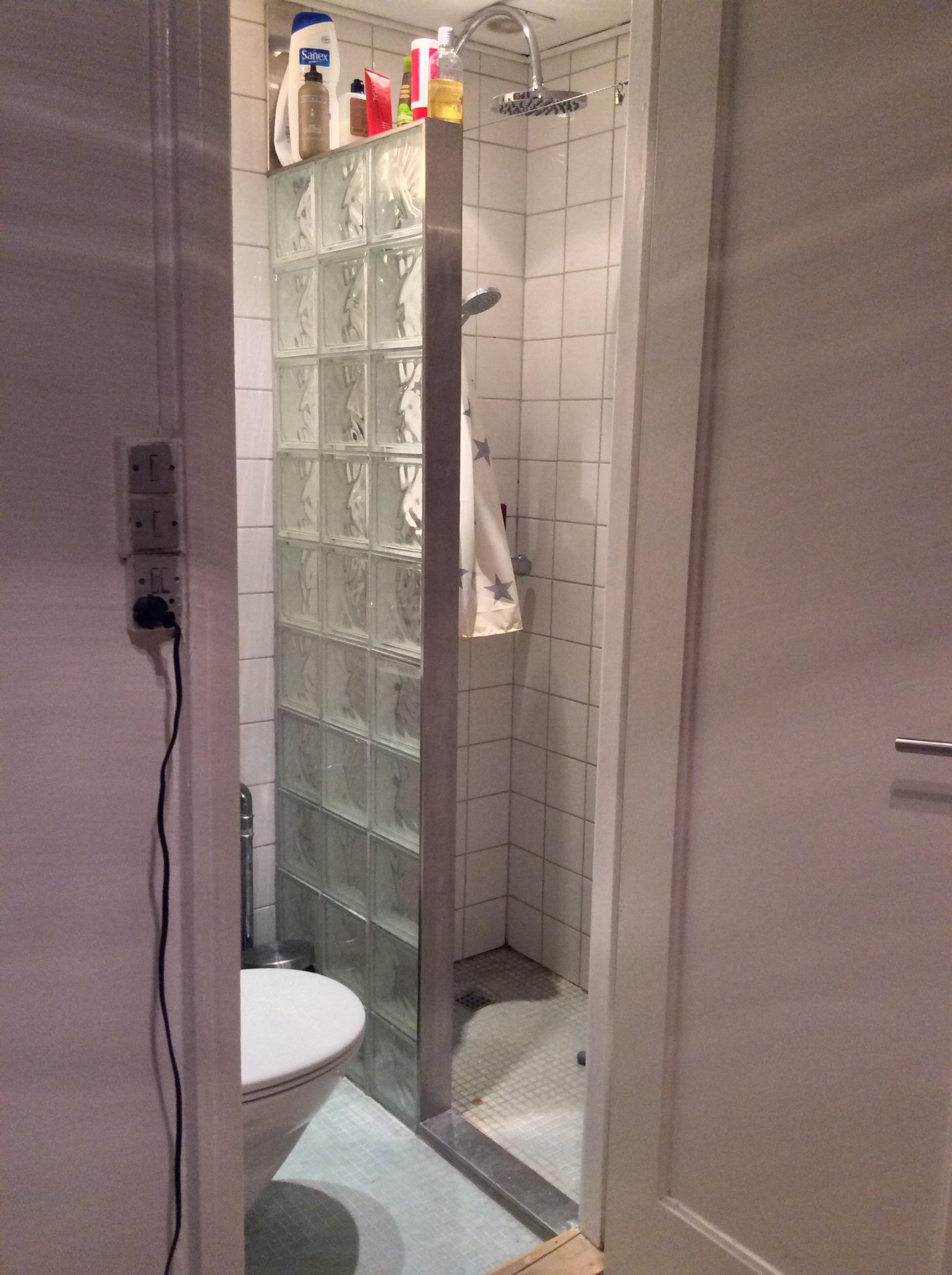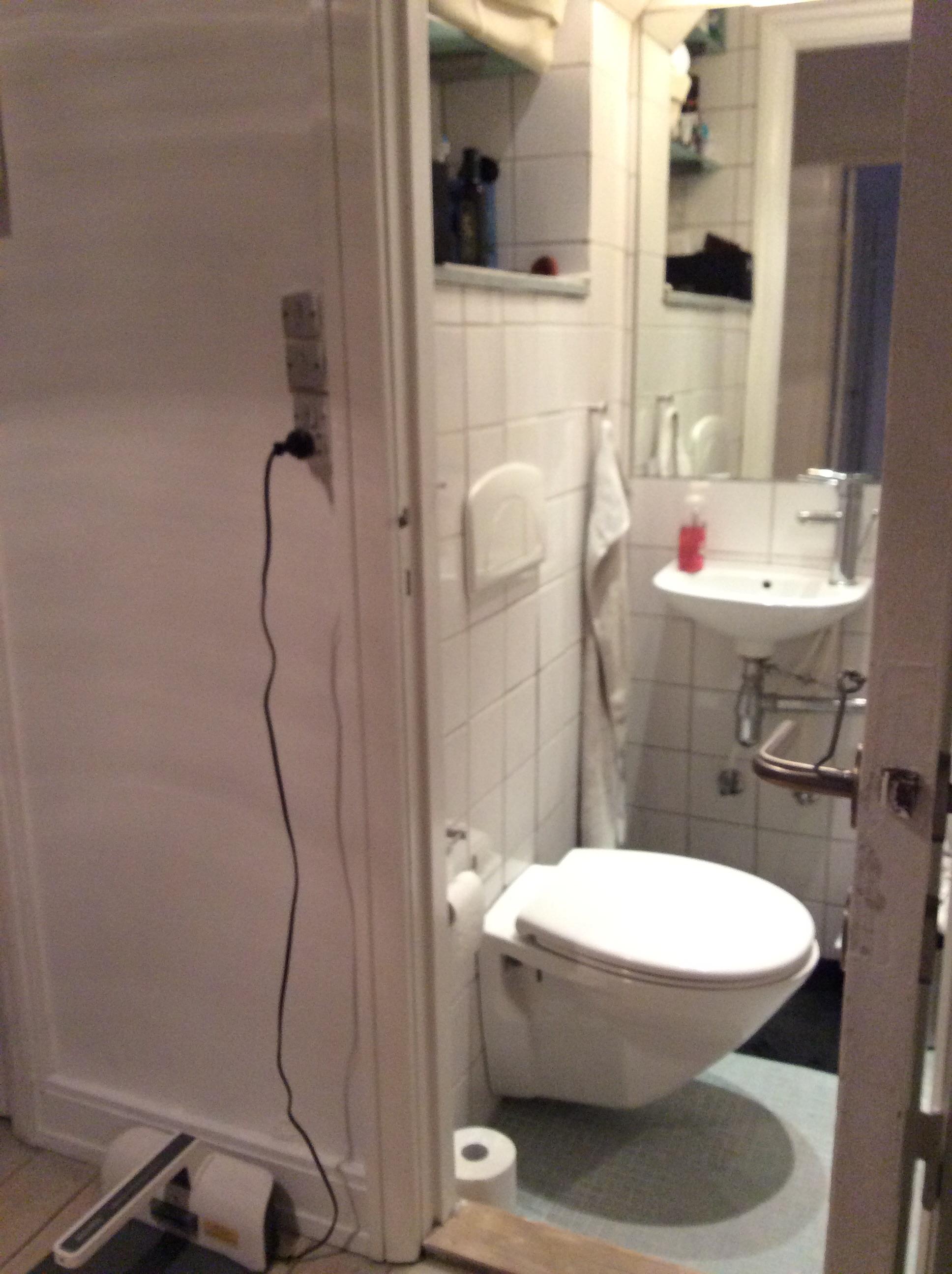 efter at være flyttet ind i en lejlighed med et lille badeværelse der