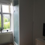 havde en fritstående kabine i plast. Jeg synes løsningen er rigtig flot og