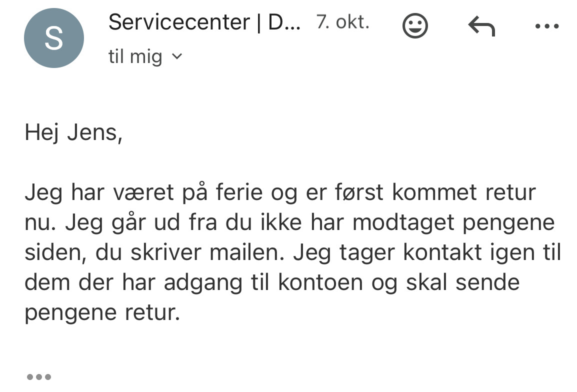 Beklager at vi ikke har svaret. Desværre har virksomheden sat på pause i en periode, da vi er blevet udsat for svindel internt i forretningen. Dette efterforskes og vi har derfor ikke har mulighed for at gøre noget. Hvis du fremsender konto og reg nr. så sørger jeg for at sende det videre til en som kan overføre dine penge retur og kreditere regningen.
