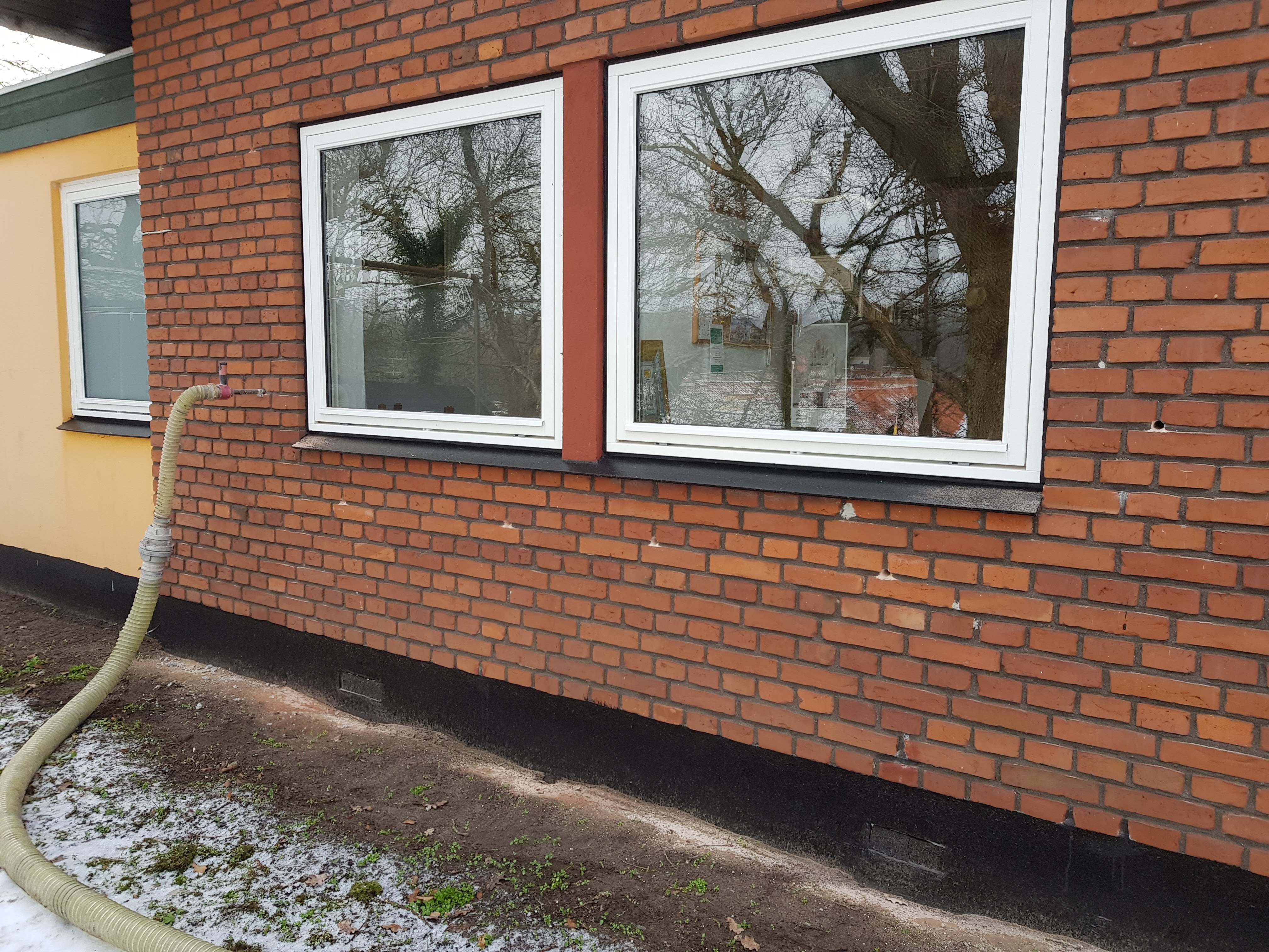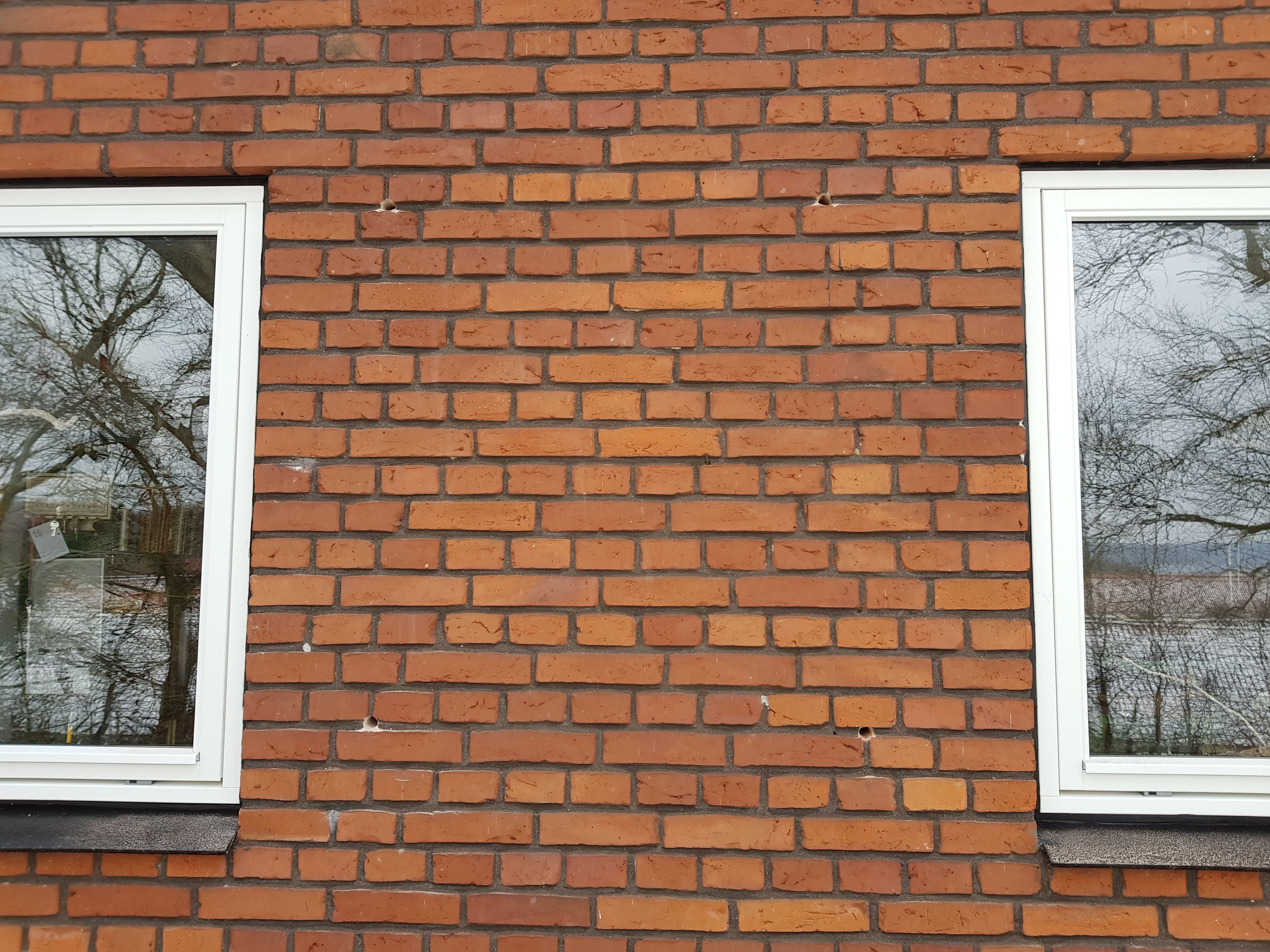 Ugen ankom DN og isolerede muren.Det var koncentreret arbejde. Alle huller lukket med mørtel i fugens farve.