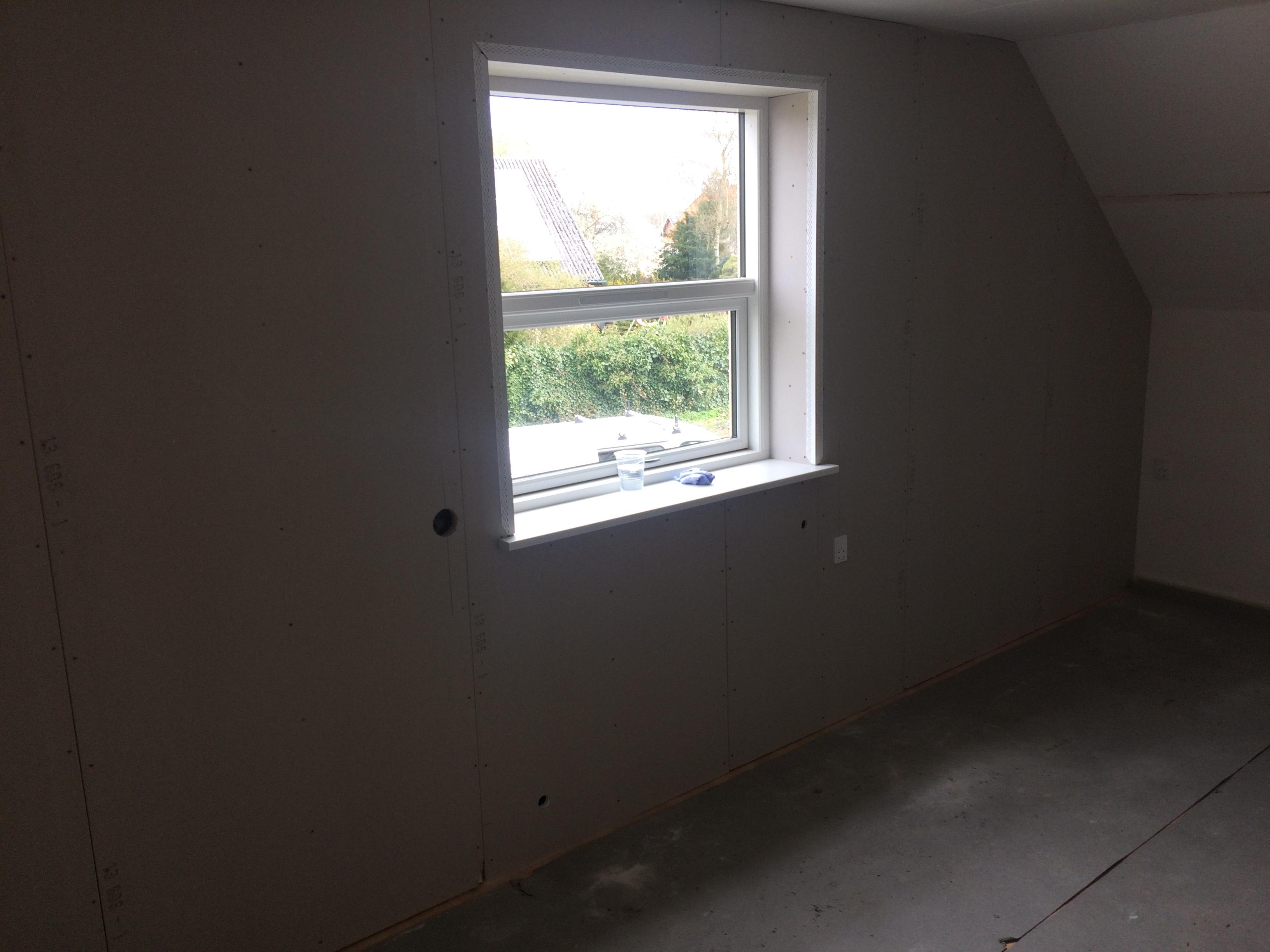 Efterisolering af gavl og loftrum. Montering af nye vinduer.