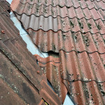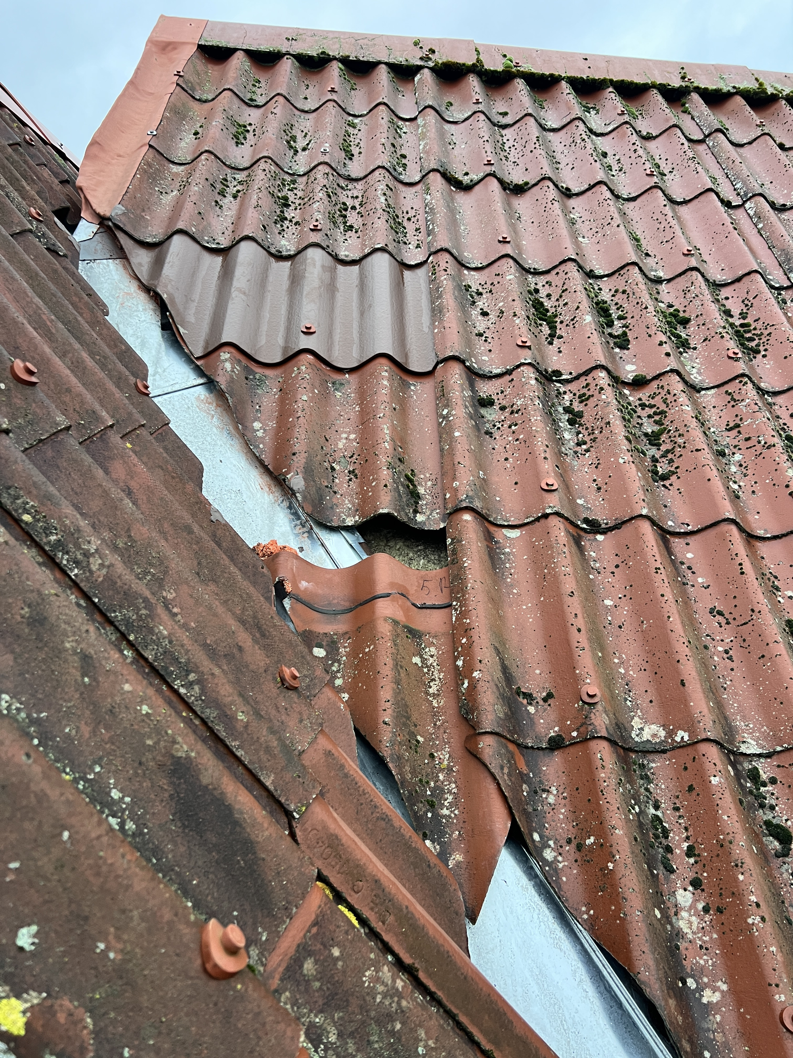 En eternit plade var ikke skruet fast og gledet ned i storm hvilket gav en ny vandskade.